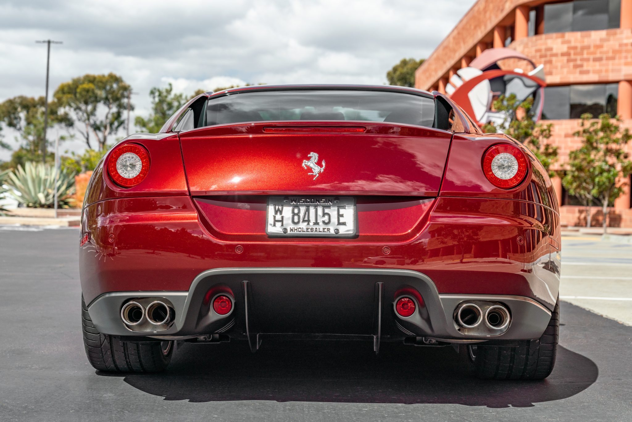 Forged 20″ Monolithic wheels are mounted with 245/35 front and 305/35 rear Pirelli P Zero tires showing 2018 date codes. The 599 rides on an aluminum chassis with a semi-active magnetorheological suspension system, while stopping power is provided by cross-drilled carbon-ceramic brake rotors clamped by Ferrari-branded calipers at all four corners. A brake fluid flush was performed in January 2022.