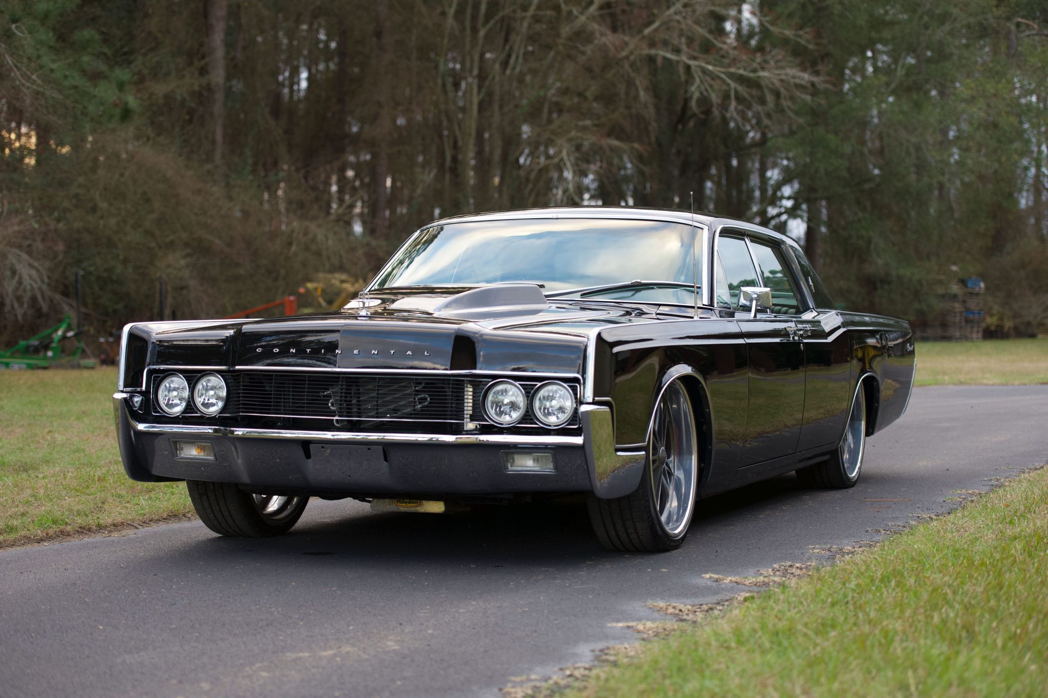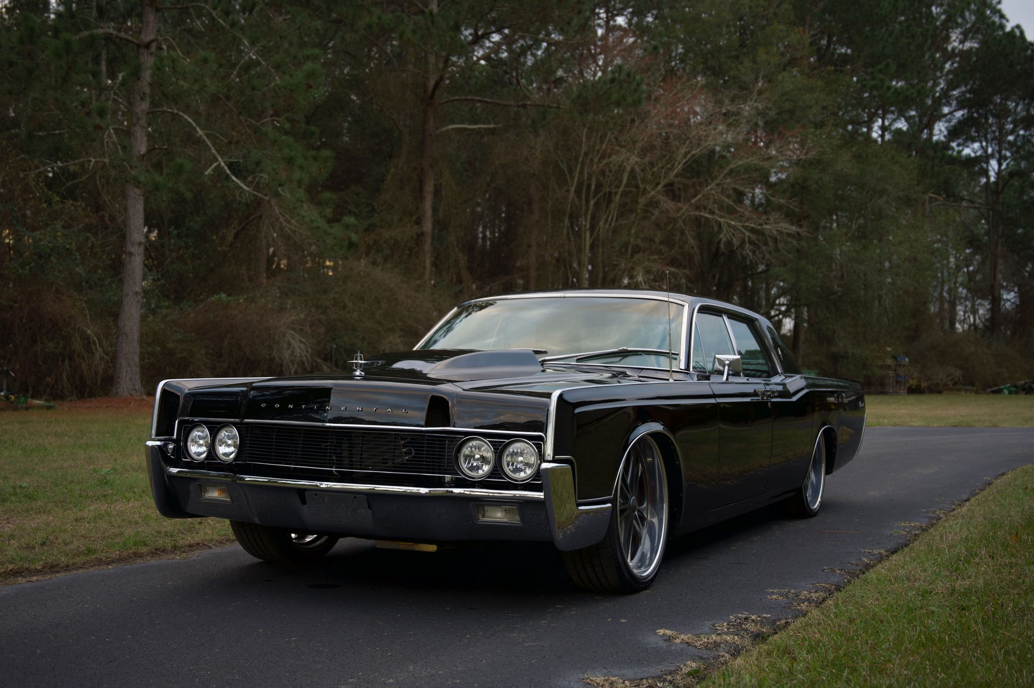 Foose 22″ wheels are finished in gloss gunmetal and wear Goodyear tires. Equipment includes power-assisted front disc brakes, Ridetech self-leveling air suspension, and four-link rear suspension components.