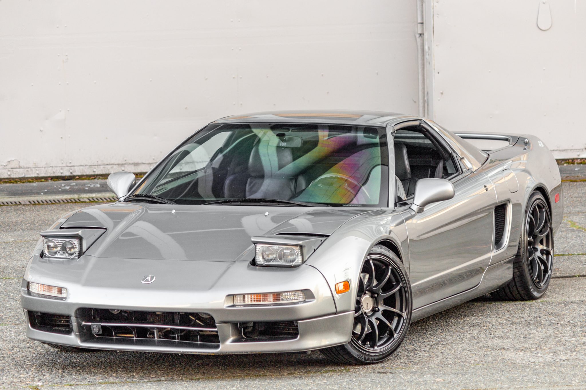 The Advan Racing RZII wheels measure 17″ up front and 18″ out back and are wrapped in Kuhmo Ecsta PS31 tires measuring 215/40 and 265/35, respectively. The car features a four-wheel double-wishbone suspension with front and rear stabilizer bars, and braking is handled by NSX-branded calipers over vented rotors at each corner. The suspension has been modified with BC Racing adjustable coilover dampers, Swift springs, and a Stanceparts Air Cup Lift air-suspension system that is hooked to a VIAIR air compressor and controlled via a switch mounted below the dash. The seller states the power steering control module was replaced in 2022.