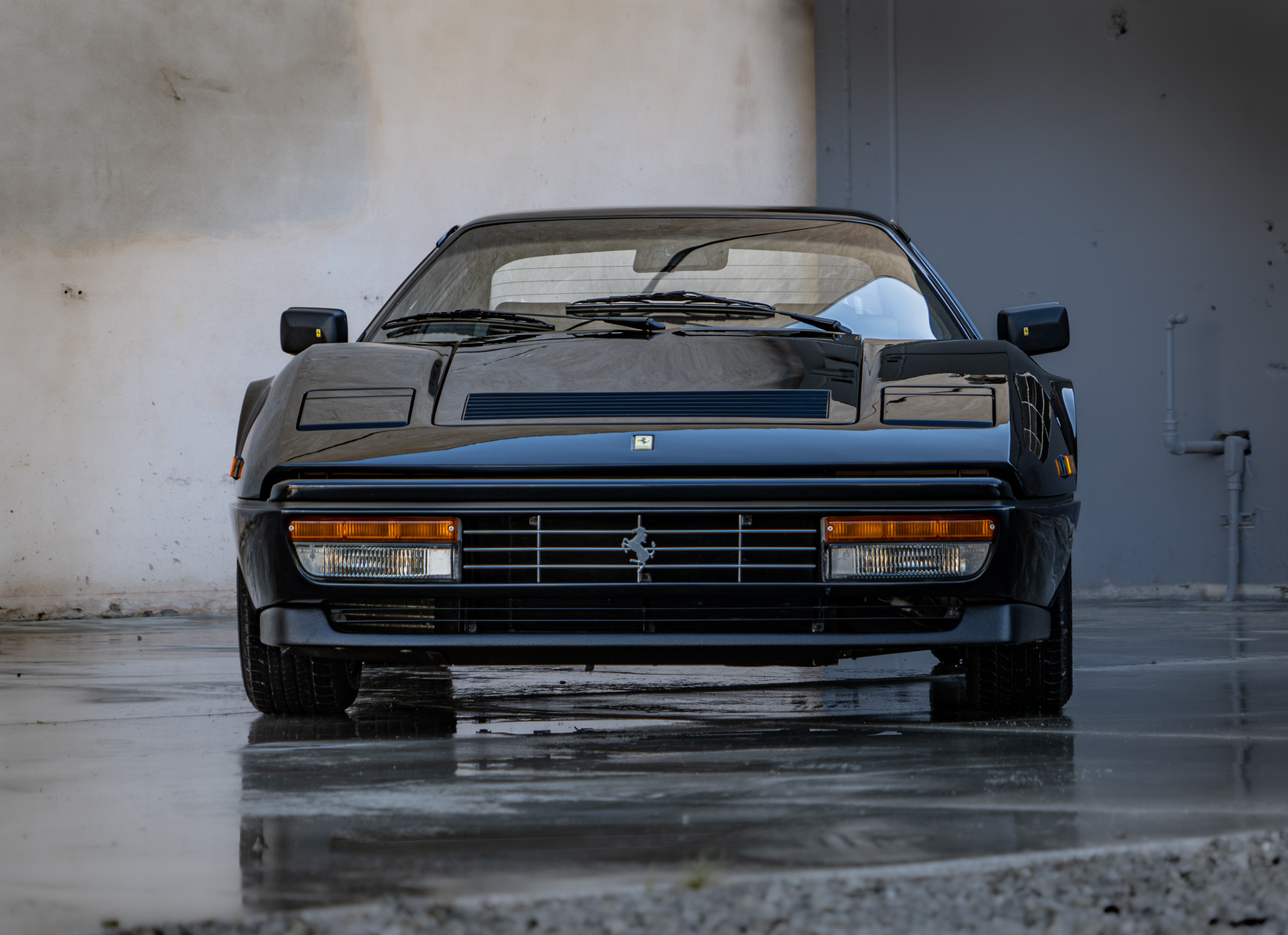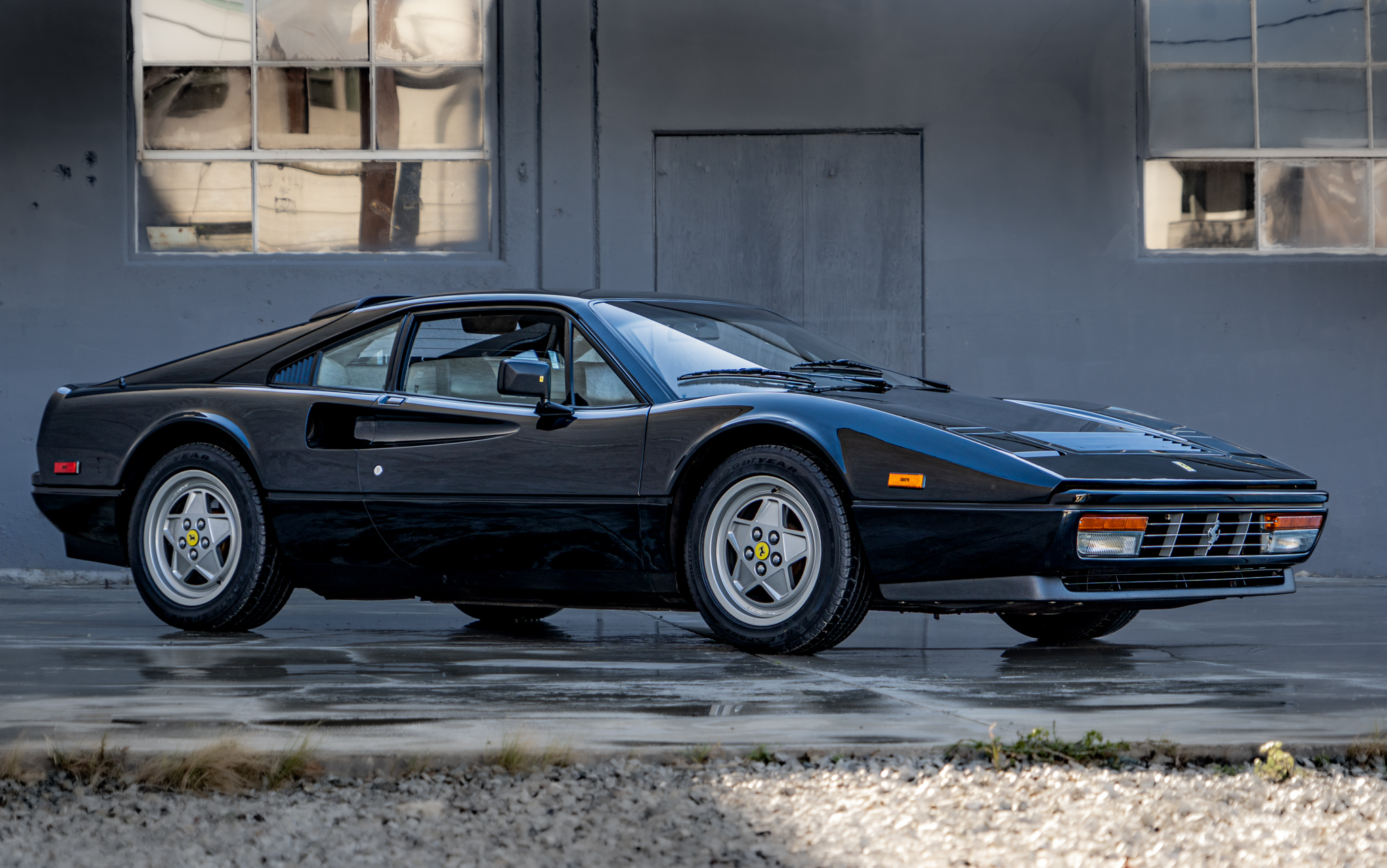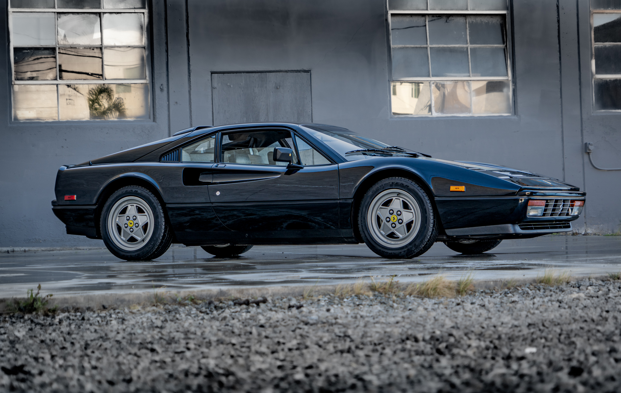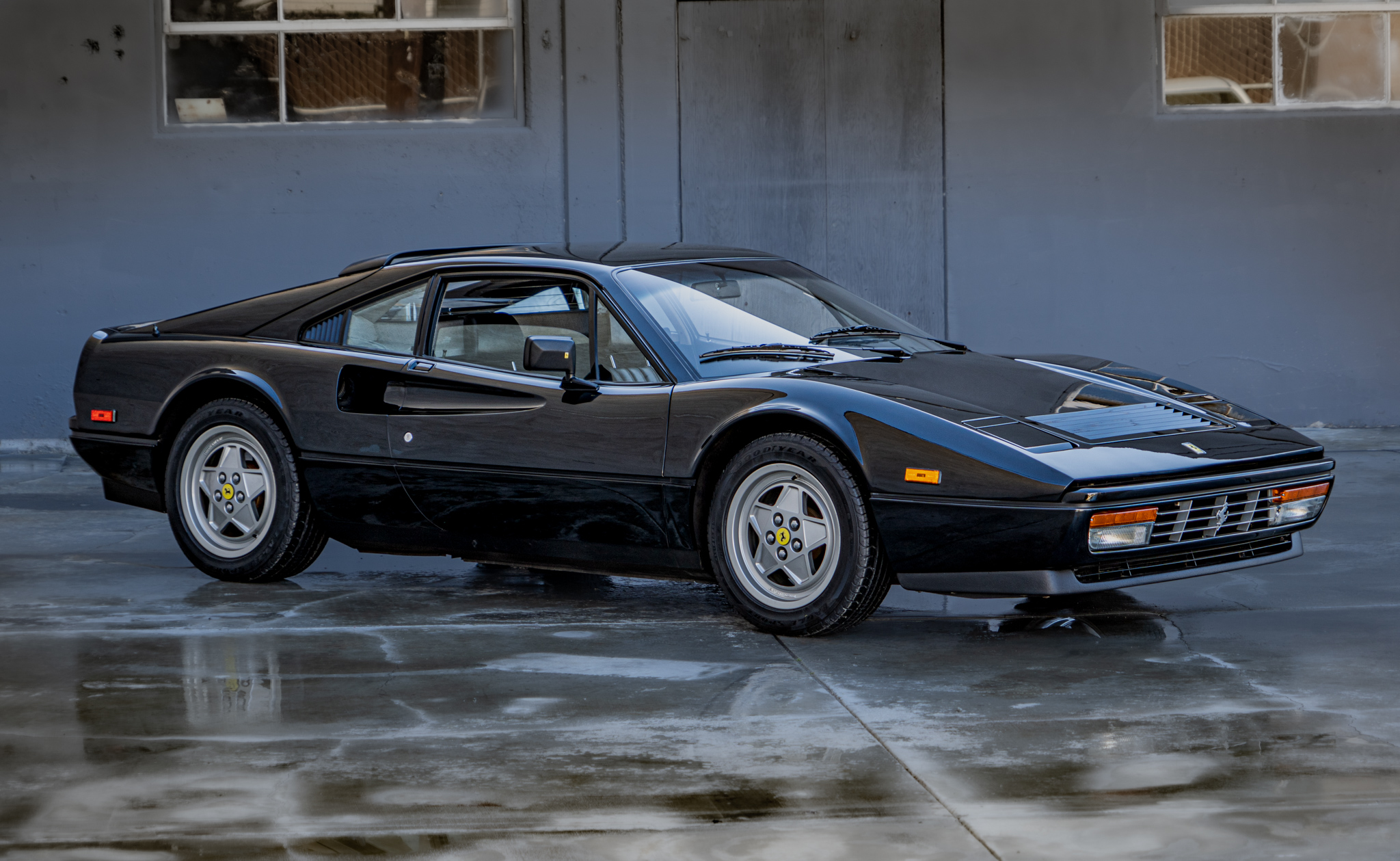 Factory 16″ alloy wheels wear yellow Prancing Horse center caps and staggered-width Goodyear Eagle tires that show 2021 date codes. Koni shocks are fitted, and braking is handled by ventilated four-wheel discs with anti-lock function, which were introduced to the 328 in the middle of 1988 model-year production. A brake fluid flush was carried out in February 2022.
