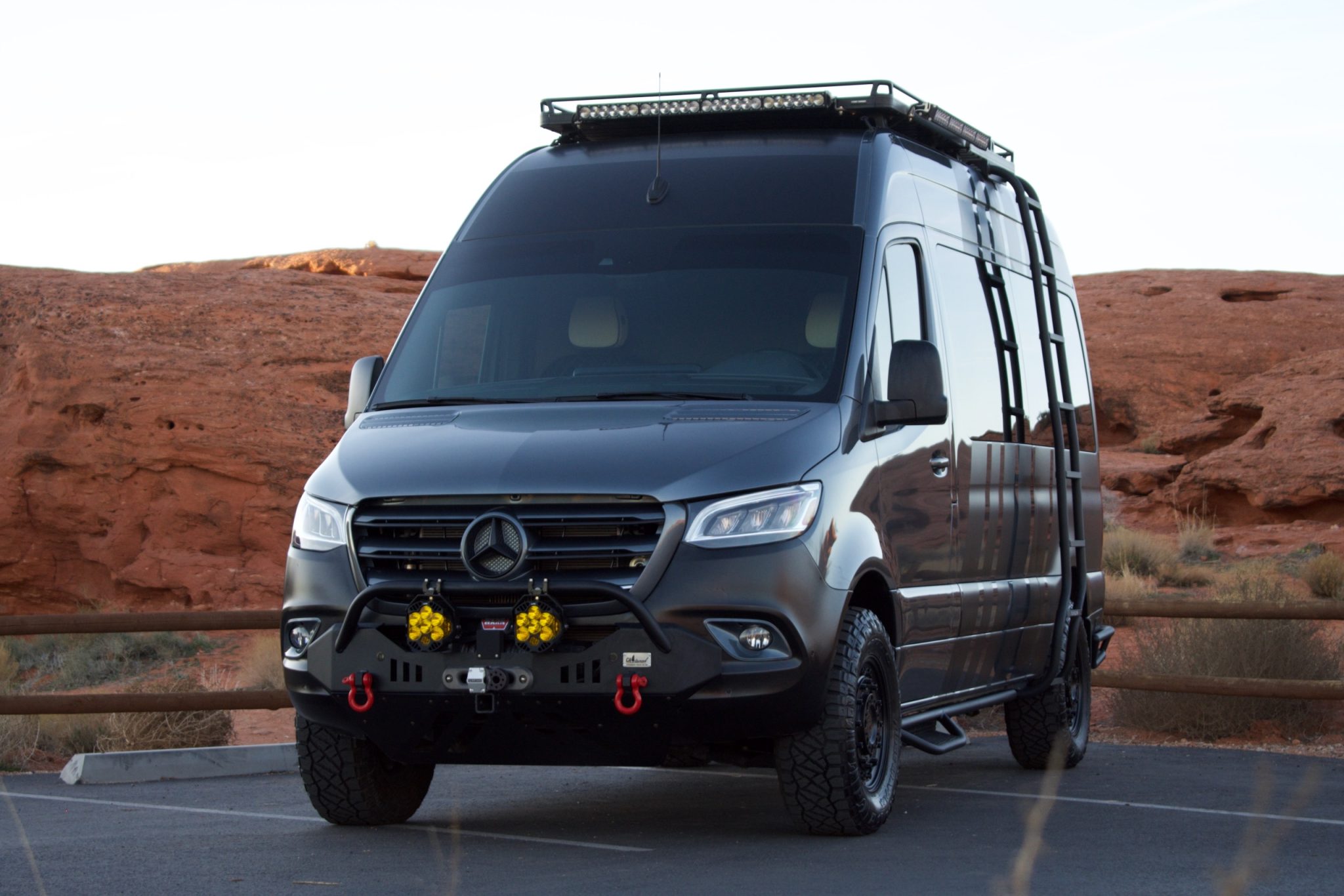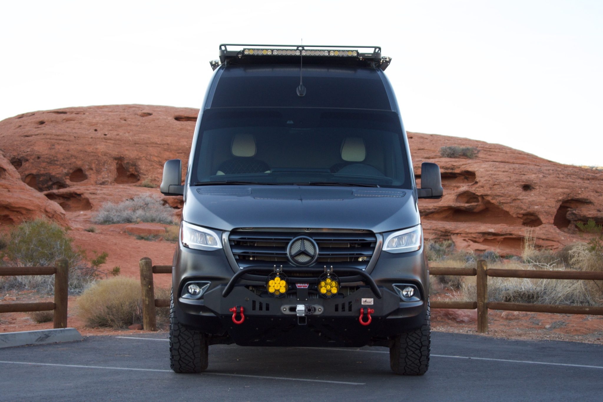 Black Rhino 17″ alloy wheels are finished in black and mounted with 265/70 Nitto Ridge Grappler tires. Braking power is provided by ABS-controlled disc brakes at all four corners, while the rear suspension has been fitted with upgraded shocks and leaf springs.