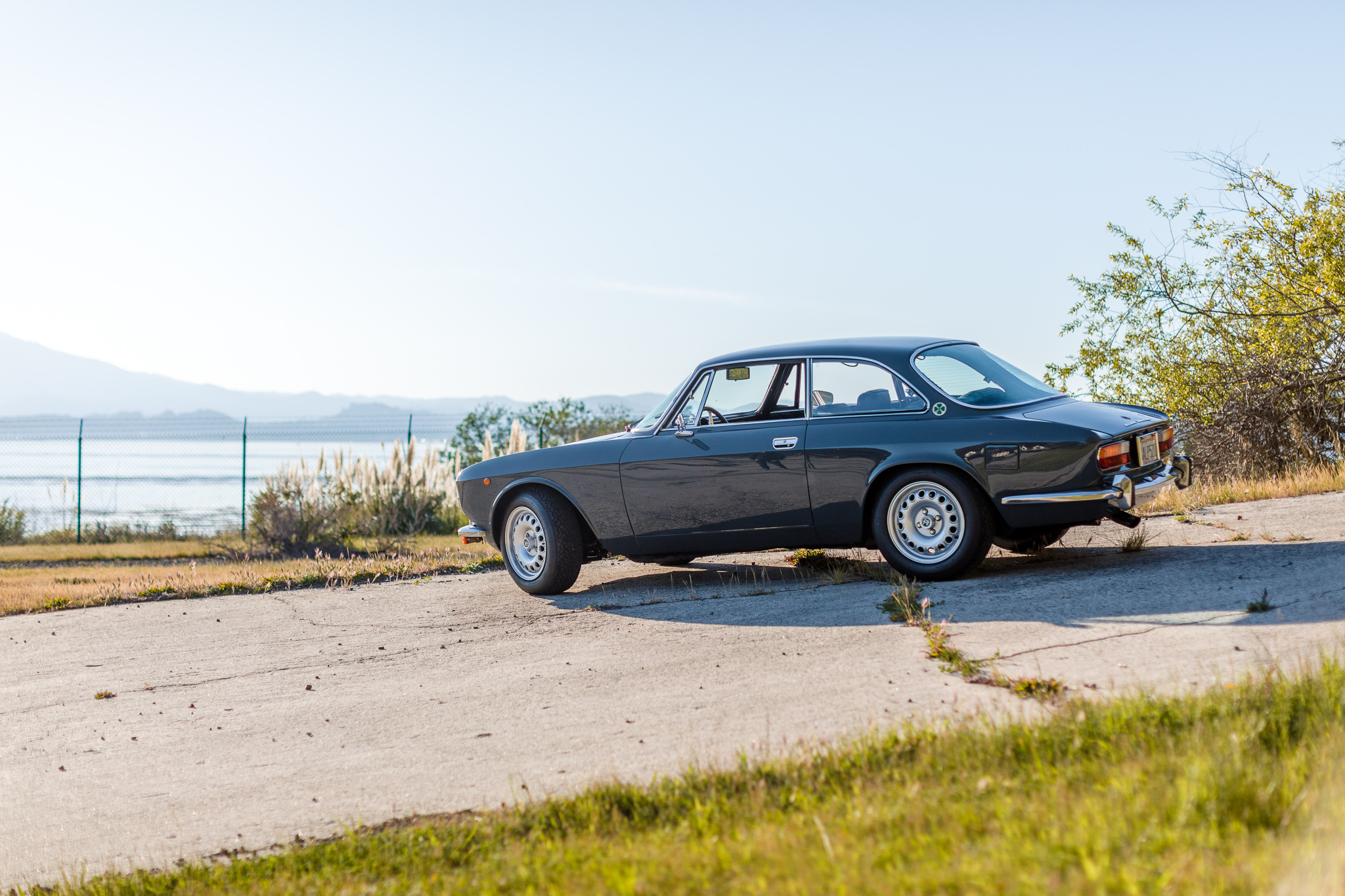 Alfaholics 15” GTA-style wheels are mounted with 185/70 Pirelli CN36 tires and a full-size spare is found in the trunk. The car rides approximately 1” lower than stock on an Alfaholics Fast Road suspension kit with Koni shocks, and braking is provided by an Alfaholics Sport kit with drilled and slotted rotors at all four corners. The seller notes that the steering box and idler arm assembly have been rebuilt, and the brake master cylinder, ball joints, trailing arms and bushings, rear axle limiter straps, front wheel bearings, and steering linkages have been replaced. Additional modifications are said to include the following: