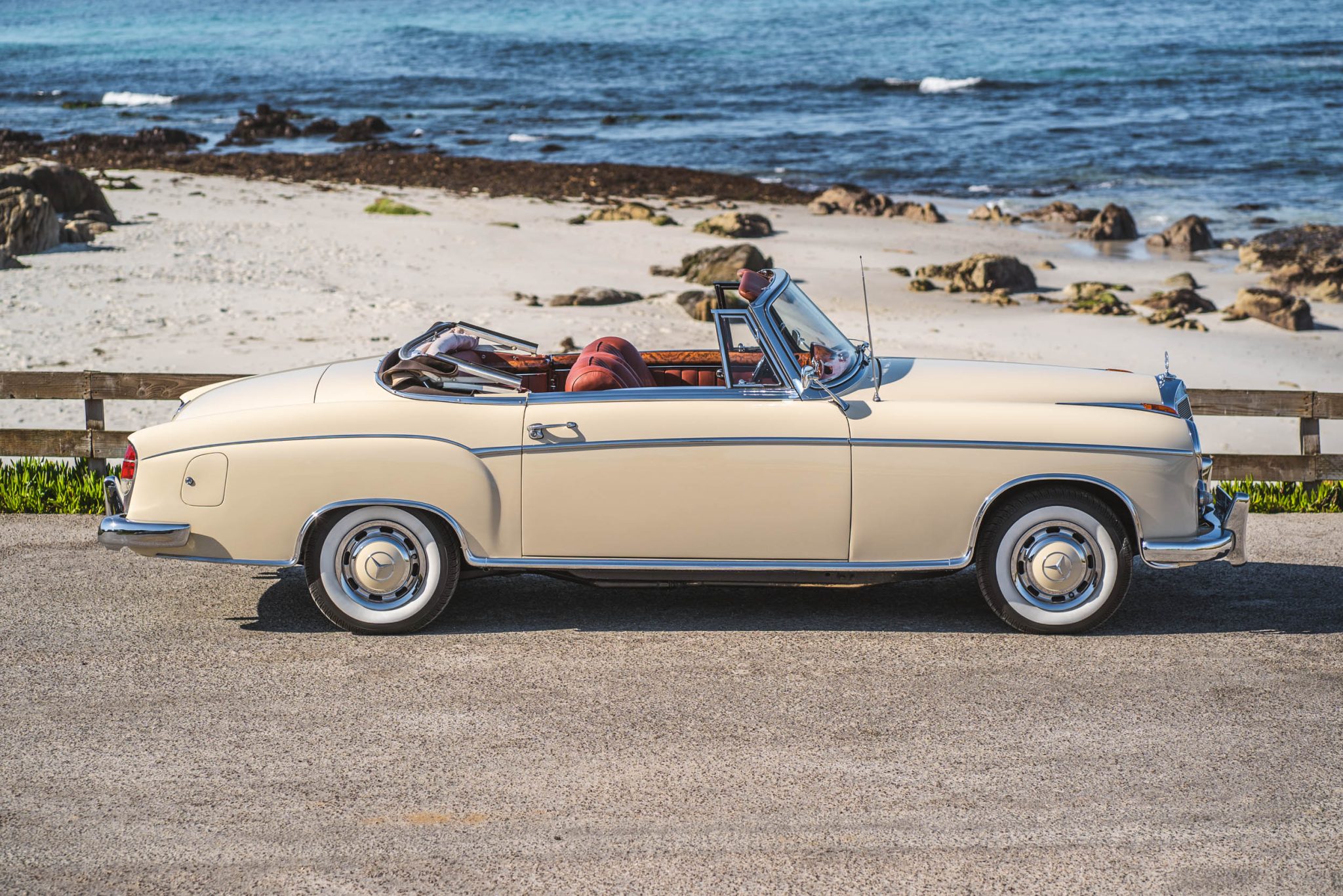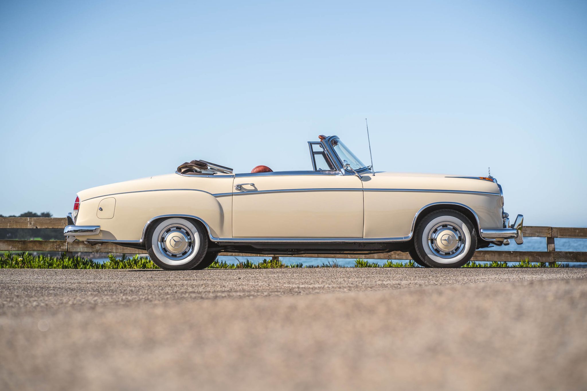 Steel 13″ wheels wear chrome-finished covers with body-matching centers, and they were mounted with 185/80 Maxxis MA-1 whitewall tires in 2020. Each corner is equipped with drum brakes and coil springs. The suspension and the brakes were refinished since 2020, as was the underside. In 2020 the brake fluid was flushed and the chassis was greased, and the springs were replaced in 2021.