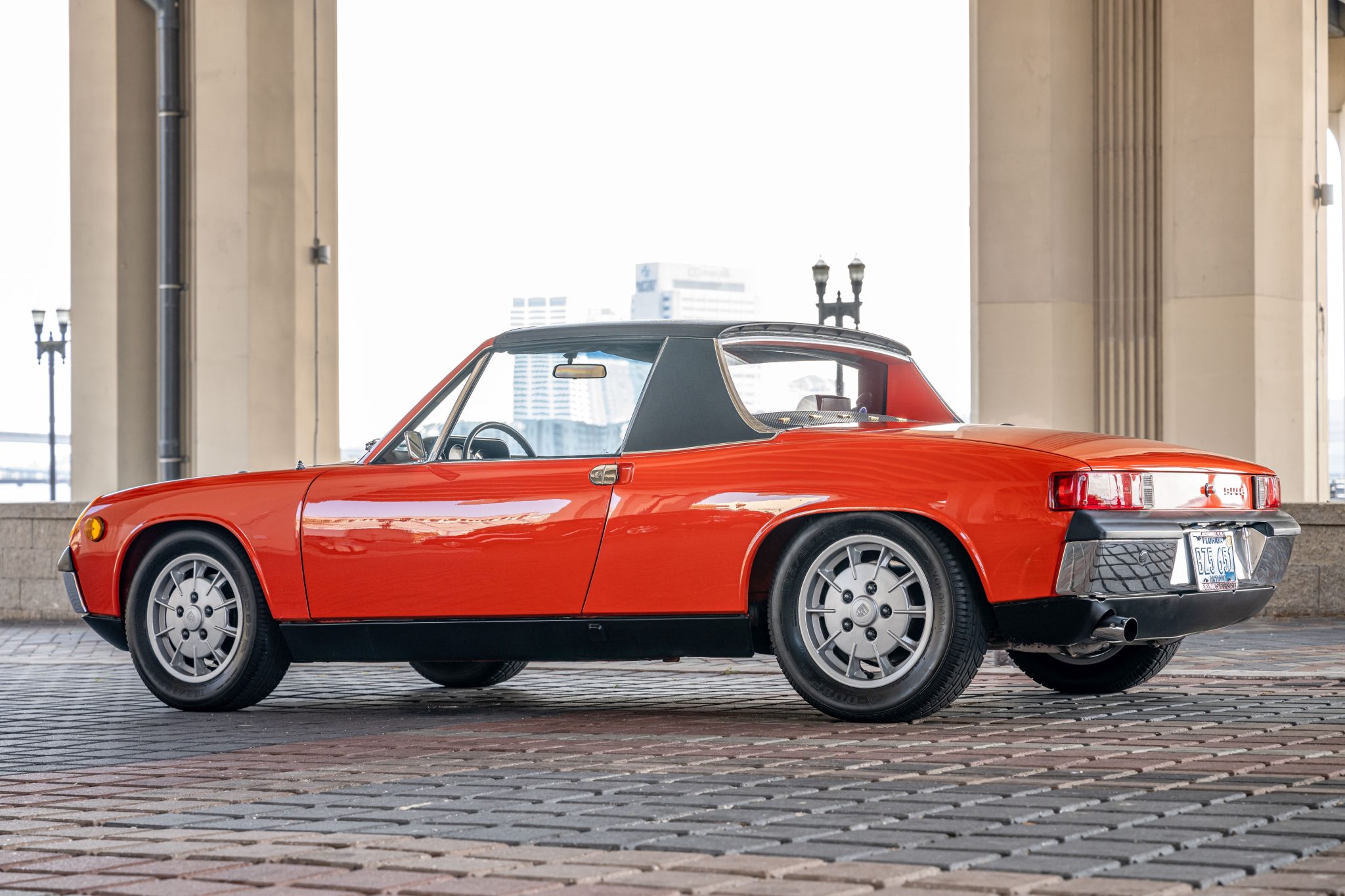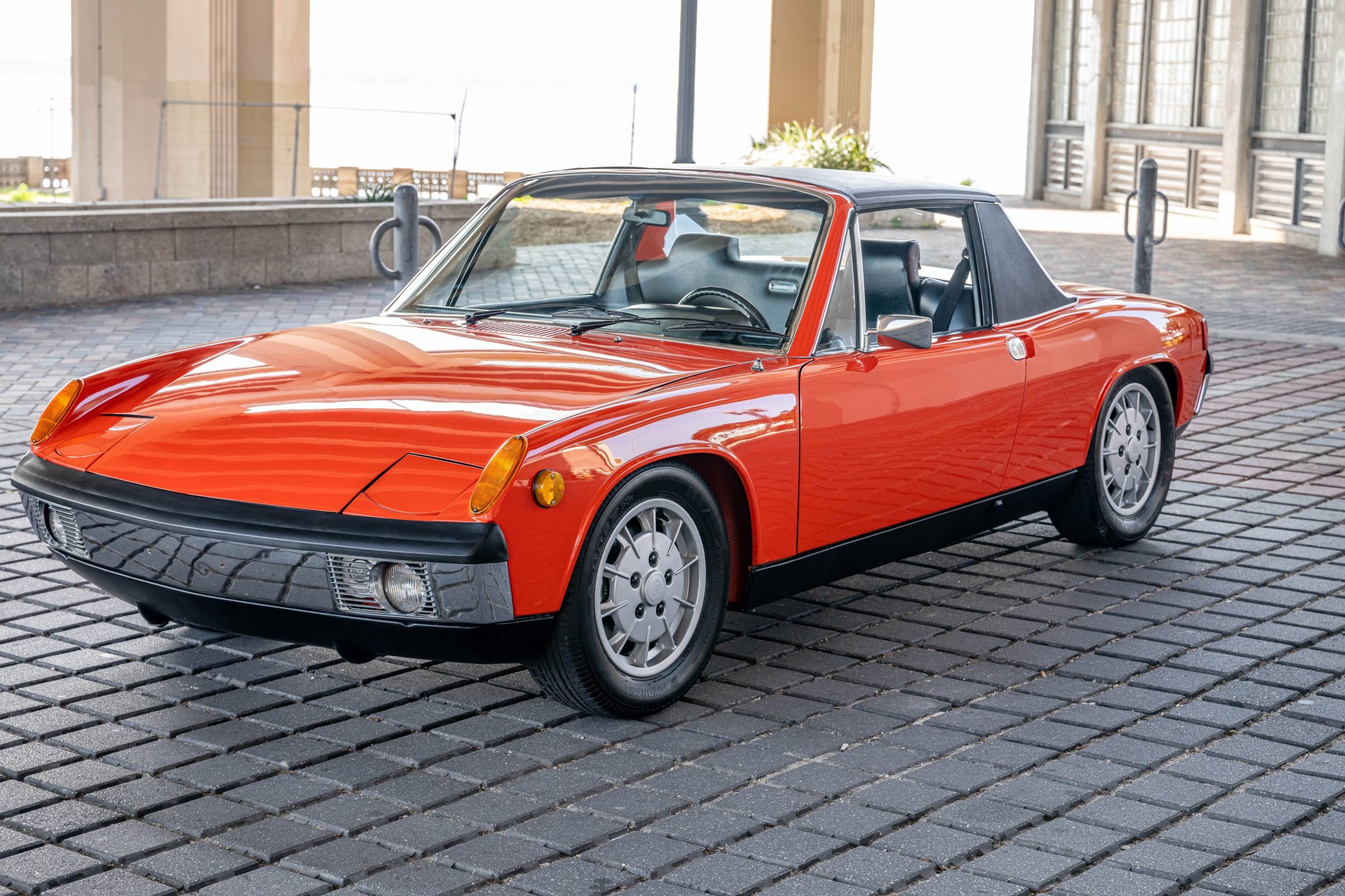 Silver-finished 15″ Mahle “gas burner” alloy wheels are mounted with 195/65 Yokohama A-008P tires, and a matching spare wheel and tire are secured in the front storage compartment. Koni shocks, Turbo-specification tie rods, a front sway bar, and 911S-sourced front calipers are said to have been installed under previous ownership. Service in 2021 included rebuilding the rear brake calipers as well as replacing the brake flex hoses and front calipers.