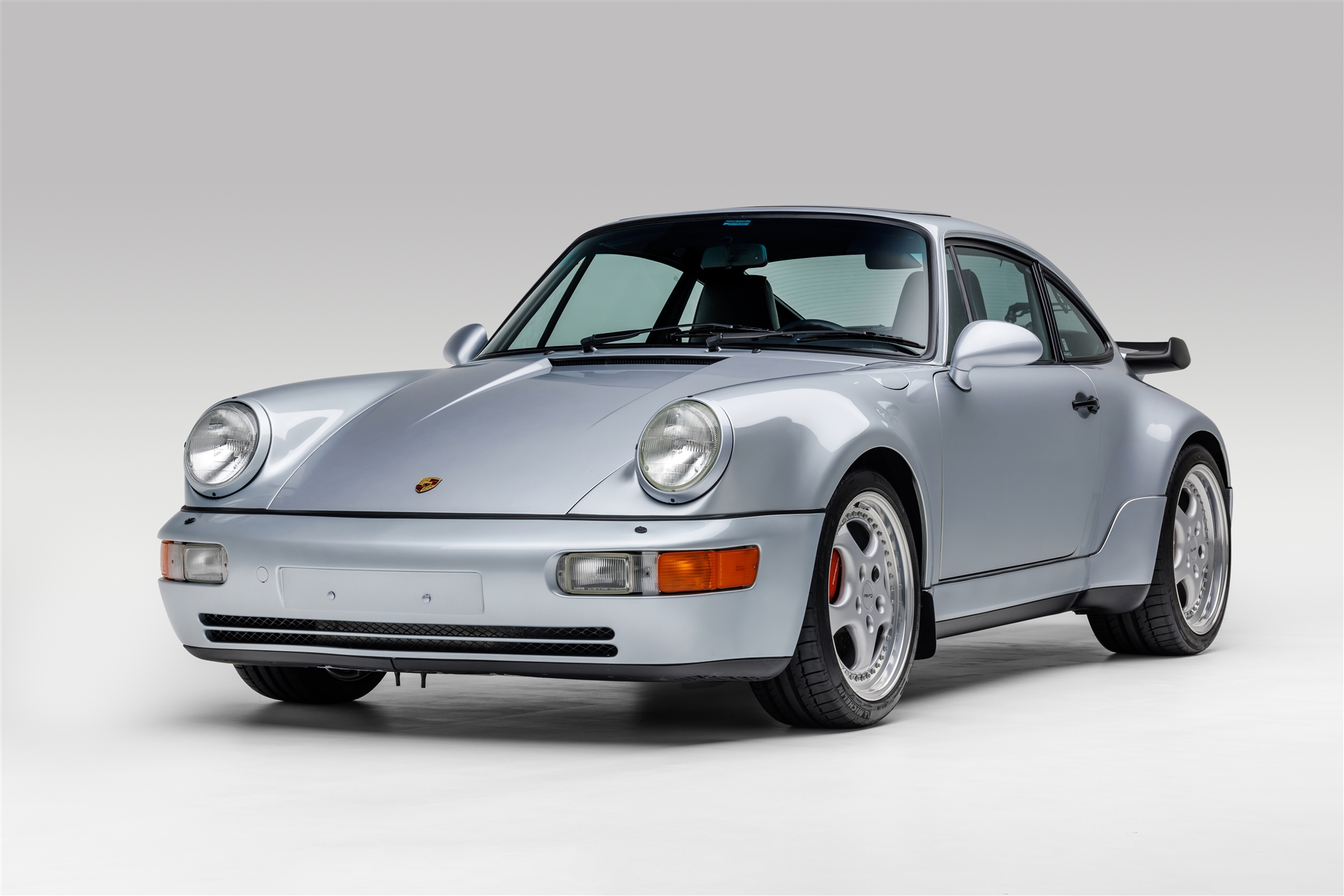 The multi-piece 18″ Speedline wheels are wrapped in 225/40 front and 265/35 rear Pilot Sport N3 tires mounted in May 2021. The Turbo features uprated brakes compared to the standard 964, including larger calipers and cross-drilled rotors at each corner. The dampers and mounts as well as the brake pads, rotors, and sensors were replaced in May 2021.