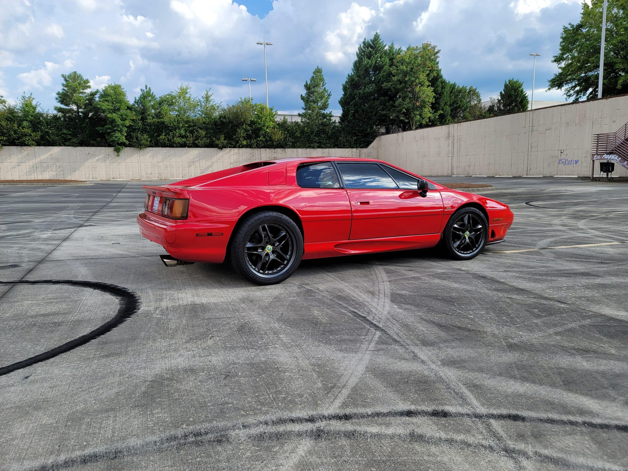 Black-finished Ronal alloy wheels feature Lotus-branded center caps and are mounted with mixed Michelin tires. The seller notes that Spax shocks are fitted to the front and AVO shocks are fitted to the rear.