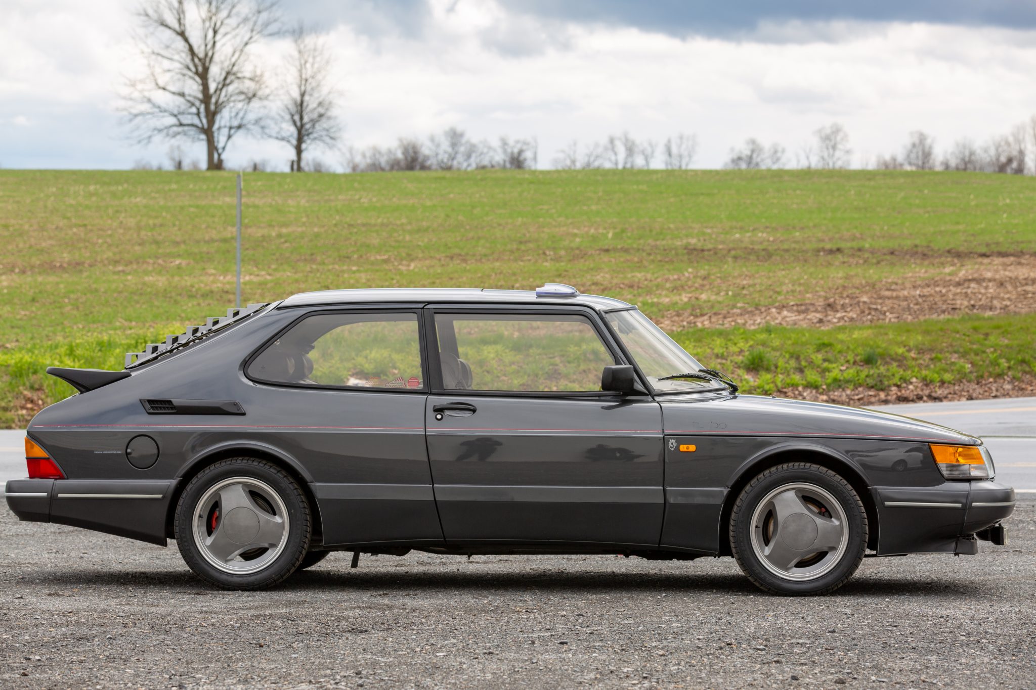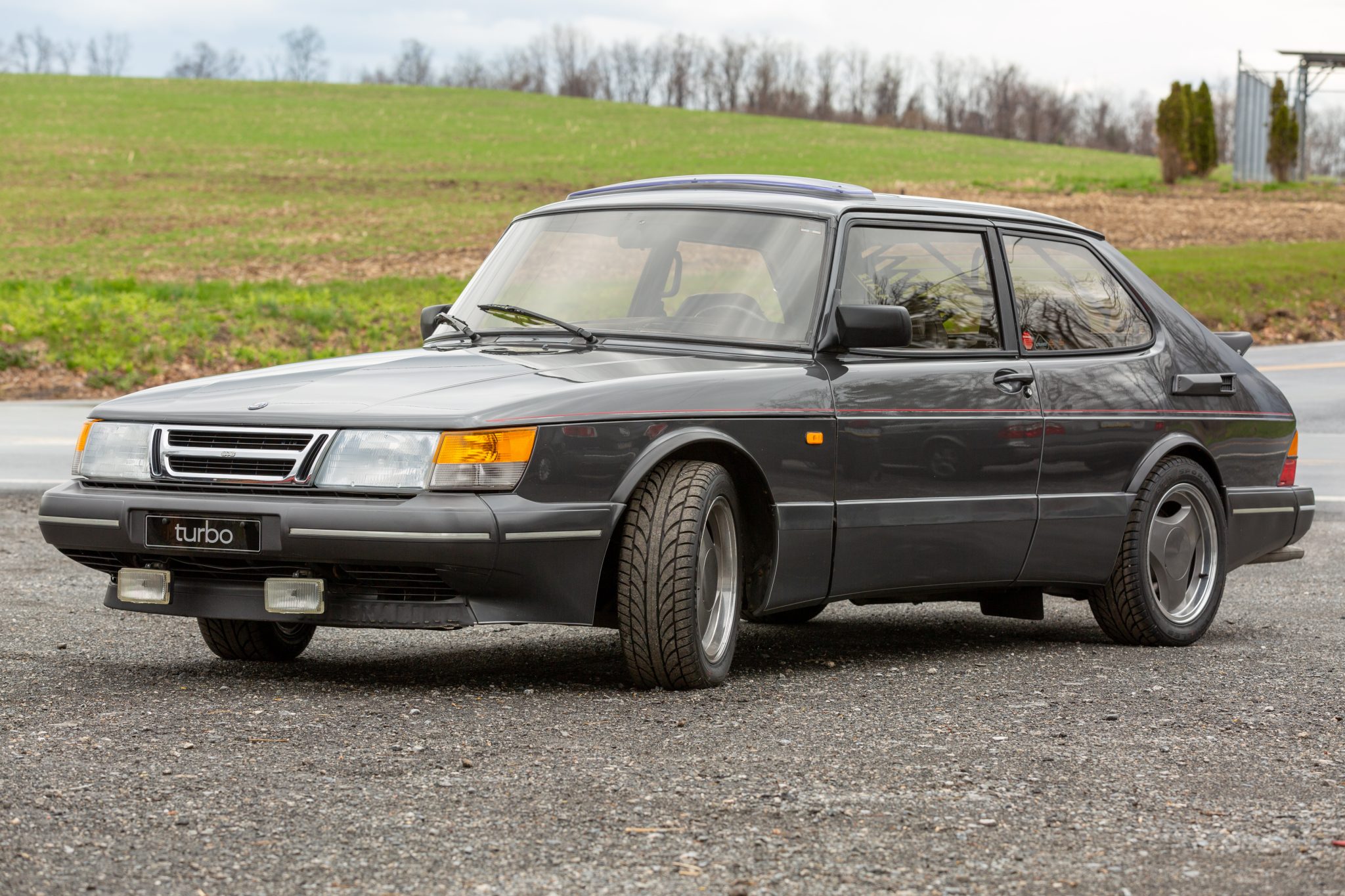 Tri-spoke 16″ alloy wheels sourced from a Saab 9000 Aero are mounted with 205/50 Achilles ATR Sport tires. SPG models were equipped with a sport suspension that utilized sway bars along with stiffer springs and shocks. Braking is handled by four-wheel discs fitted with red-painted calipers. A set of factory tri-spoke 15″ alloy wheels mounted with snow tires is included in the sale.