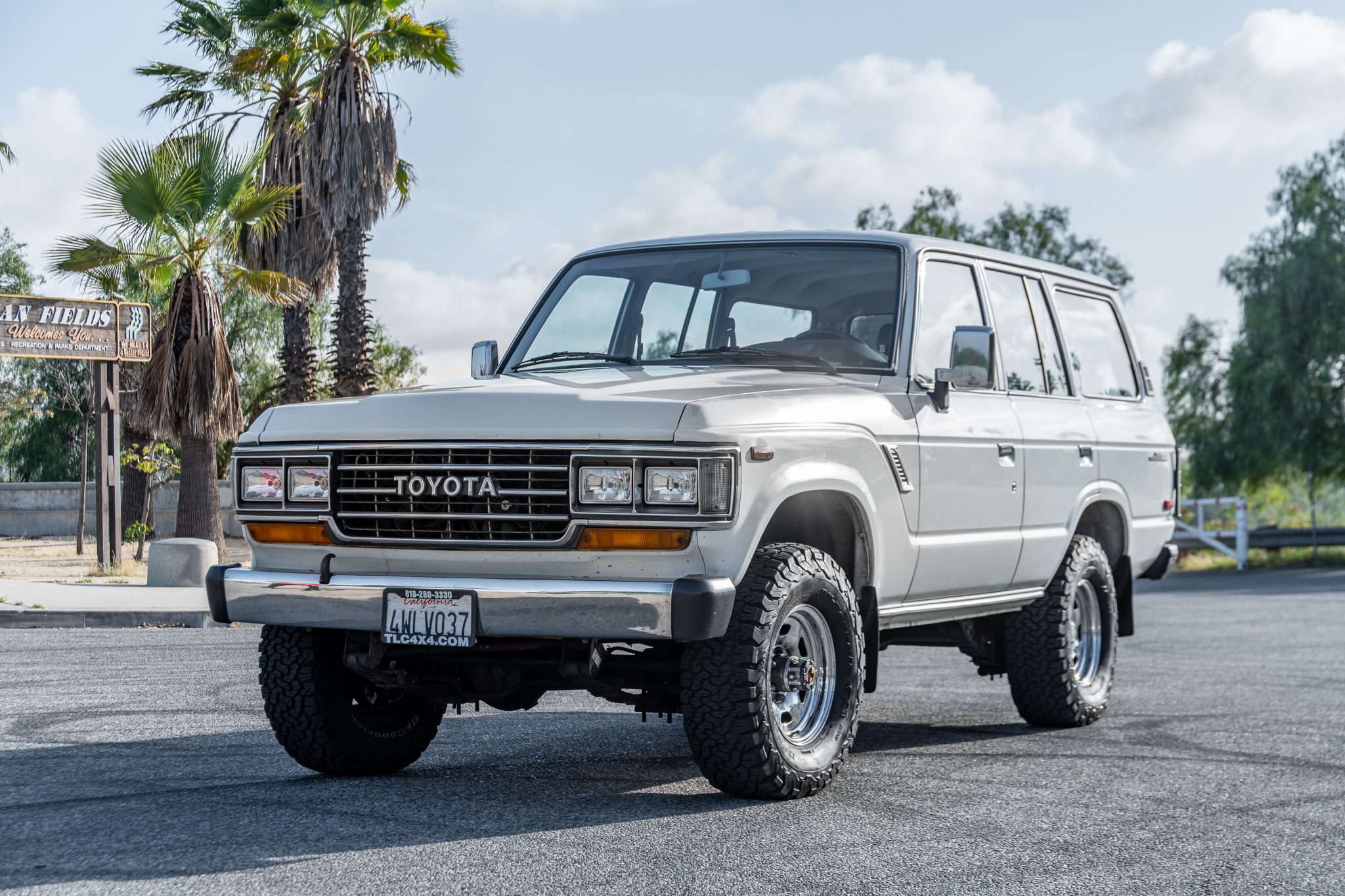 Polished 15″ steel wheels are mounted with 31×10.5″ BFGoodrich All-Terrain T/A KO2 tires. An Old Man Emu lift kit and steering stabilizer are installed, and the front axle is equipped with Aisin manually locking hubs. Braking is handled by front discs and rear drums. Service in September 2021 is said to include the replacement of the front brake rotors and pads, front hub seals, and the rear sway bar bushings in addition to adjusting the rack and pinion power steering gears and performing an alignment.