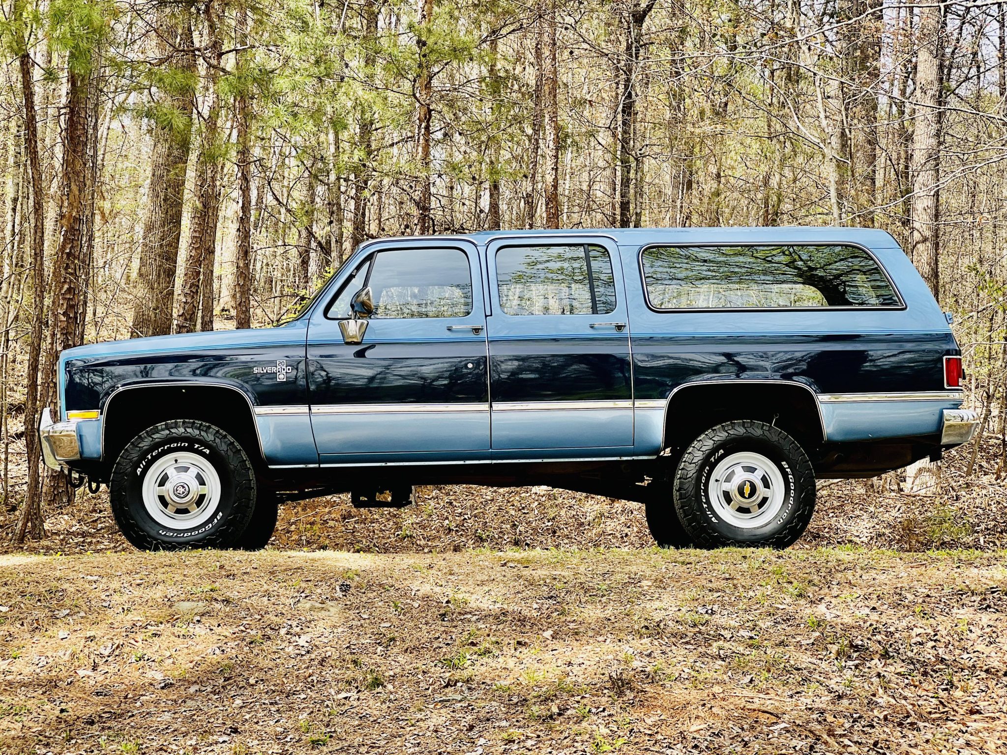 White 16″ steel wheels wear polished covers and are mounted with 285/75 BFGoodrich All-Terrain T/A KO2 white letter tires. The truck is equipped with automatic locking front hubs, quad front shock absorbers, and power steering. Braking is handled by power-assisted front discs and rear drums. Work performed in 2022 is said to have included the installation of a 2″ Rough Country suspension lift with Bilstein front shocks in addition to replacing the tires and brake pads.