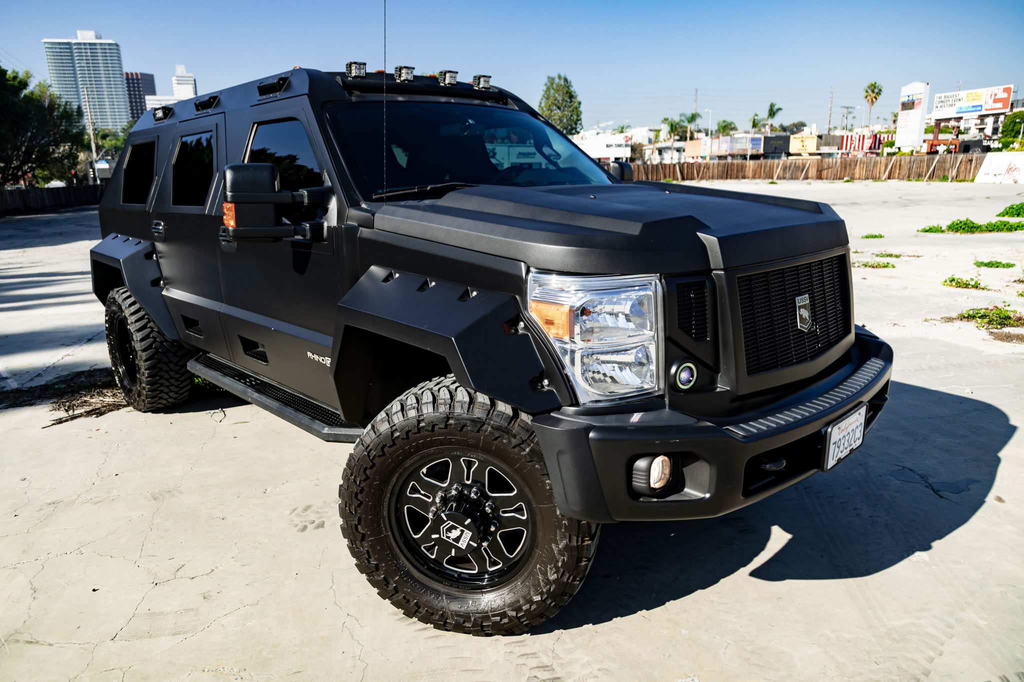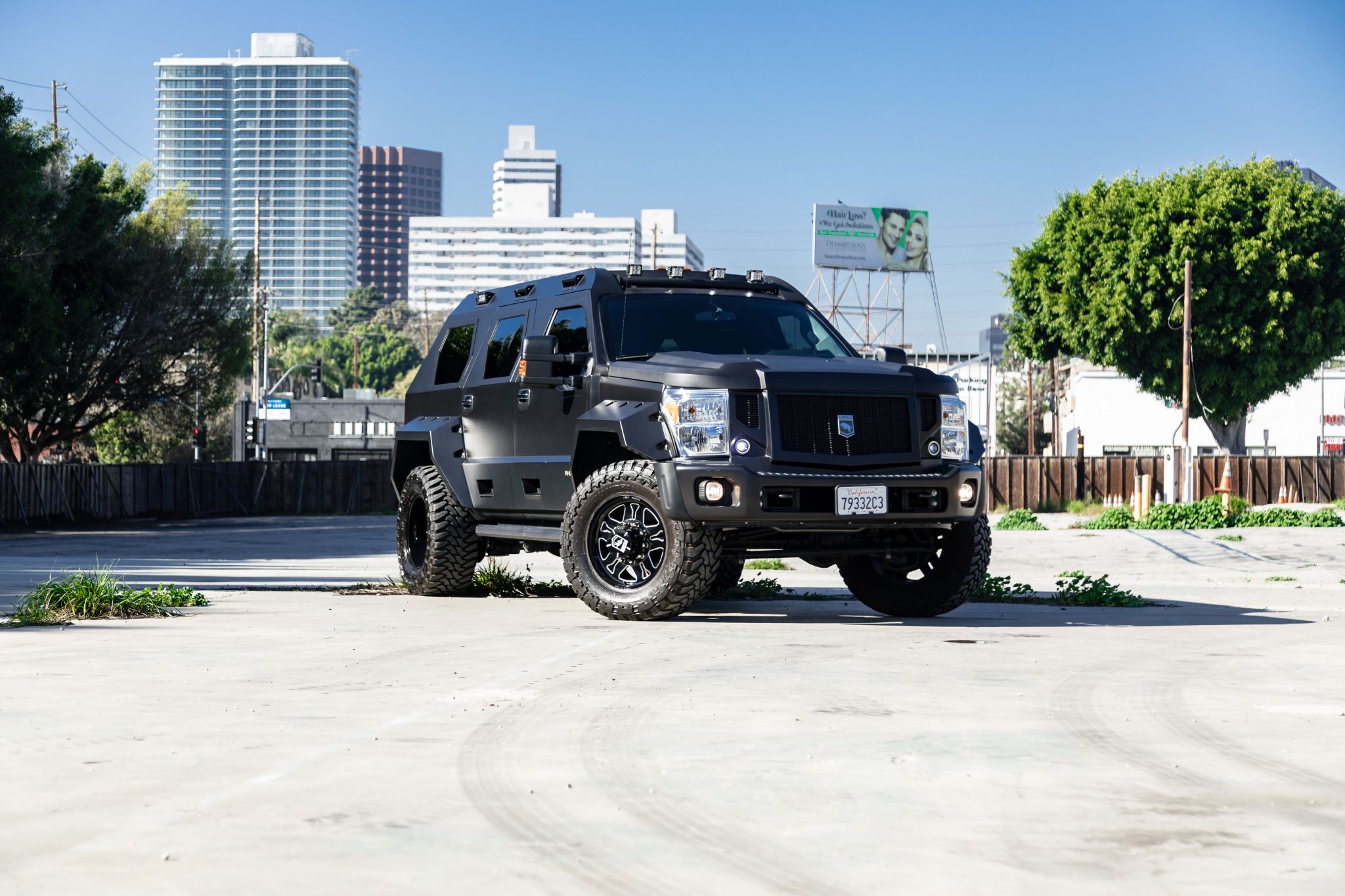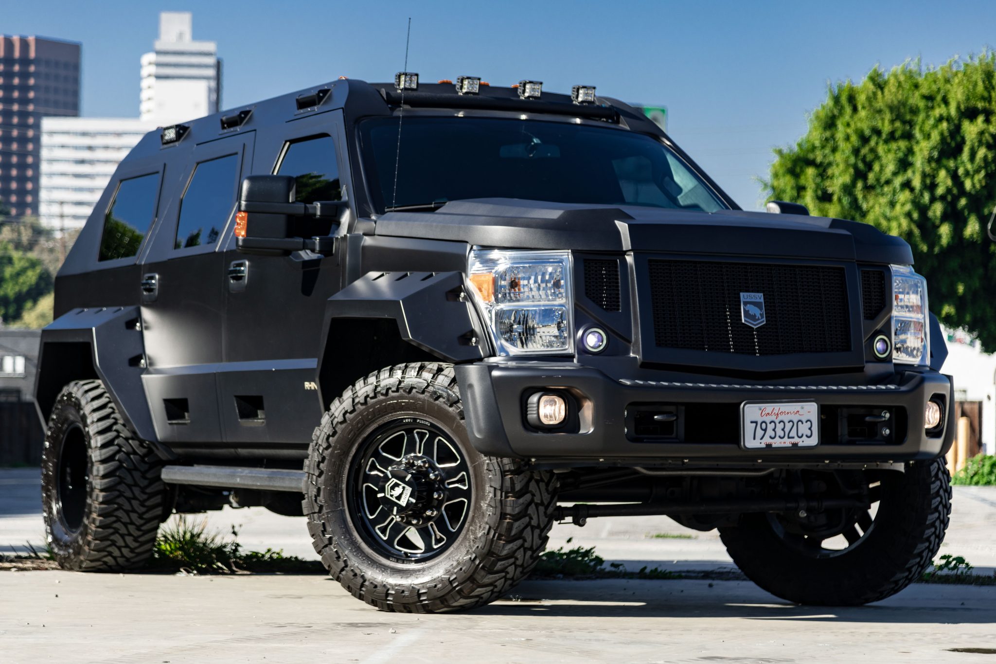 Forged 20″ aluminum wheels are wrapped in 38×15.50″ Toyo Open Country tires. A matching spare is mounted on a swing-out carrier. The suspension features Bilstein dampers in the front and self-leveling hydraulic shocks out back. Braking is provided by four-wheel ventilated discs with heavy-duty calipers.