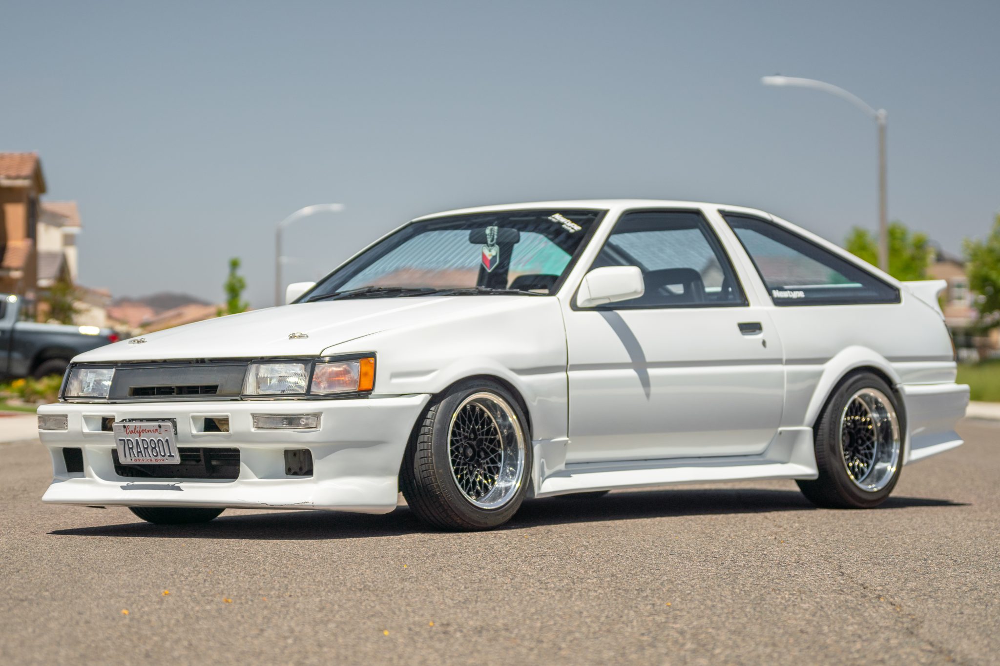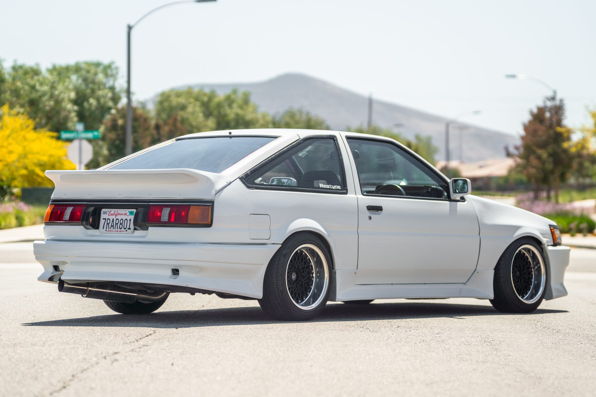 SSR 15″ basketweave wheels measure 9″ wide up front and 10″ wide out back and wear a mixed set of Accelera and Hankook tires that are said to have been replaced in preparation for the sale. The car is equipped with a front strut tower brace and Blitz Damper adjustable coilovers.