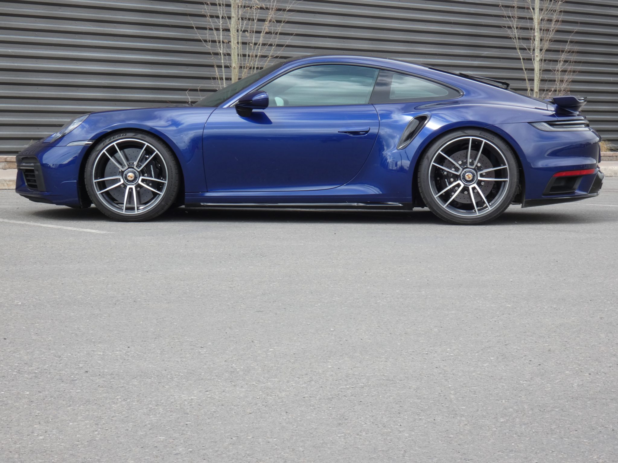 Center-lock 20″ and 21″ wheels are mounted with Pirelli P Zero tires measuring 255/35 up front and 315/30 out back. Braking is provided by black-finished calipers over multi-piece cross-drilled rotors, and the car was optioned with a front-axle lift system, and a lowered sport suspension with Porsche Active Suspension Management (PASM).