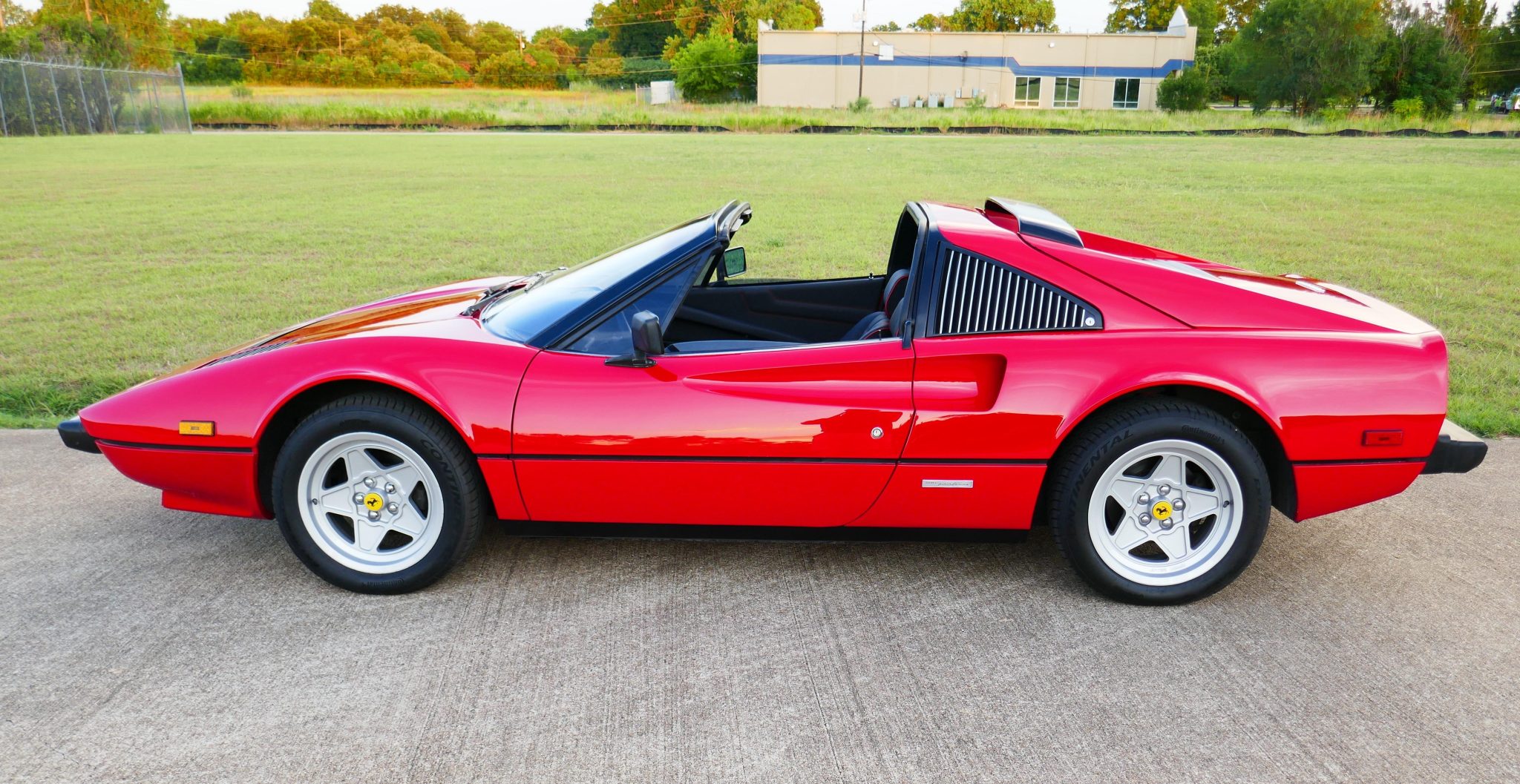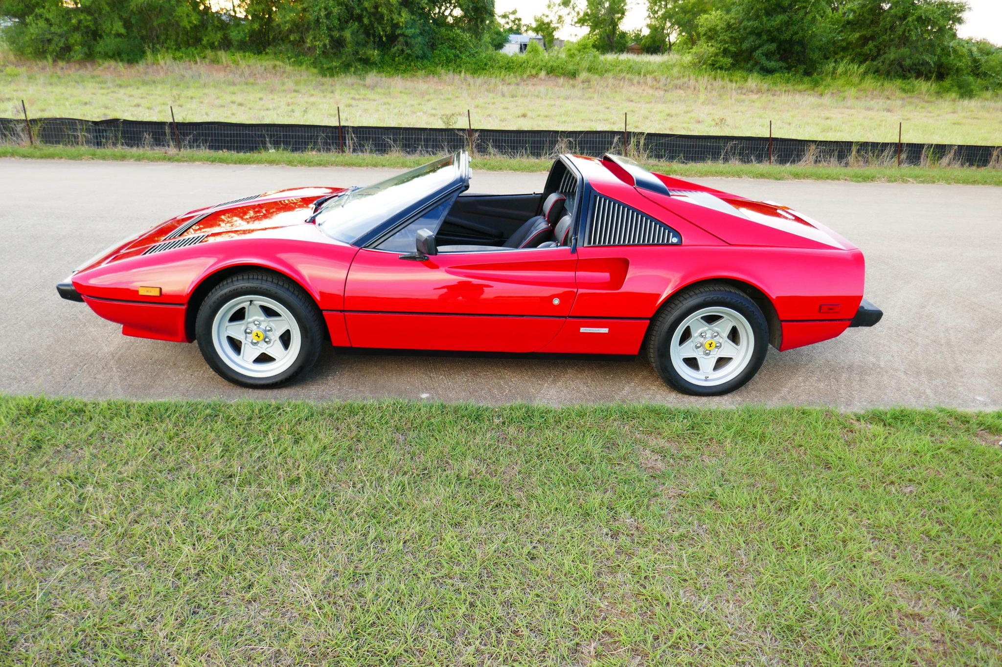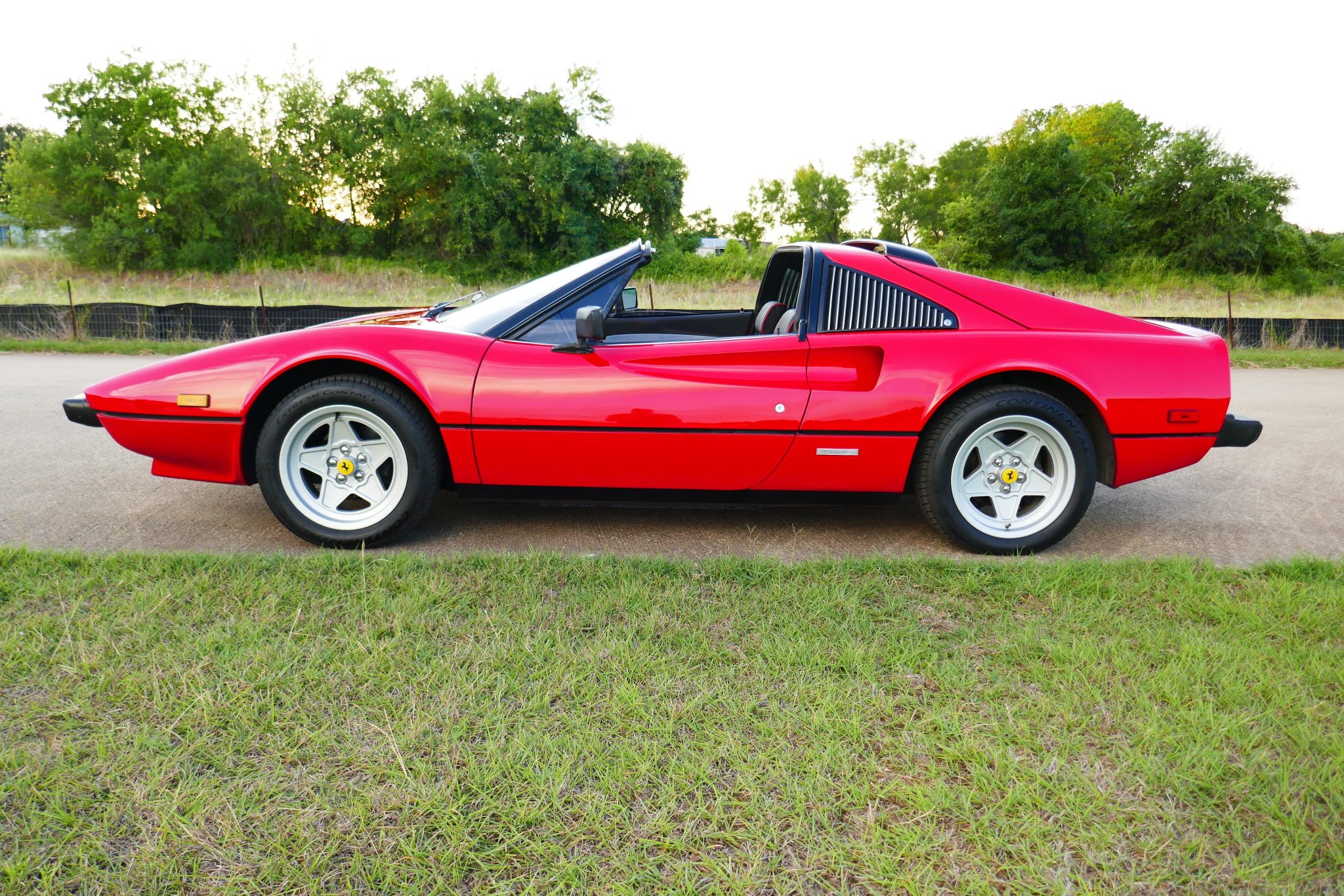 Staggered-width 16″ alloy wheels wear Ferrari center caps and are mounted with 205/55 front and 225/50 rear Continental ExtremeContact DWS06 tires. Stopping power is provided by four-wheel discs brakes.