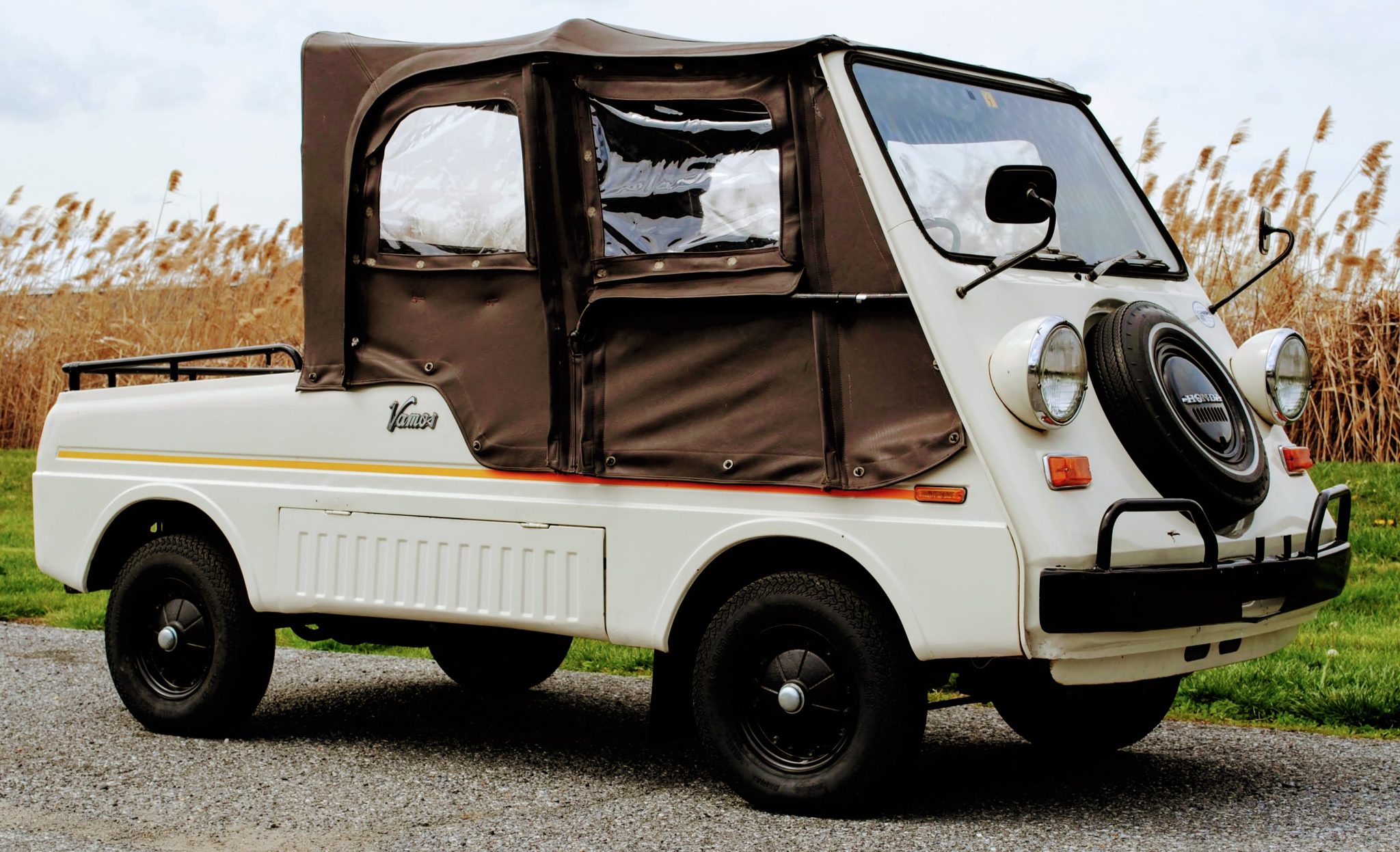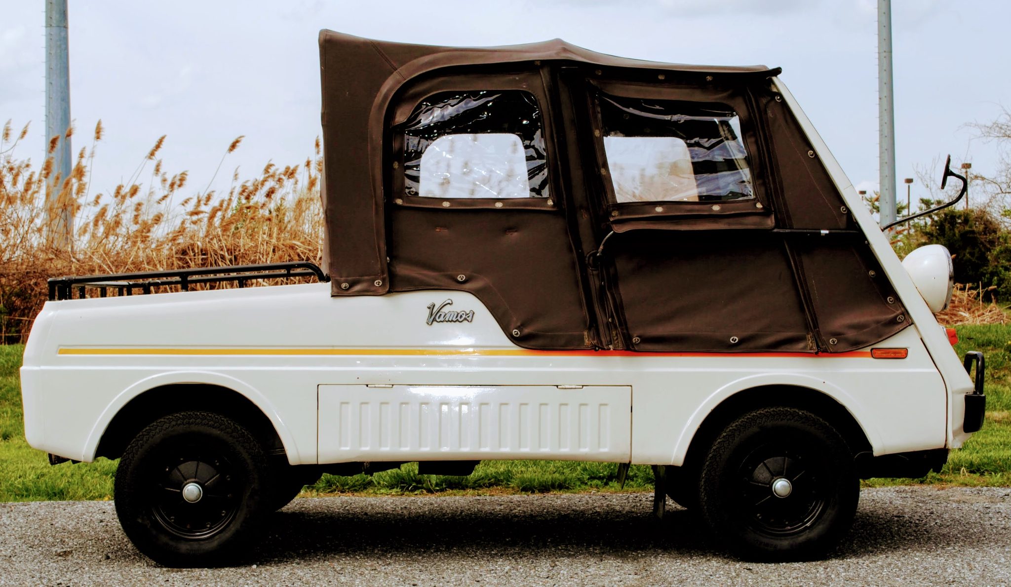 Black 10” steel wheels wear 145R Camac BN 313 tires that are said to have been mounted in February 2022. Suspension is comprised of control arms with tension rods up front as well as a rigid axle with leaf springs out back. Stopping power is provided by drum brakes at both ends.