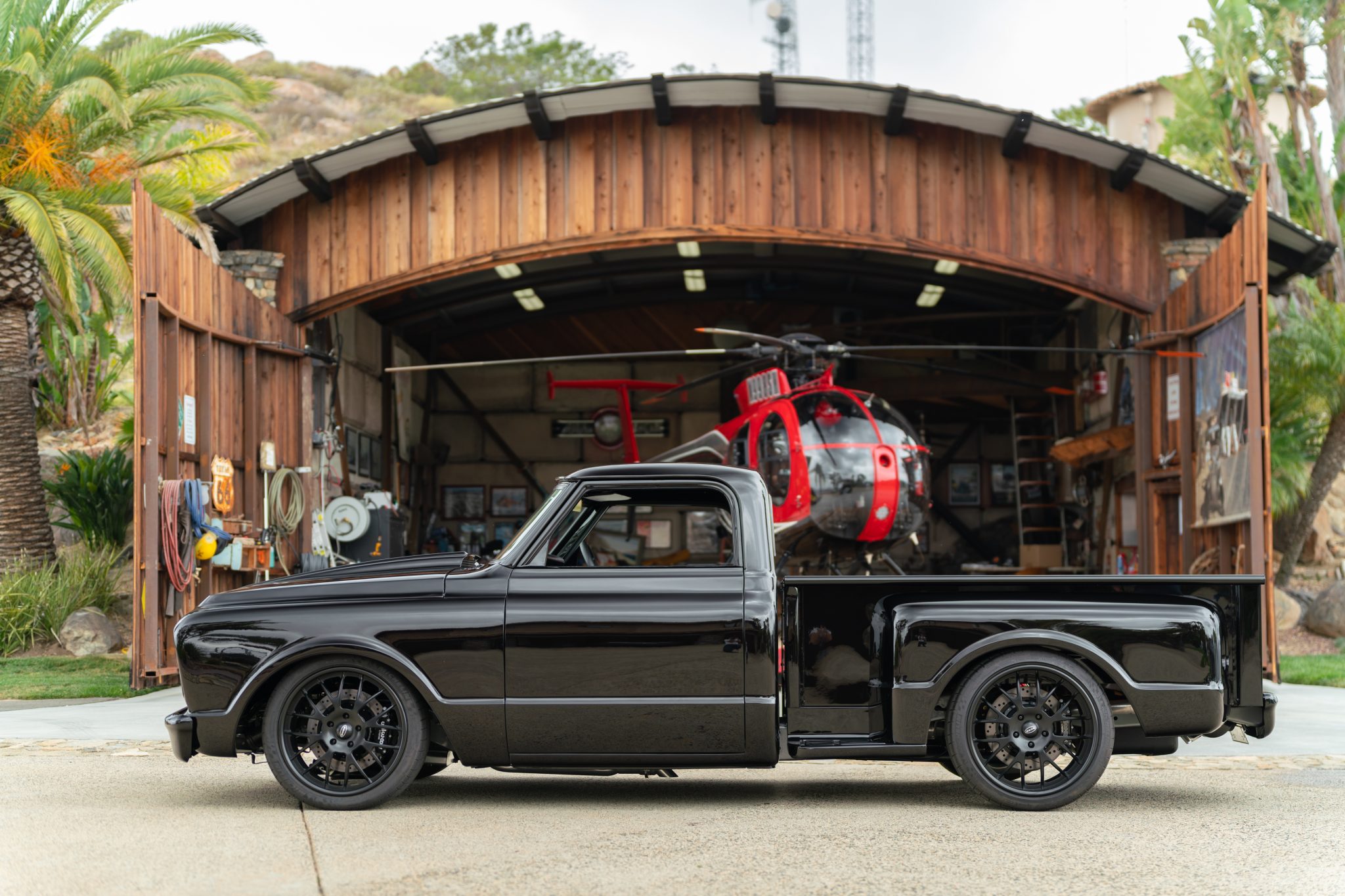 Forged 20″ Boze wheels are mounted with Michelin Pilot Super Sport tires. The truck is equipped with dropped front spindles, Strong Arms upper and lower control arms, and an Air Ride Technologies adjustable air suspension. Stopping power is provided by Wilwood calipers over drilled and slotted rotors at all four corners.