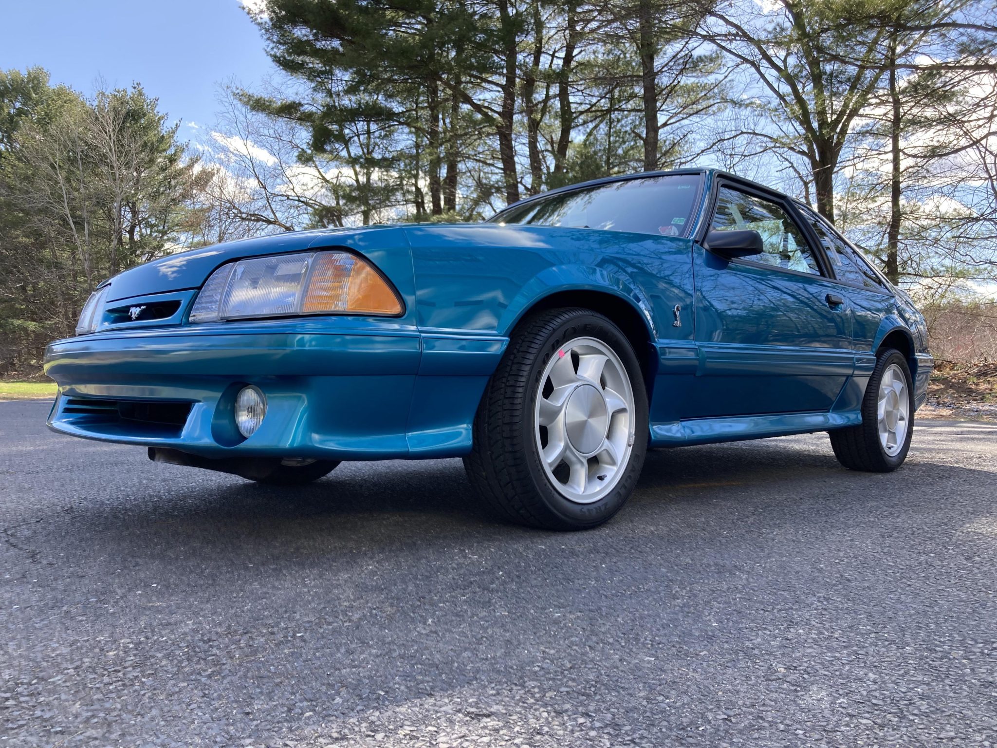 Factory 17” cast-aluminum wheels are wrapped in 245/45 Goodyear Eagle ZR45 tires. Stopping power is supplied by four-wheel disc brakes, and the suspension features SVT-specific Tokico shocks and struts along with unique springs and sway bars.