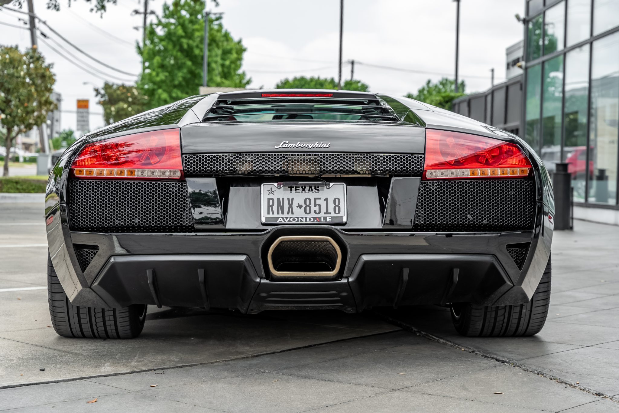 Black-painted 18” double-spoke wheels are mounted with Pirelli PZero Rosso tires that show 2019 date codes and measure 245/35 up front and 335/30 out back. Braking is handled by black-finished calipers with white Lamborghini script fitted over cross-drilled rotors, and the car is equipped with a front-axle lift system.