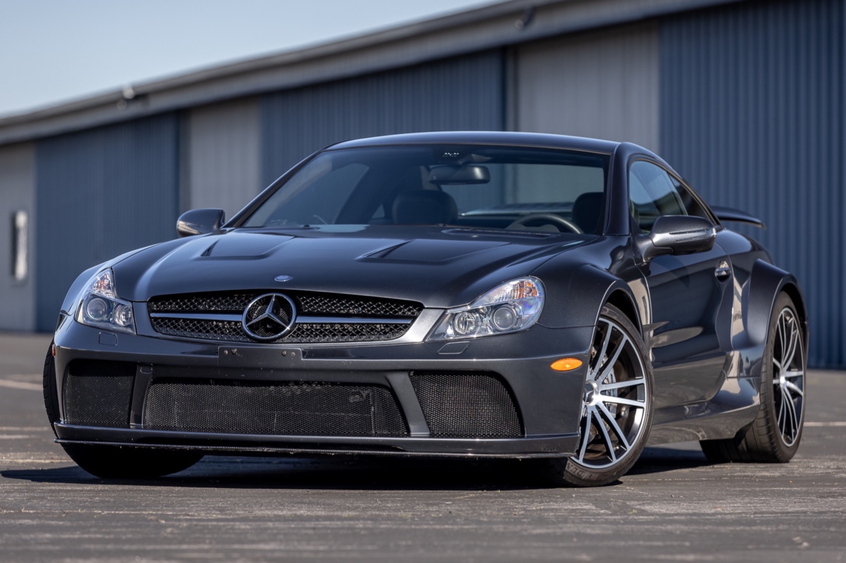 The forged 19″ and 20″ AMG twin-spoke alloy wheels are mounted with Dunlop SP Sport Maxx GT tires measuring 265/35 up front and 325/30 out back. The track is widened by 4.5” at the front and 4.1” at the rear compared to a standard SL65, and the car features an active-roll stabilization system and Electronic Stability Control. Stopping power is provided by silver AMG-branded calipers over slotted and cross-drilled rotors at all four corners. The seller notes the tires need to be replaced.