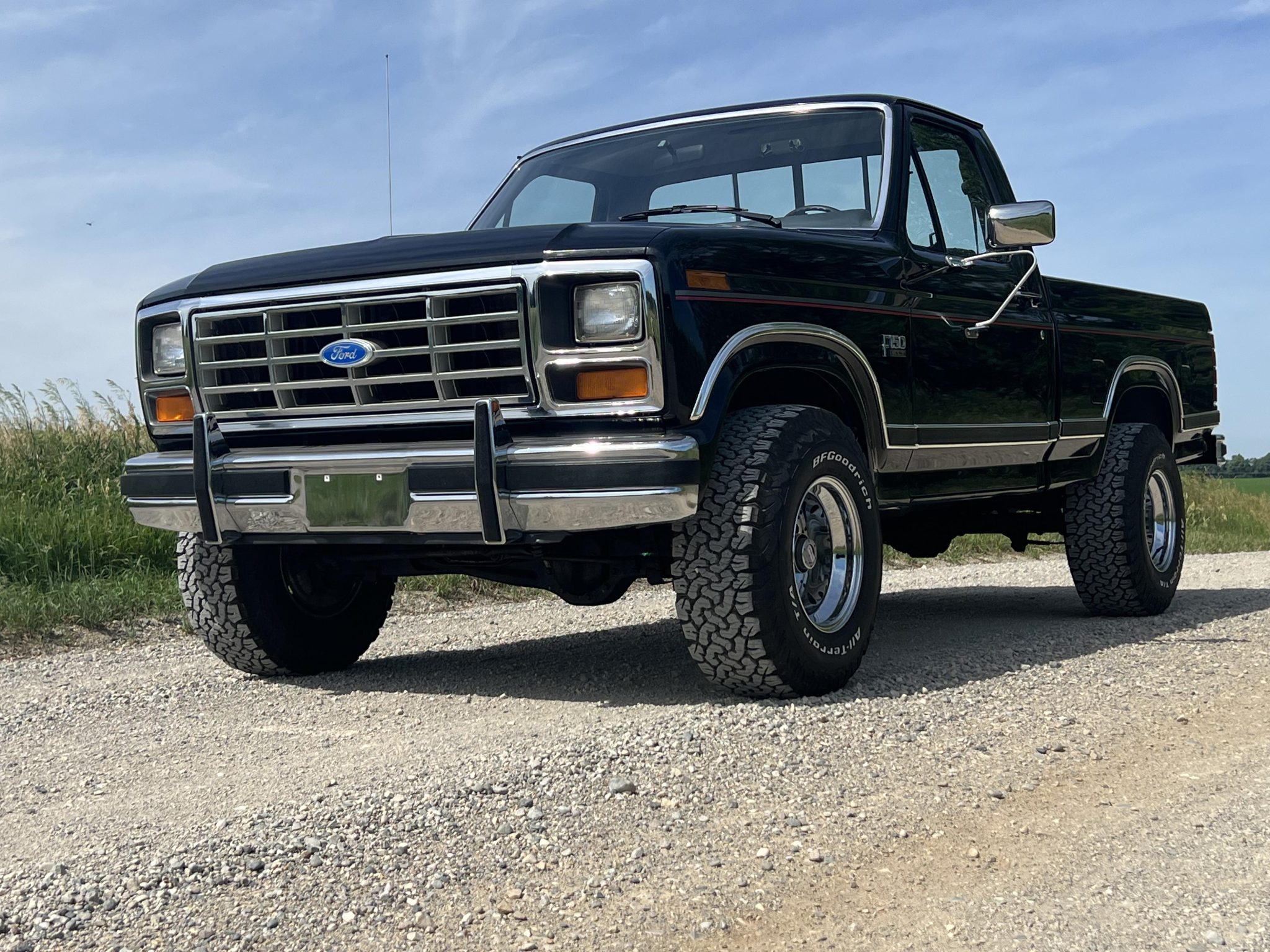 Chrome 15″ Cragar wheels wear BFGoodrich All-Terrain T/A K02 tires. Equipment includes power-assisted brakes and manually-locking front hubs. Maintenance carried out in 2021 reportedly included flushing the brake fluid and greasing the chassis.