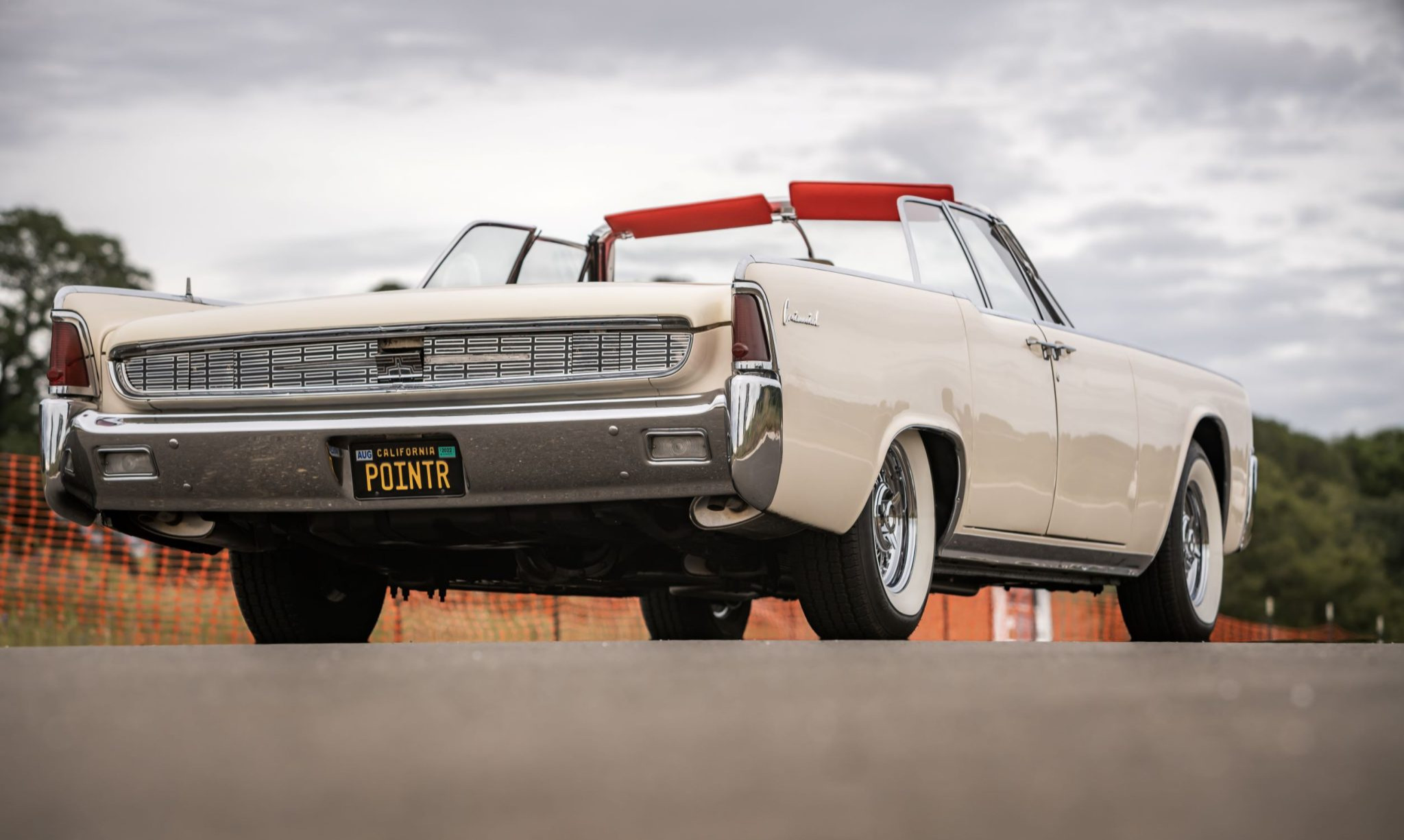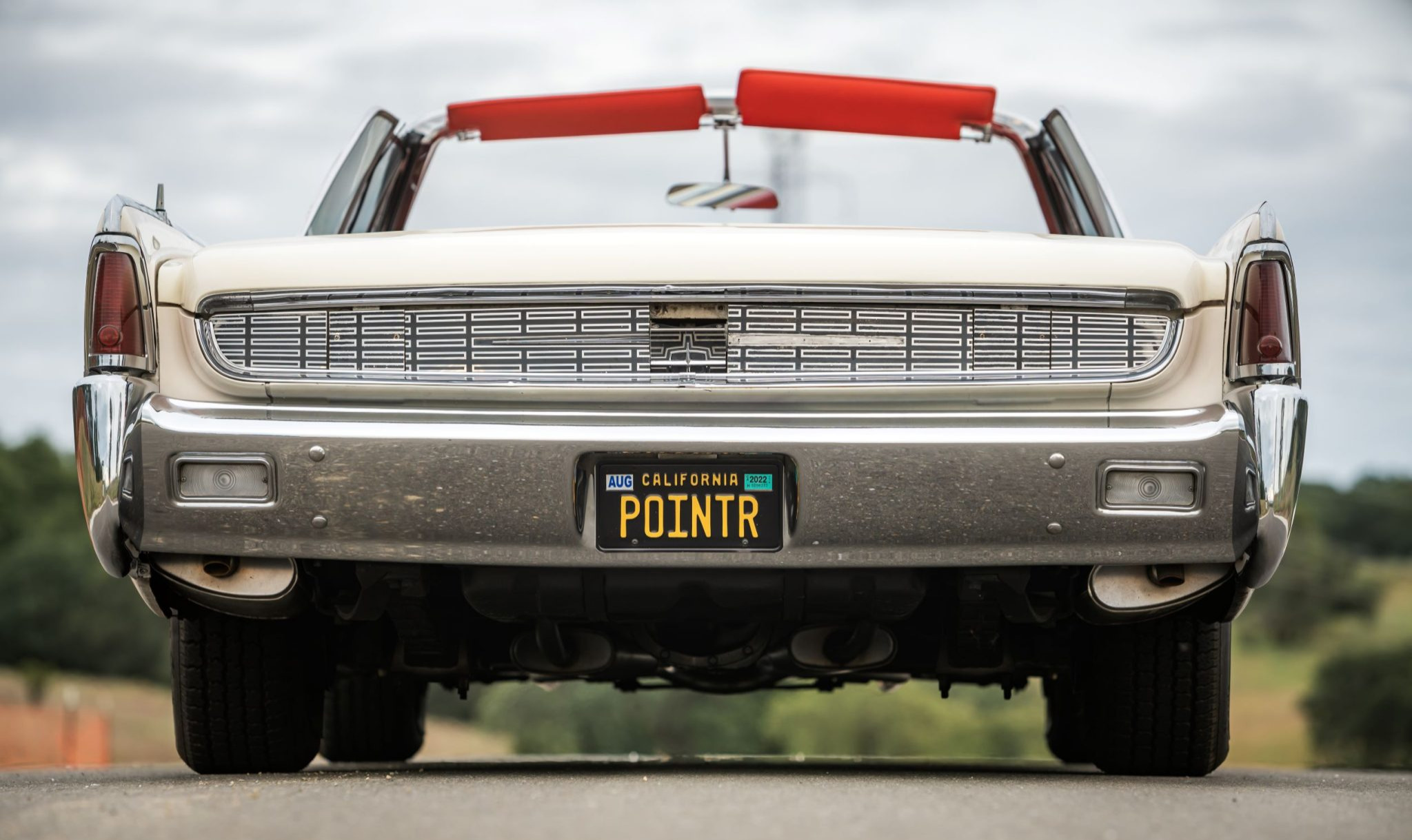 American Classic wide-whitewall tires are mounted on the 15″ wire wheels, which are equipped with three-eared knock-off spinner caps. A set of four factory-style full wheel covers will accompany the sale. Standard equipment includes power-assisted steering and brakes, the latter of which were serviced with a replacement master cylinder in 2019 according to the seller.