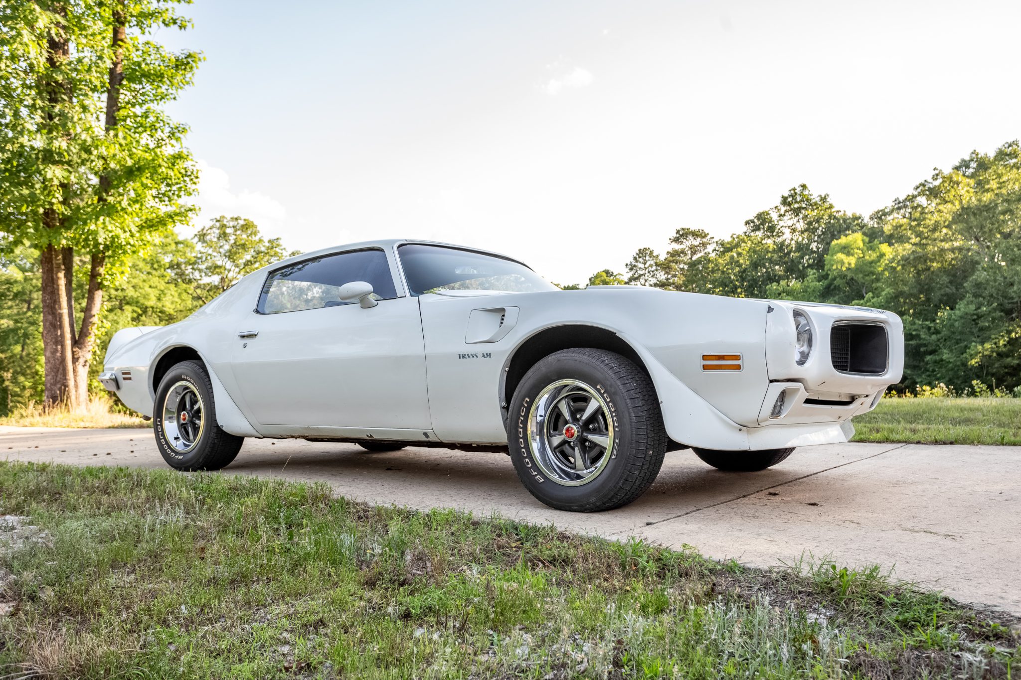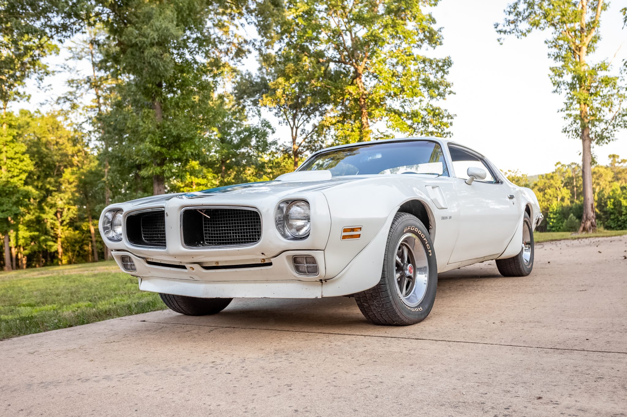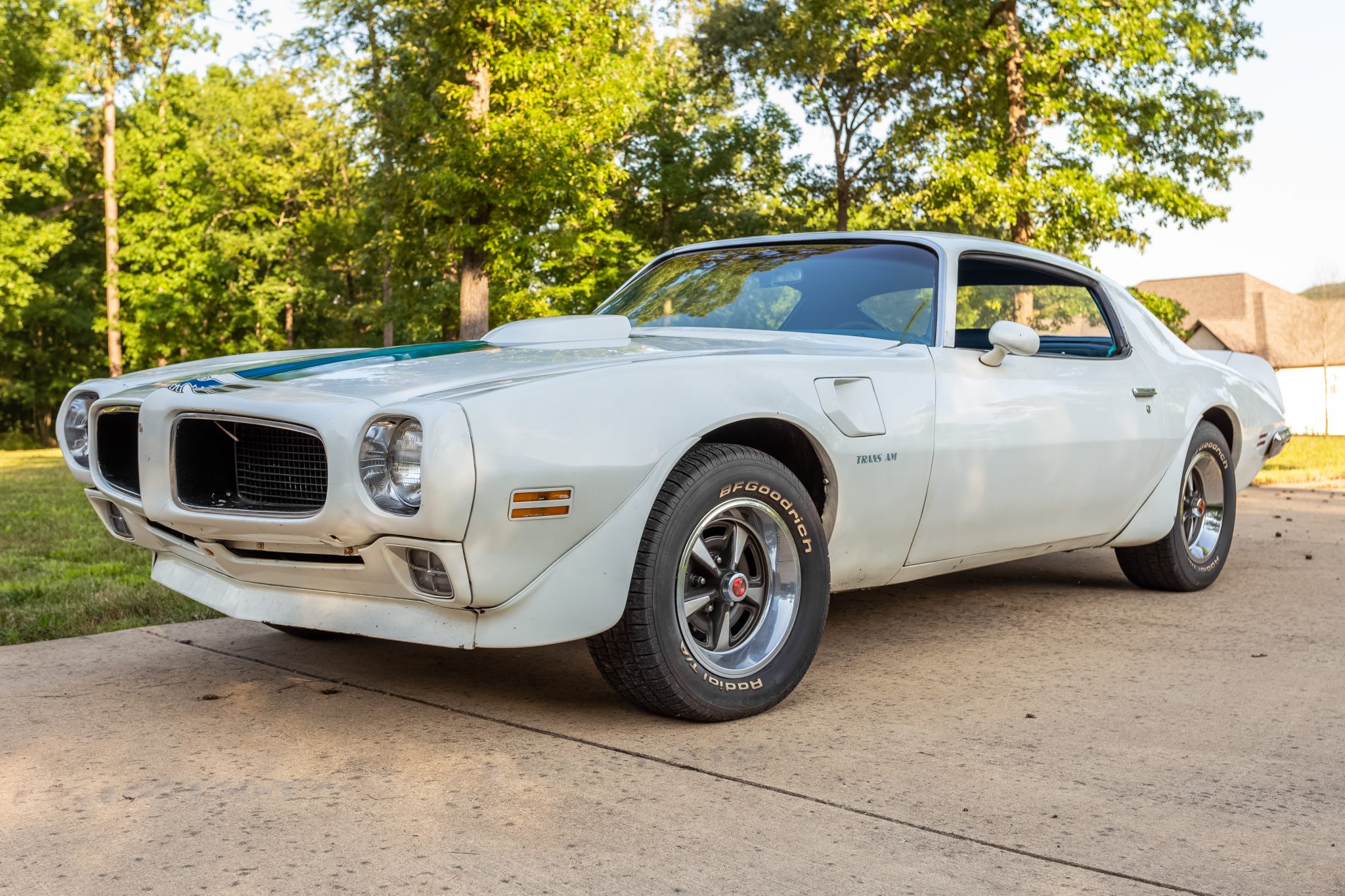 Rally II wheels wear 15″ BFGoodrich Radial T/A raised-letter tires. Power-assisted front disc brakes and variable-ratio steering were standard equipment for the 1970 Trans Am.