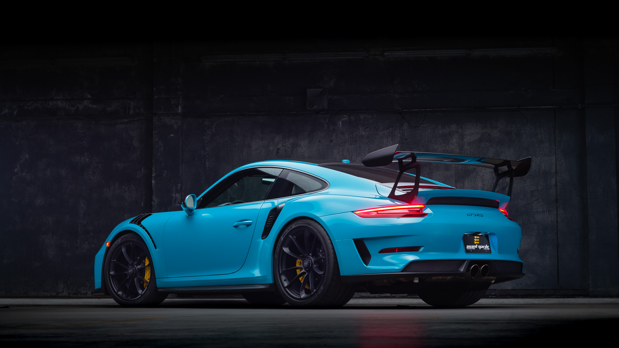 Satin black-finished 20″ front and 21″ rear center-lock alloy wheels are mounted with Dunlop Sport Maxx Race 2 tires measuring 265/35 and 325/30, respectively. The Weissach Package added carbon fiber front and rear anti-roll bars and coupling rods. Stopping power is provided by Porsche Ceramic Composite Brakes (PCCB) with yellow-finished calipers, and the car is equipped with a front axle lift system. The brake fluid was flushed in July 2021.