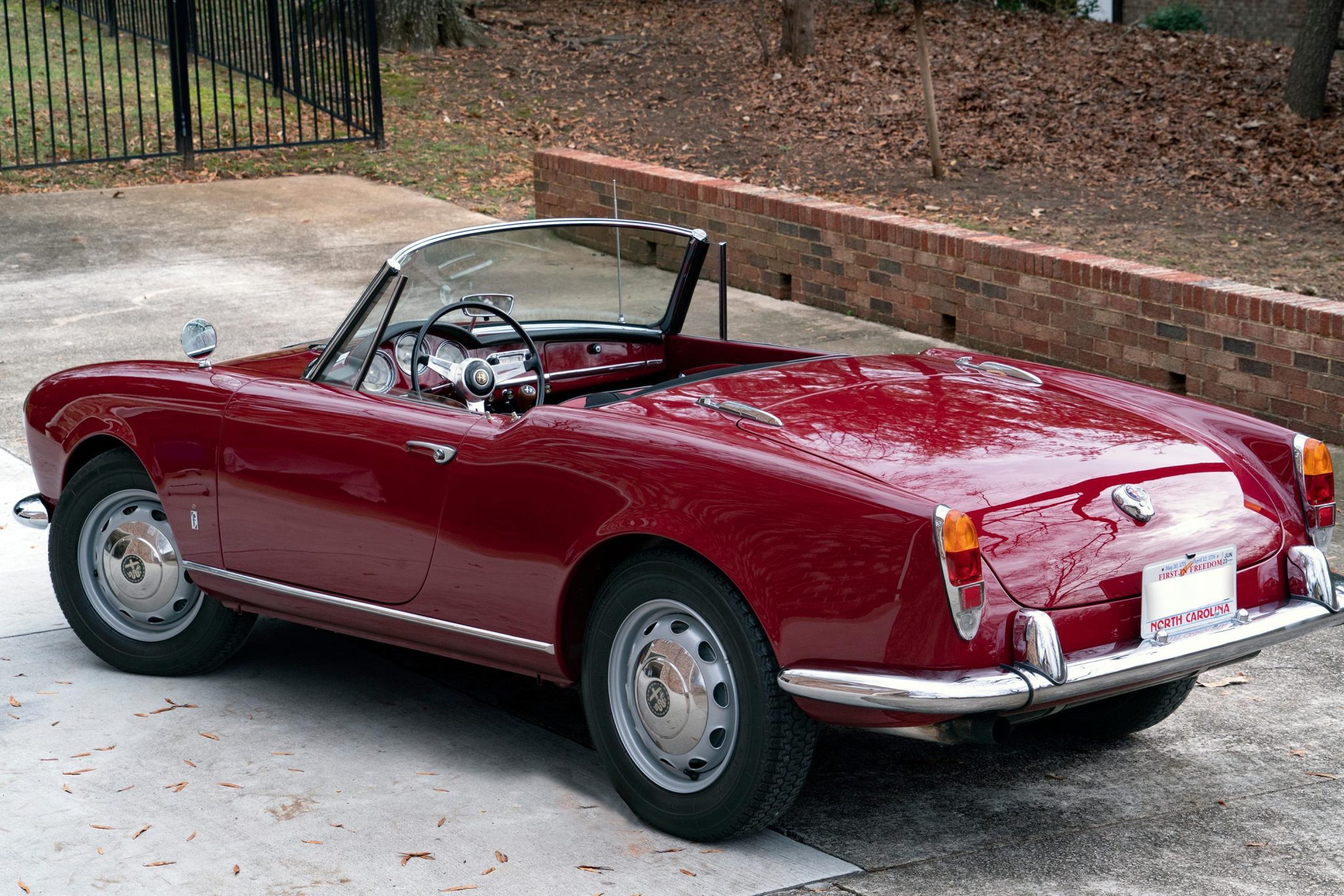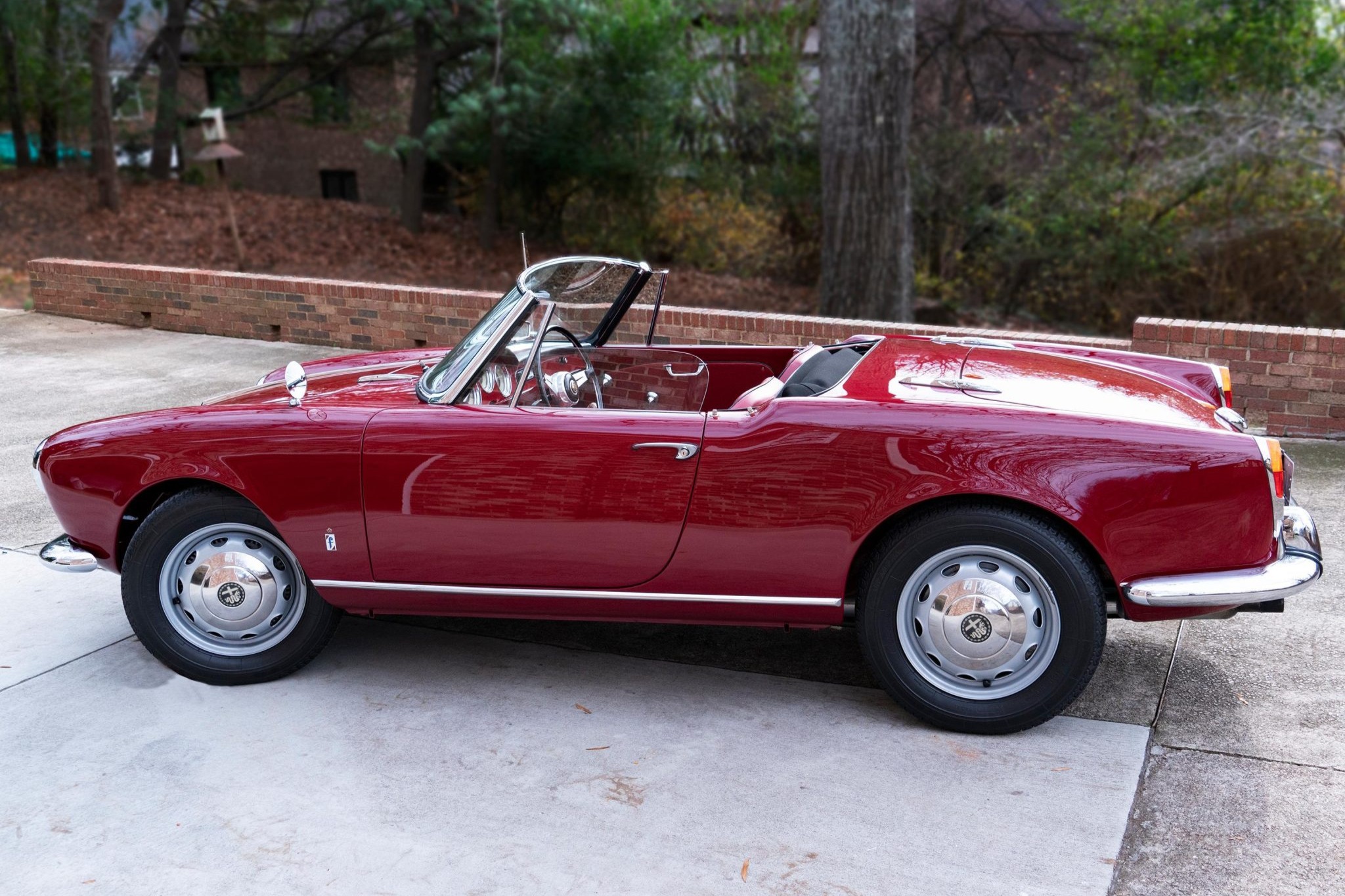 Replacement silver-finished 15” steel wheels wear chrome hubcaps and are mounted with 165-width Michelin XZX tires. Stopping power is provided by four-wheel drum brakes that are said to have been fitted with replacement cylinders in mid-2022. The seller notes that the rear tires intermittently rub the fenders when the car is carrying a heavy load.