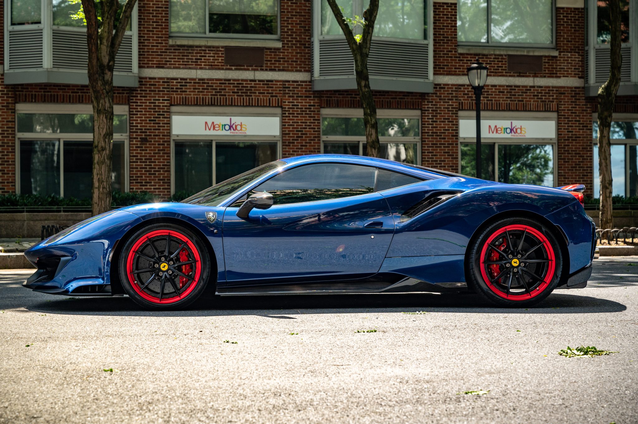 Blu Sterling Leather Upholstery w/Red Alcantara Seat Inserts