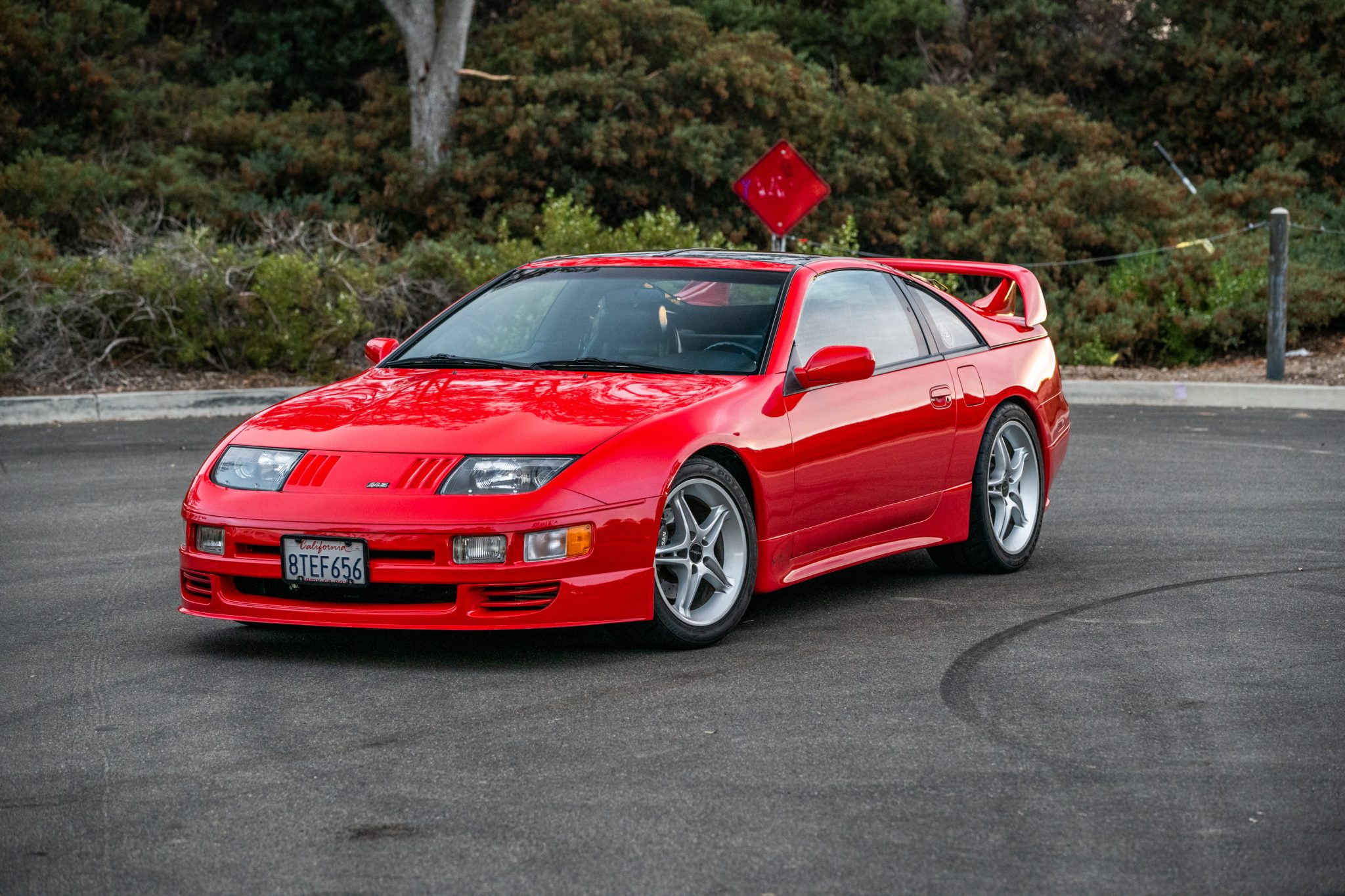 Staggered-diameter 17″ front and 18″ rear Yokohama AVS wheels wear Stillen center caps and are mounted with Bridgestone Potenza RE-71R tires measuring 255/40 up front and 275/35 out back. Stopping power is provided by four-wheel GT-R-specification discs with Nissan-branded calipers over cross-drilled rotors, and the car is equipped with Super HICAS four-wheel steering. Suspension modifications include Stillen sway bars and progressive rate front and rear springs.