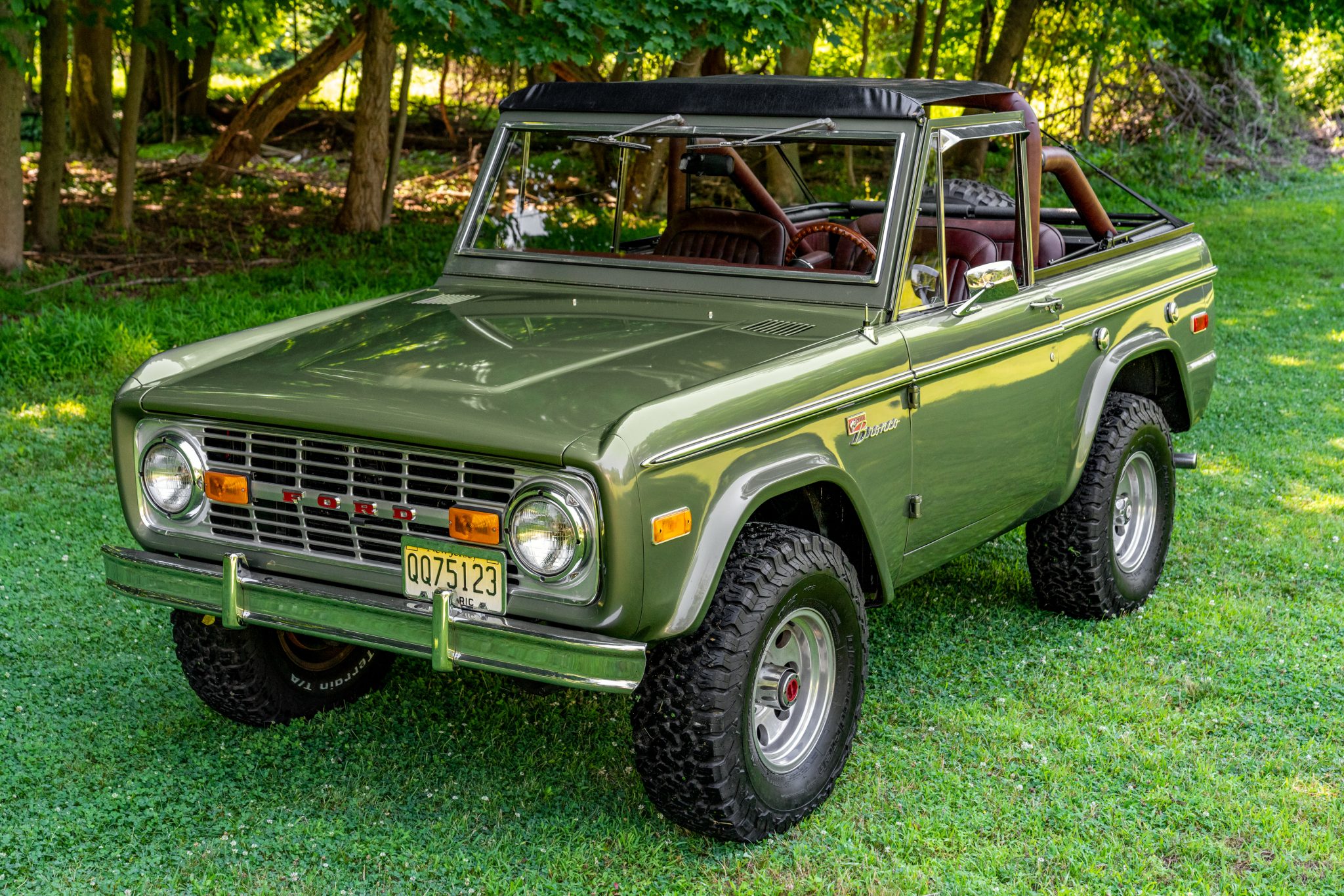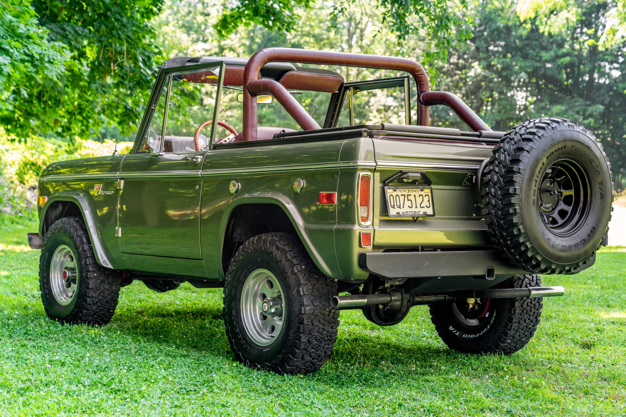 American Racing 15″ wheels are wrapped in 32×11.5″ BFGoodrich All-Terrain T/A K02 tires, and a black 15″ steel spare is mounted on the swing-away rear carrier. The truck is equipped with locking front hubs and has been modified with a Rancho suspension lift kit along with a Wild Horses power steering system and power-assisted front disc brakes. Other work performed during current ownership included installing copper brake lines, rebuilding the steering rack, and replacing the ball joints along with the rear brake shoes and wheel cylinders.