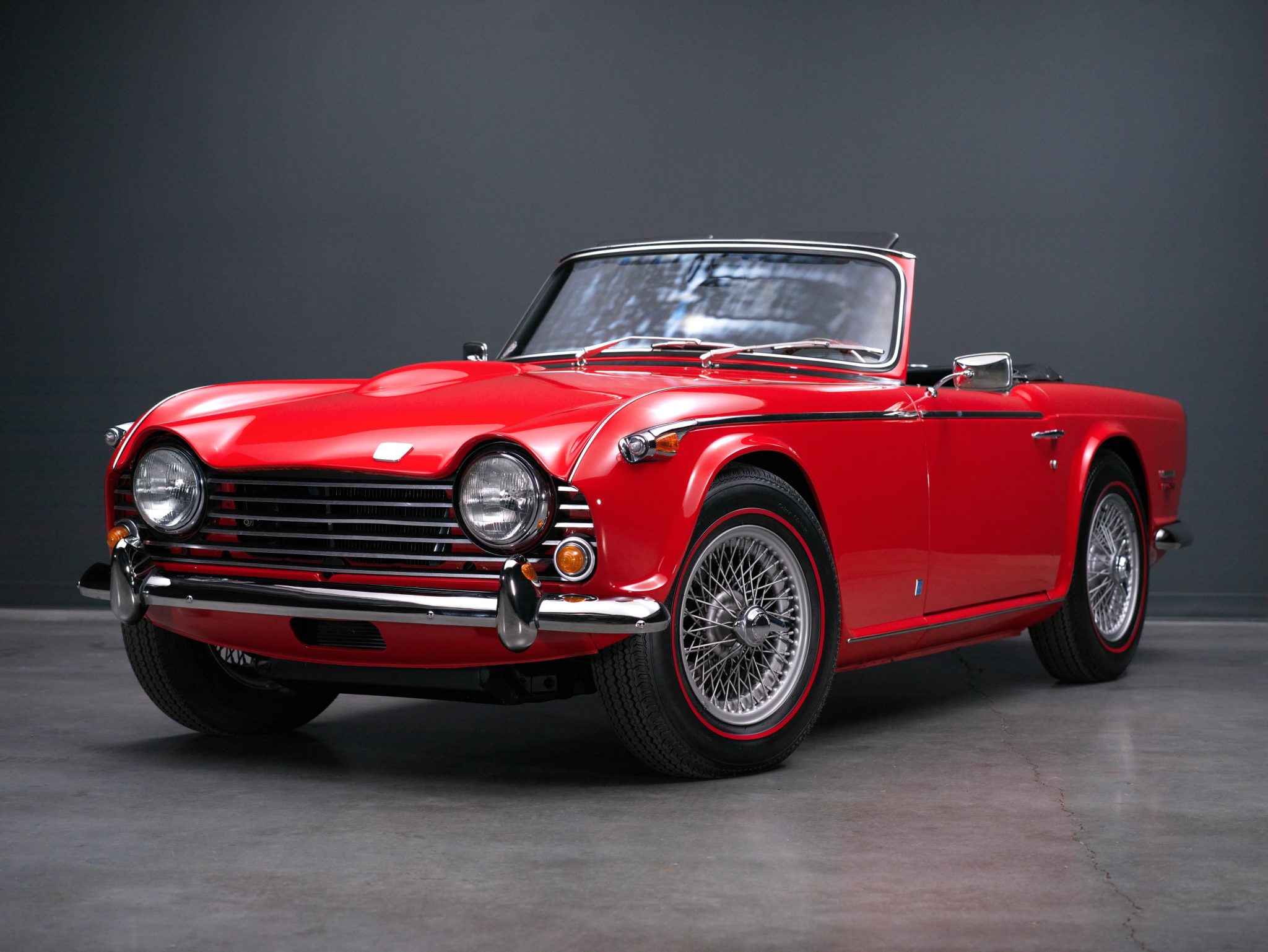 Silver 15″ knock-off wire wheels are mounted with 185-series Coker redline tires that reportedly show 2020 date codes. The car is equipped with fully independent suspension, and braking is provided by front discs and rear drums. The selling dealer states that a brake fluid flush was performed in preparation for the sale.