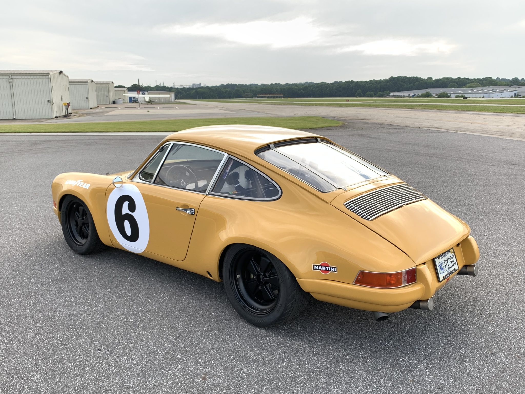 Black 16″ Fuchs wheels are wrapped in 225/50 front and 245/45 rear Hoosier H2O tires. Suspension modifications reportedly include double adjustable Ohlins double adjustable shocks, 25mm and 36mm solid torsion bars, Elephant Racing QuickChange rear spring plates, Rebel Racing rear spring plate bushings, Elephant Racing strut bodies, and aluminum rear trailing arms. The sturts were adjusted in September 2019. Braking components include Boxster-style front calipers with cross-drilled Carrera-style rotors, Carrera-style rear calipers with vented and cross-drilled rotors, Pagid Racing RS-14 brake pads, and stainless-steel brake ducts.