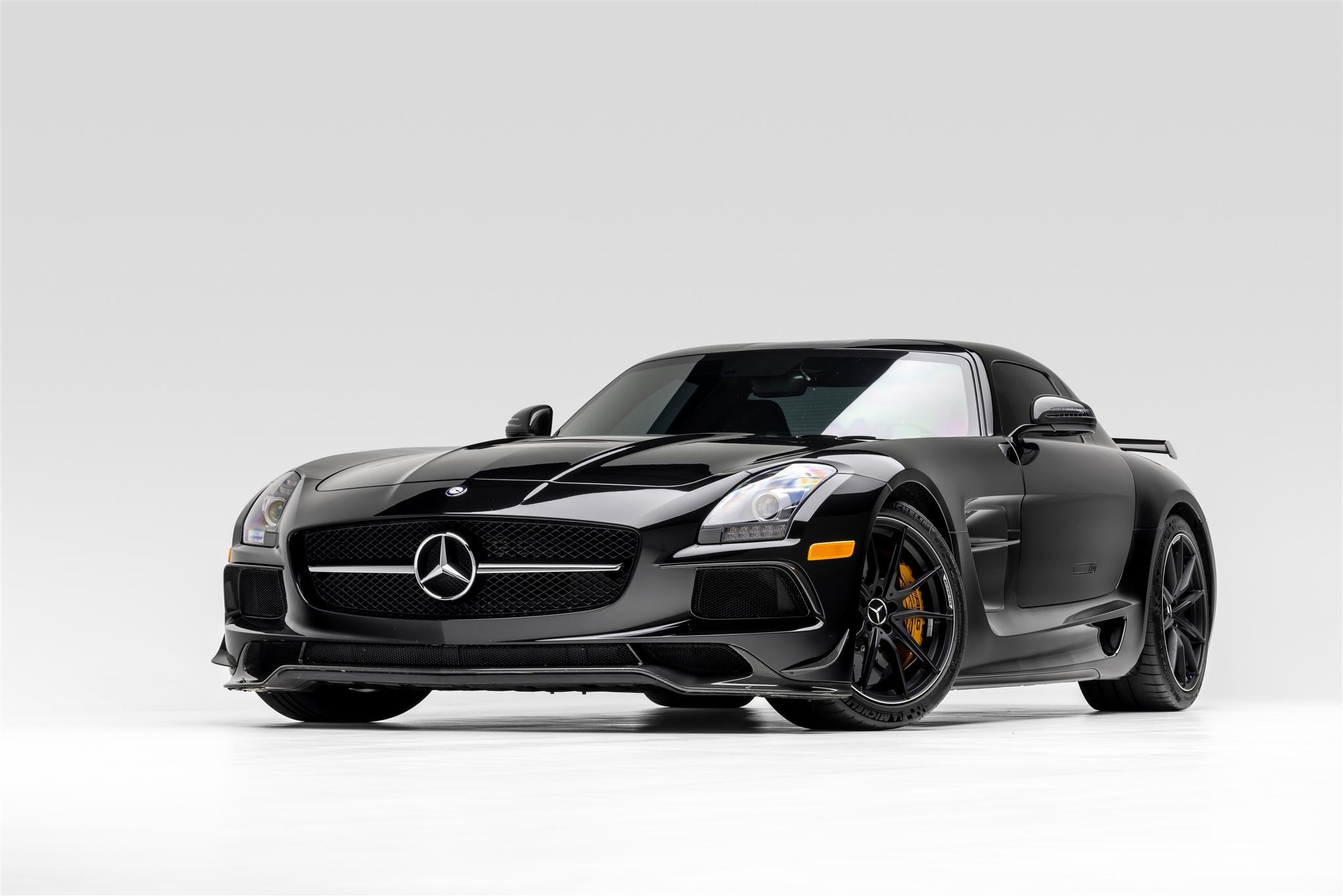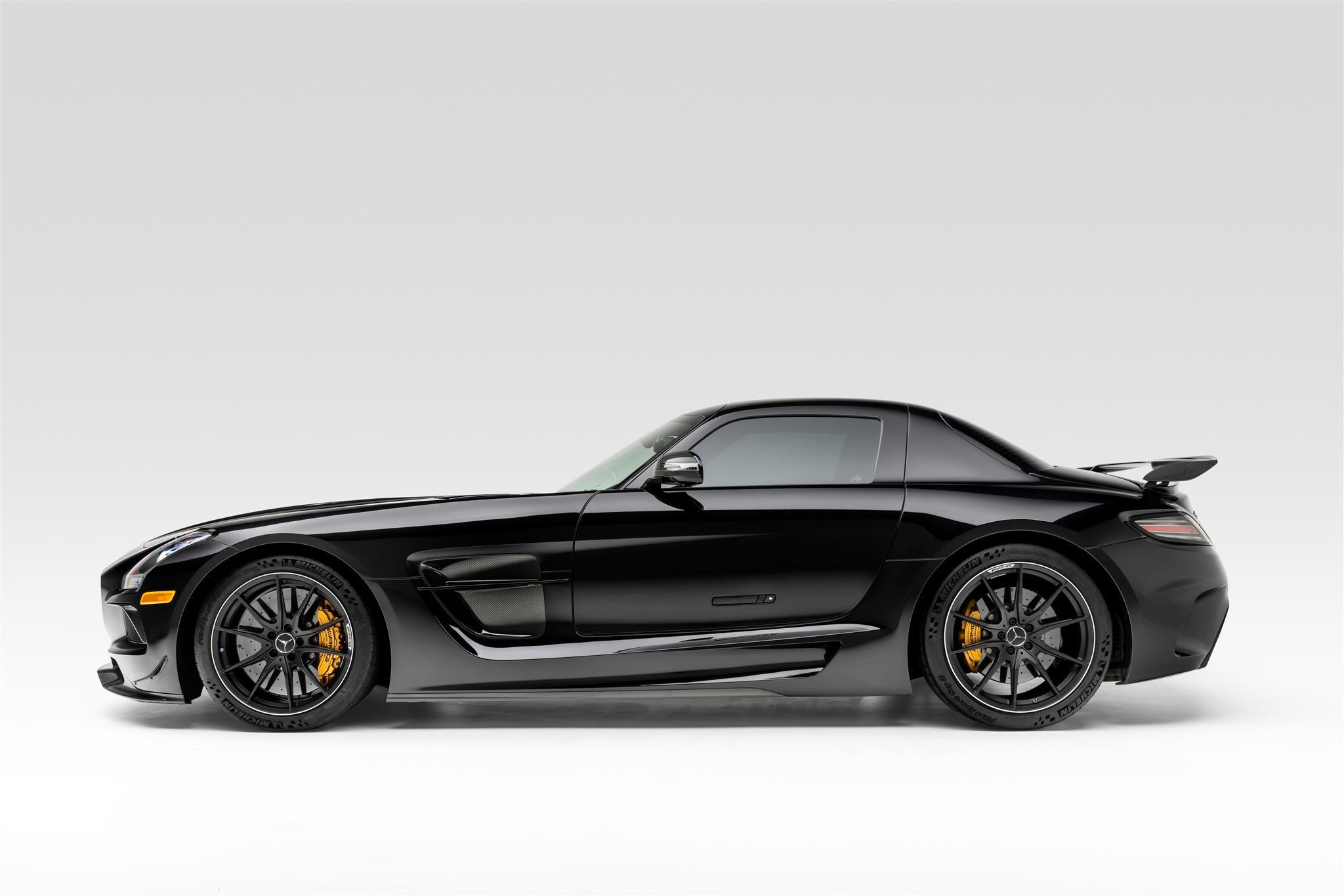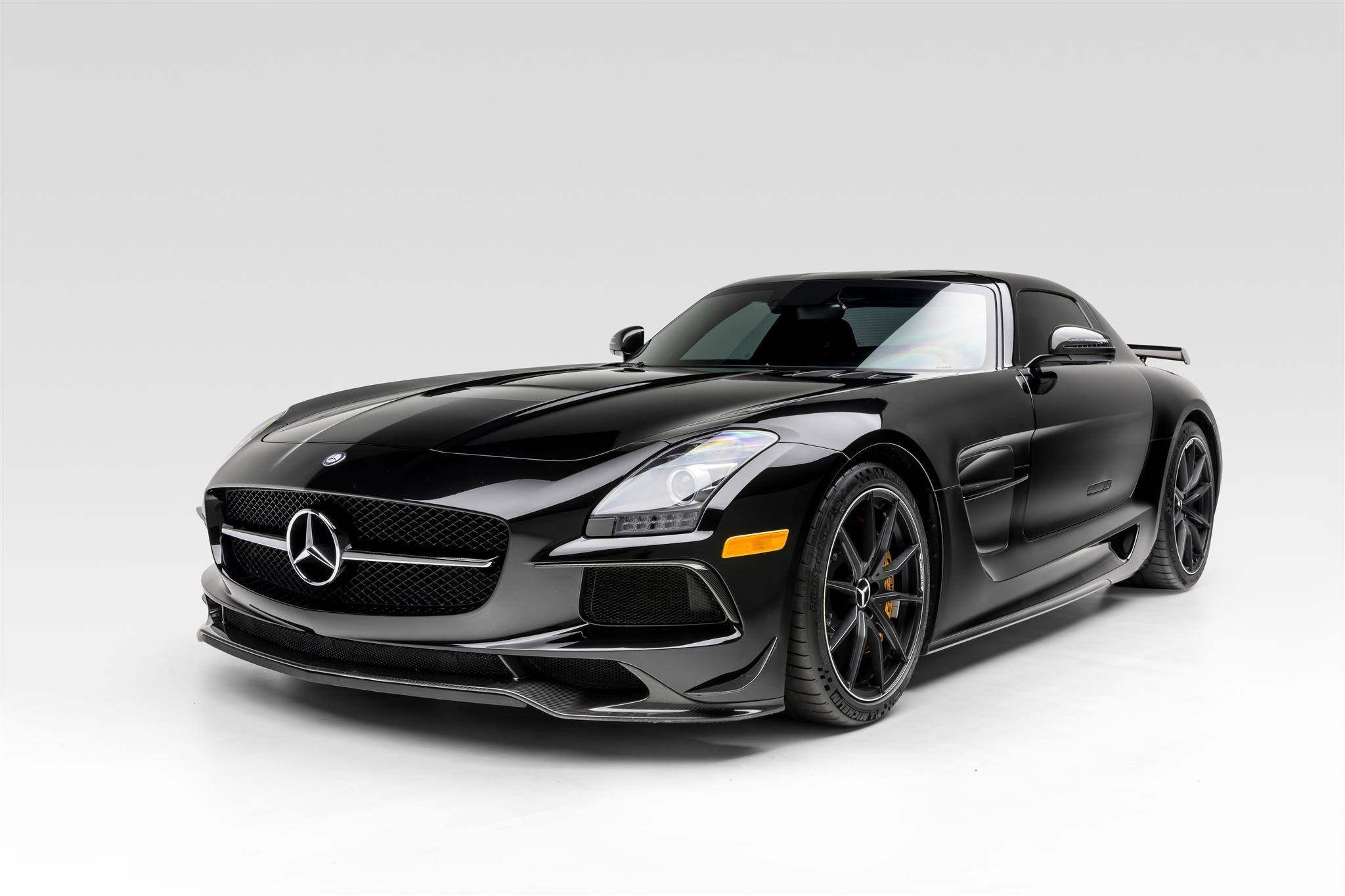 This example is finished in Obsidian Black (197U) and features gullwing doors, bi-xenon headlights, carbon-fiber mirror caps, vented fenders, a carbon-fiber rear wing, a rear-view camera, and quad exhaust outlets.