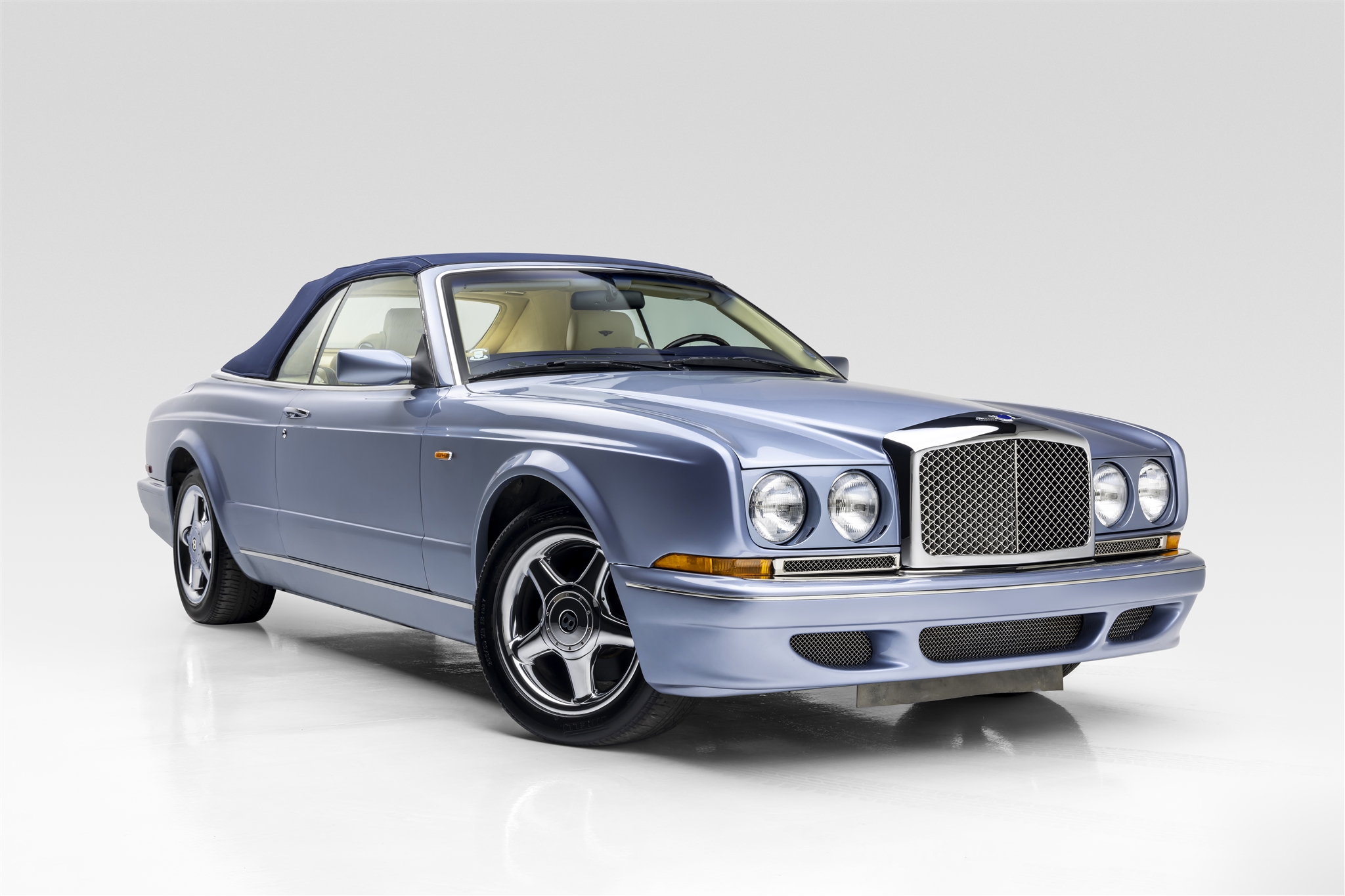 Chrome-finished 18″ five-spoke wheels are mounted with 255/50 Pirelli P Zero Asimmetrico tires. Braking is handled by four-wheel discs, and the car is factory equipped with an electronically-controlled suspension system.
