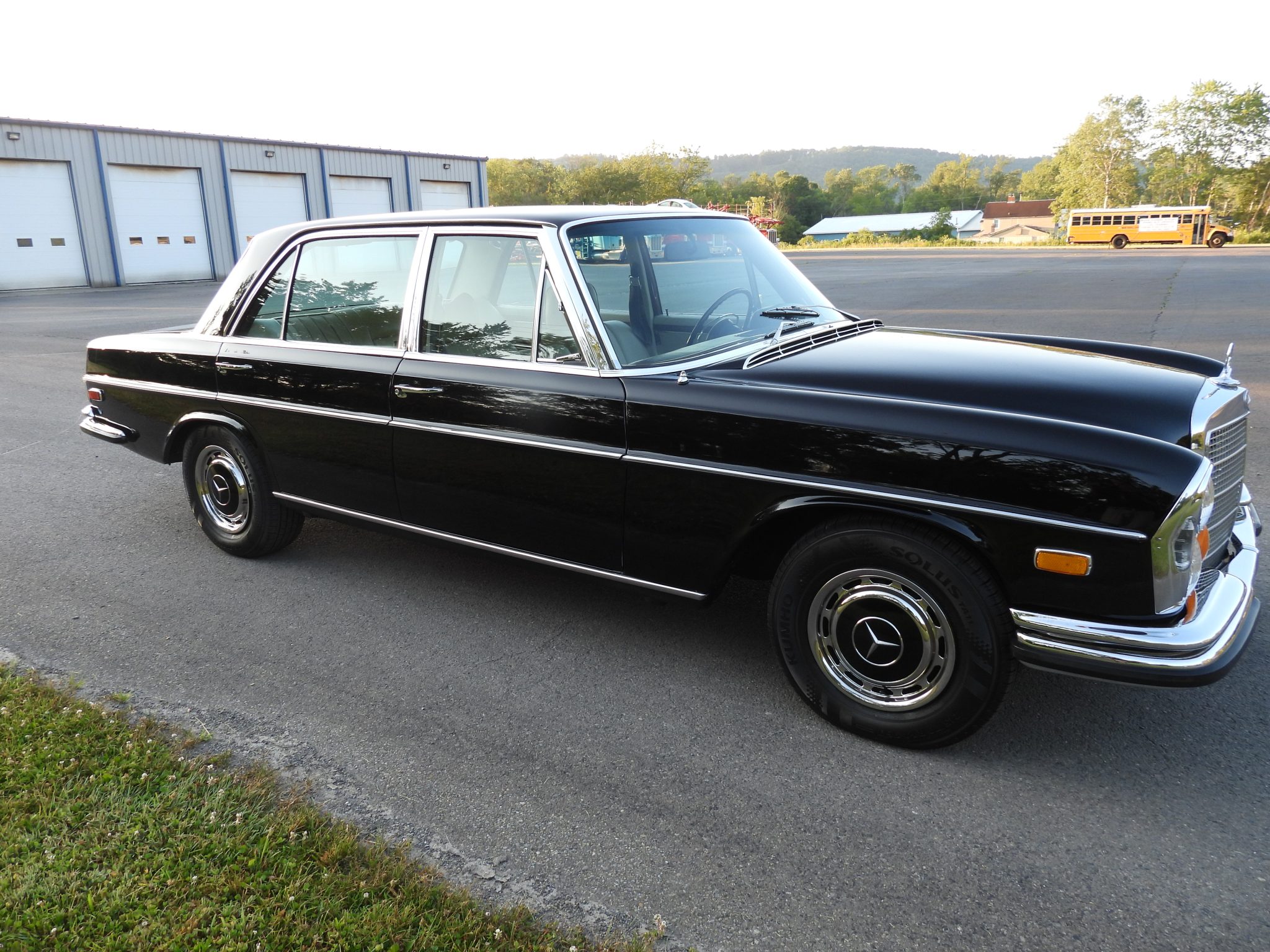 Steel 14″ wheels wear bright covers with body-color inserts and are mounted with 215/70 Kumho Solus TA11 tires that were reportedly installed in March 2022. W109 models were equipped self-leveling air suspension, and braking is handled by power-assisted four-wheel discs. Work performed during current ownership has included flushing the brake fluid, overhauling the power steering pump, performing an alignment, and replacing the front dampers and front and rear suspension bellows.