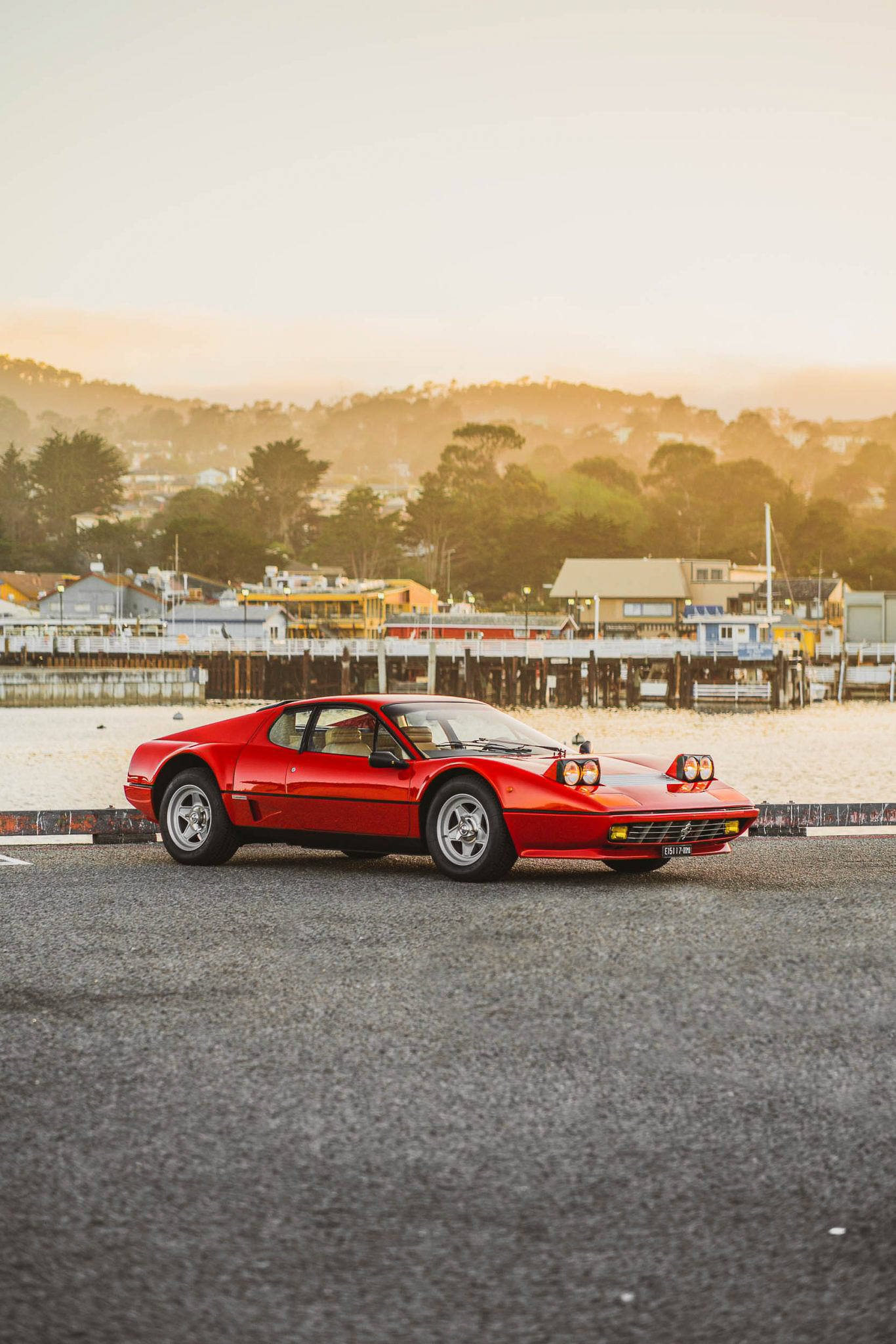 Five-spoke center-lock metric wheels with Ferrari etchings are mounted with three-ear chrome knockoffs and wear 240/55VR415 Michelin TRX tires, which were installed in May 2022. Each corner is equipped with disc brakes.