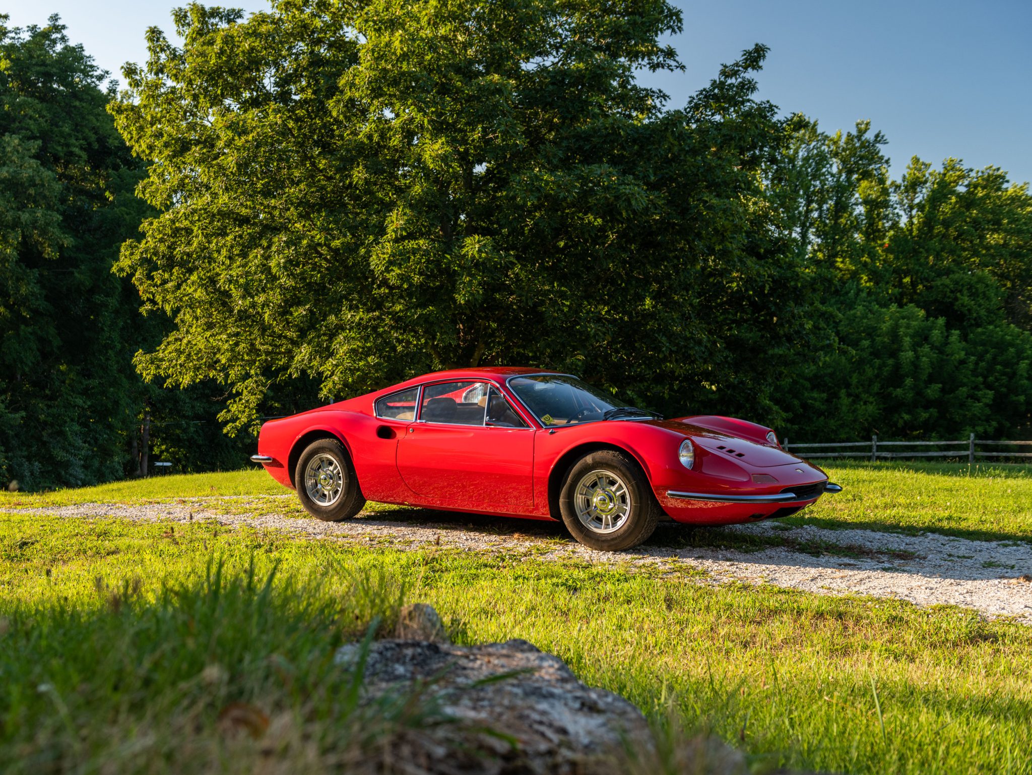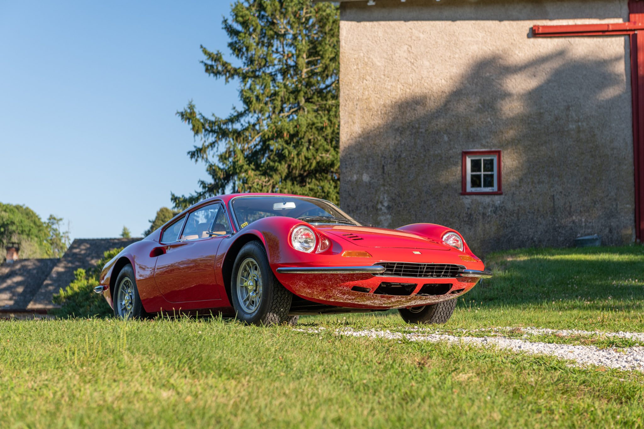 The 14″ Cromodora wheels feature three-eared knock-off hubs and are mounted with 205/70 Michelin XWX radial tires. A matching spare wheel is mounted in the front trunk. The 246 GT features a double wishbone suspension with anti-roll bars front and rear. A replacement brake master cylinder was installed by Scuderia Performante of Malvern, Pennsylvania, in December 2021, and a rebuild of the brake calipers with new pistons and hoses was also performed at that time.