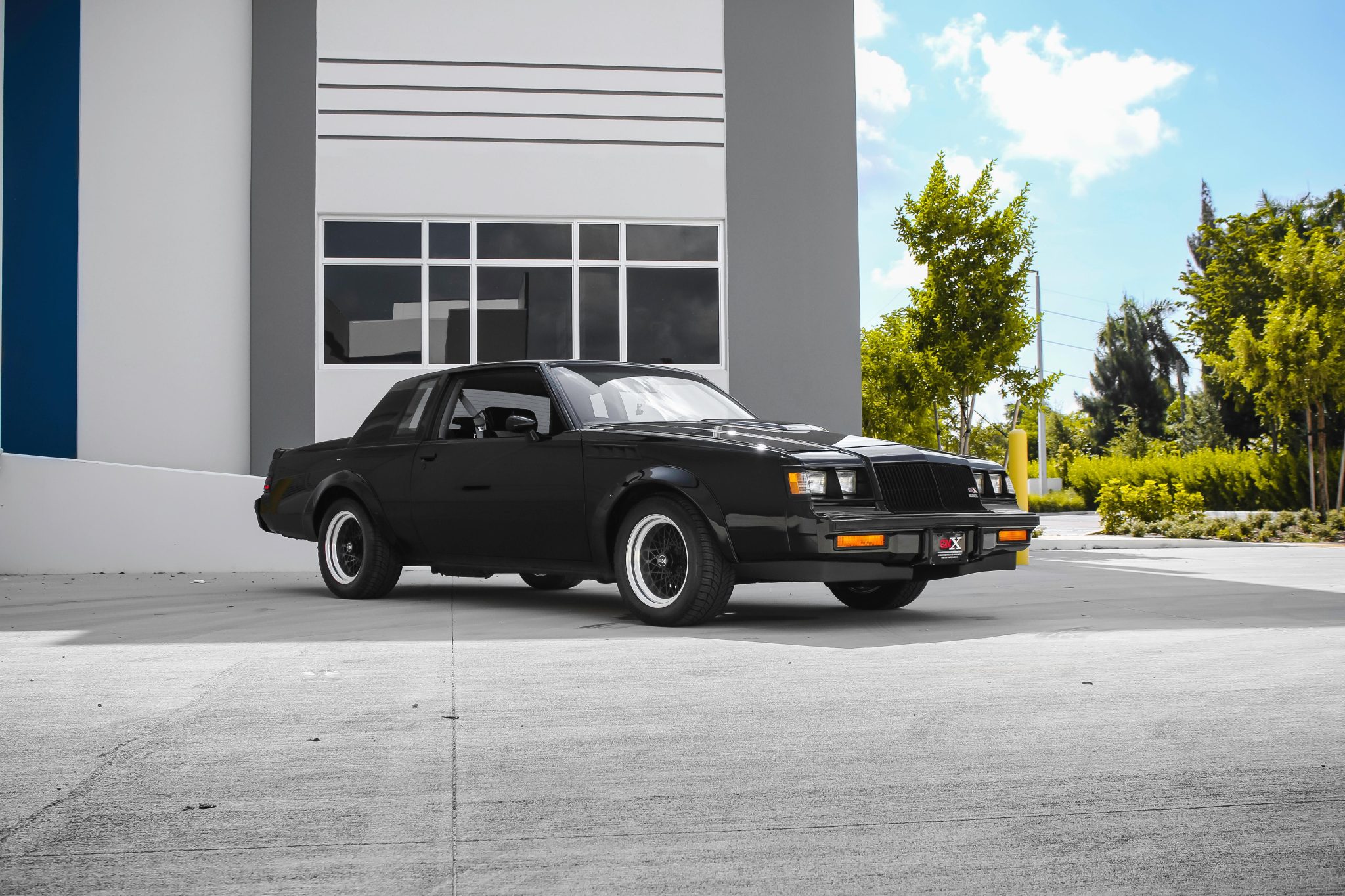 Factory 16″ cross-lace wheels feature GNX-branded center caps along with chrome trim rings and were mounted with 245/50 BFGoodrich g-Force Comp-2 tires in March 2020. The GNX features front suspension components from the contemporary Grand National, and upgraded rear components include a Panhard rod, torque arm, and an additional frame cross member. Braking is handled by power-assisted front discs and rear drums.