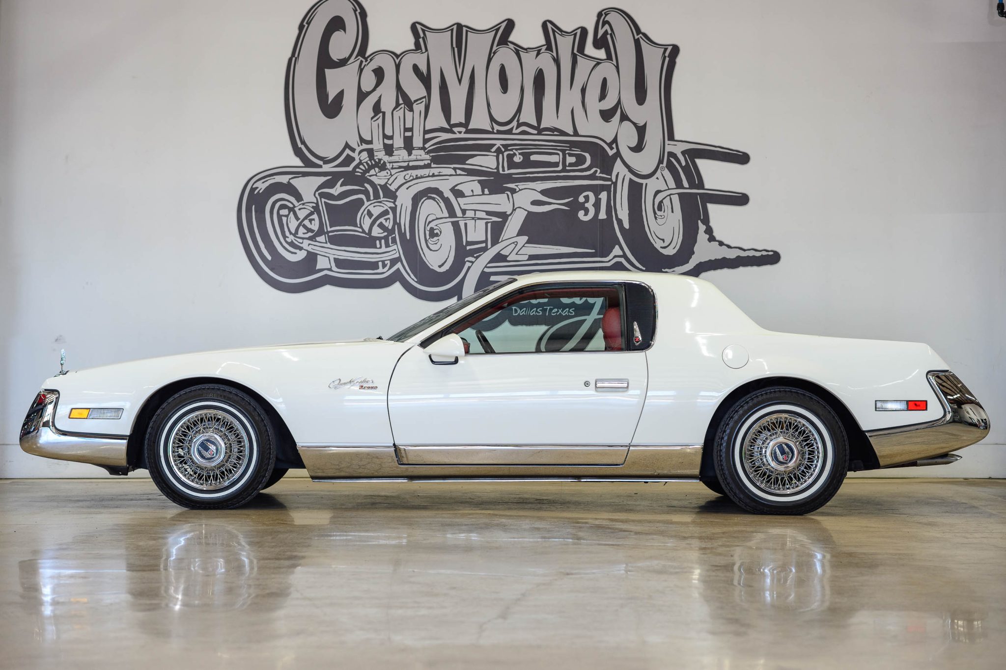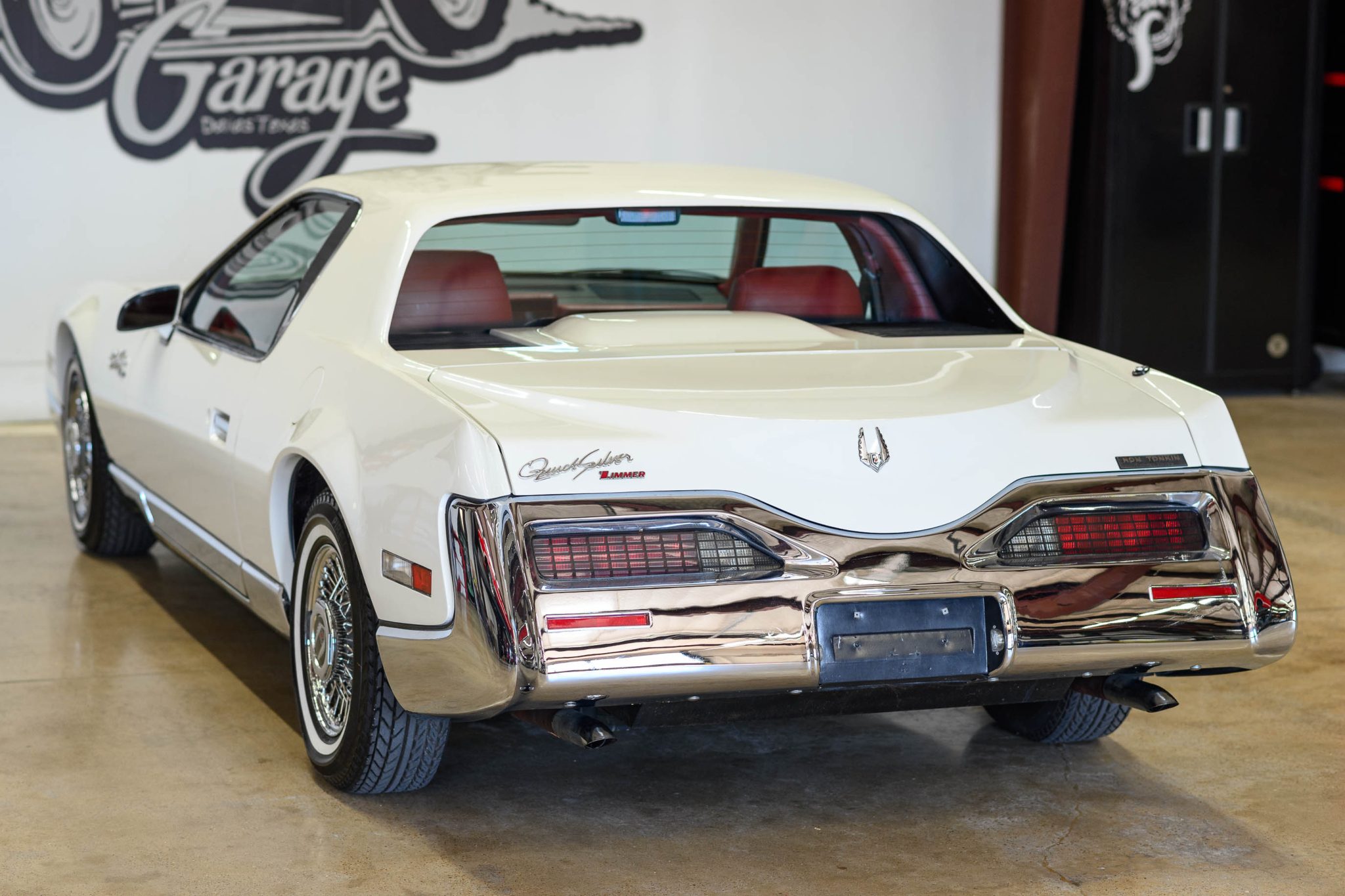 The 14″ chrome wire wheels feature black centers, and they are mounted with staggered Pirelli P77 whitewall tires showing pre-2000 date codes and cracking on the sidewalls. The Quicksilver featured a fully independent suspension as well as power-assisted rack-and-pinion steering. Stopping power is provided by four-wheel disc brakes.