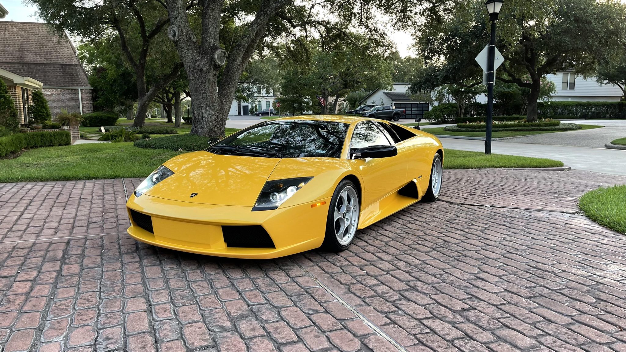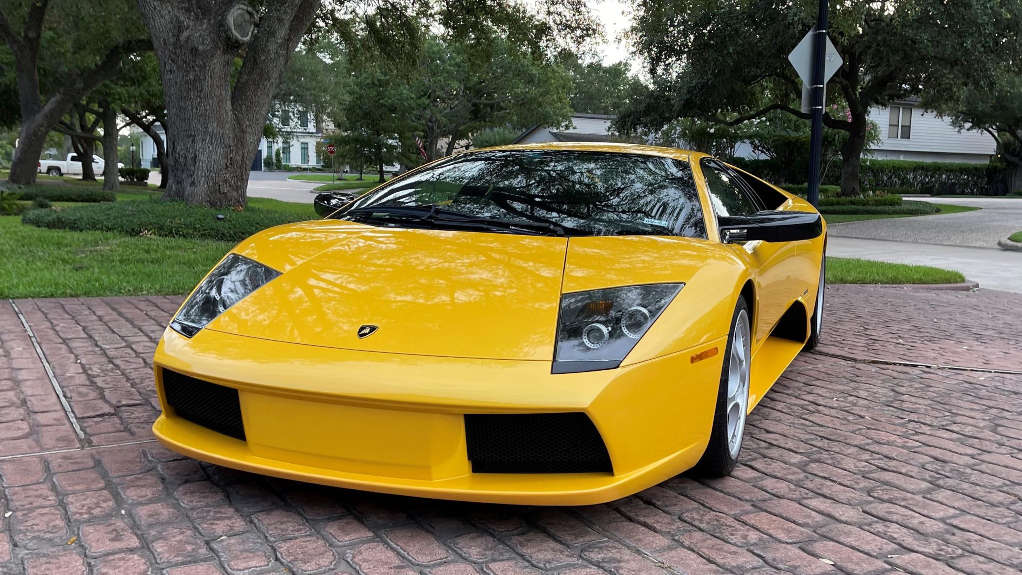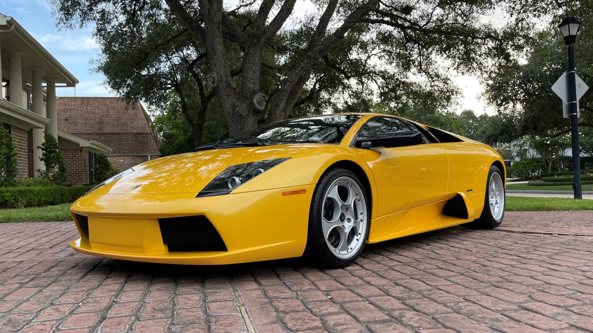 The 18″ Speedline Corse wheels wear Lamborghini center caps and are mounted with 245/35 front and 335/30 rear Pirelli P Zero Corsa tires showing 2017 date codes. The car was factory fitted with a front-axle lift system. Stopping power is provided by Lamborghini-branded Brembo four-piston calipers over cross-drilled rotors at all four corners. A bleeding of the brakes was performed in July 2022.