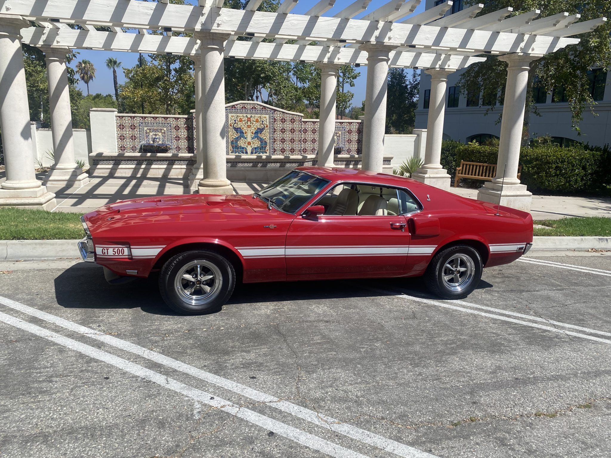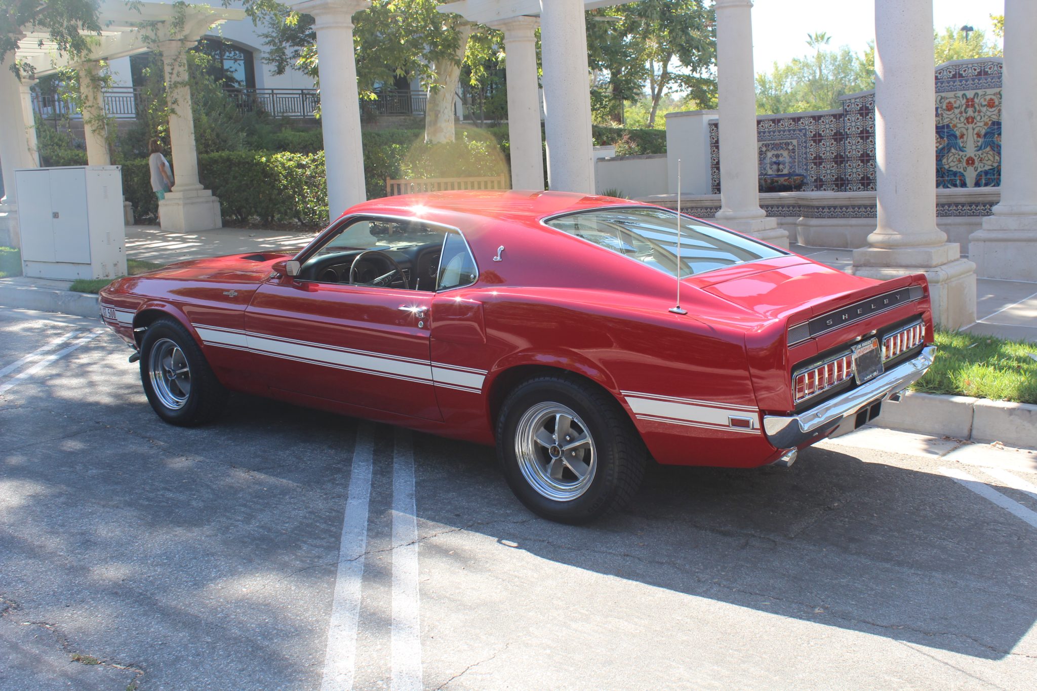 Five-spoke 15″ wheels with polished lips wear black Shelby center caps and are mounted with 235/60 Pirelli P600 tires. The car is equipped with power steering, and braking is handled by power-assisted front discs and rear drums. A space-saver spare and jack are mounted in the trunk. The Koni shock absorbers and tires were replaced during current ownership, and the front suspension, steering box, power brake booster, master cylinder, rear wheel cylinders, and front calipers were reportedly rebuilt during the refurbishment.