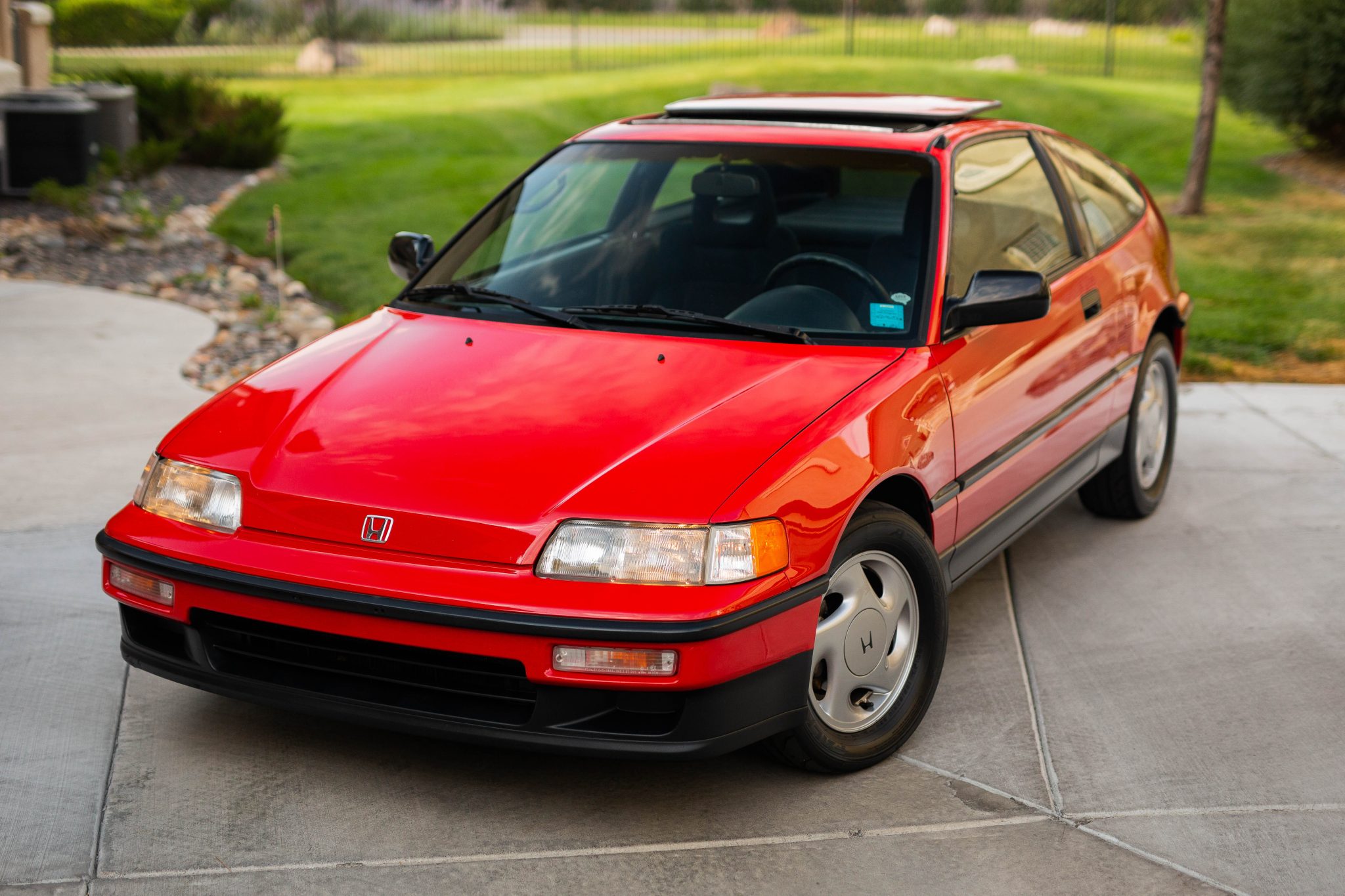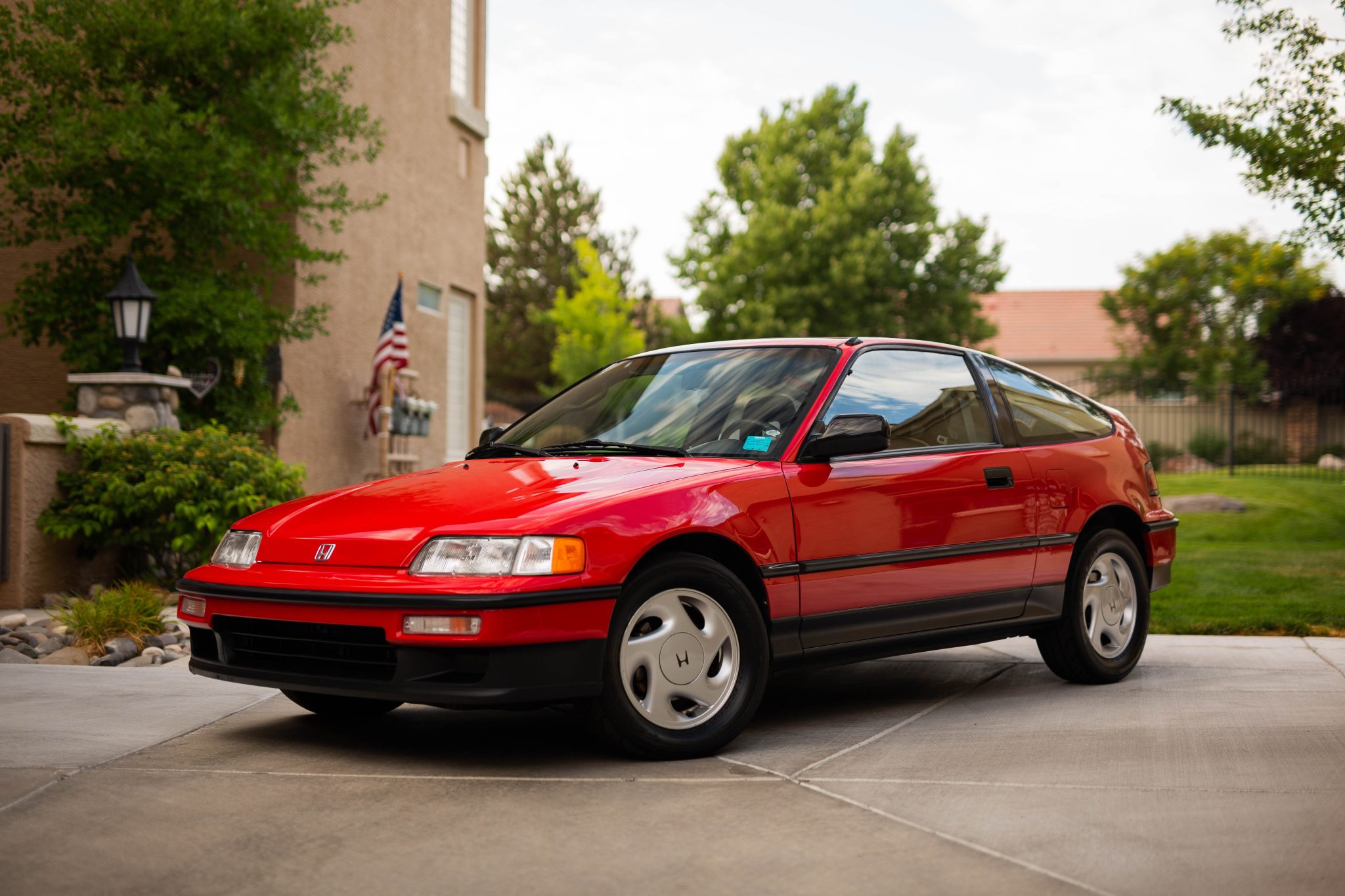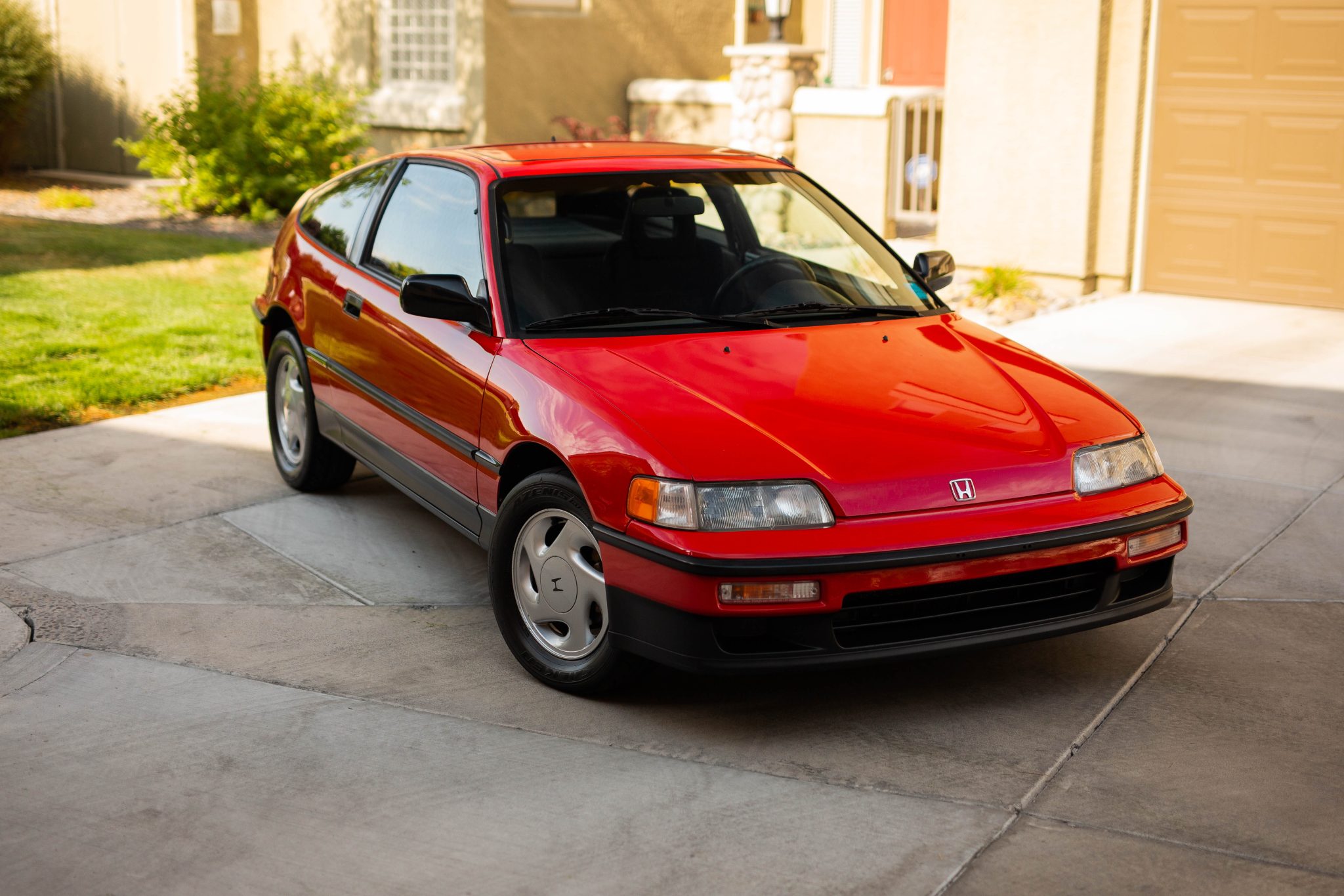 Five-spoke 14” wheels are mounted with 195/60 Falken Azenis RT660 tires and the car is equipped with front and rear sway bars as well as four-wheel disc brakes. The seller states that the front brake calipers were replaced under previous ownership and that the tires and the brake master cylinder, pads, rotors, and lines were replaced under current ownership. Blemishes are visible on the wheels.