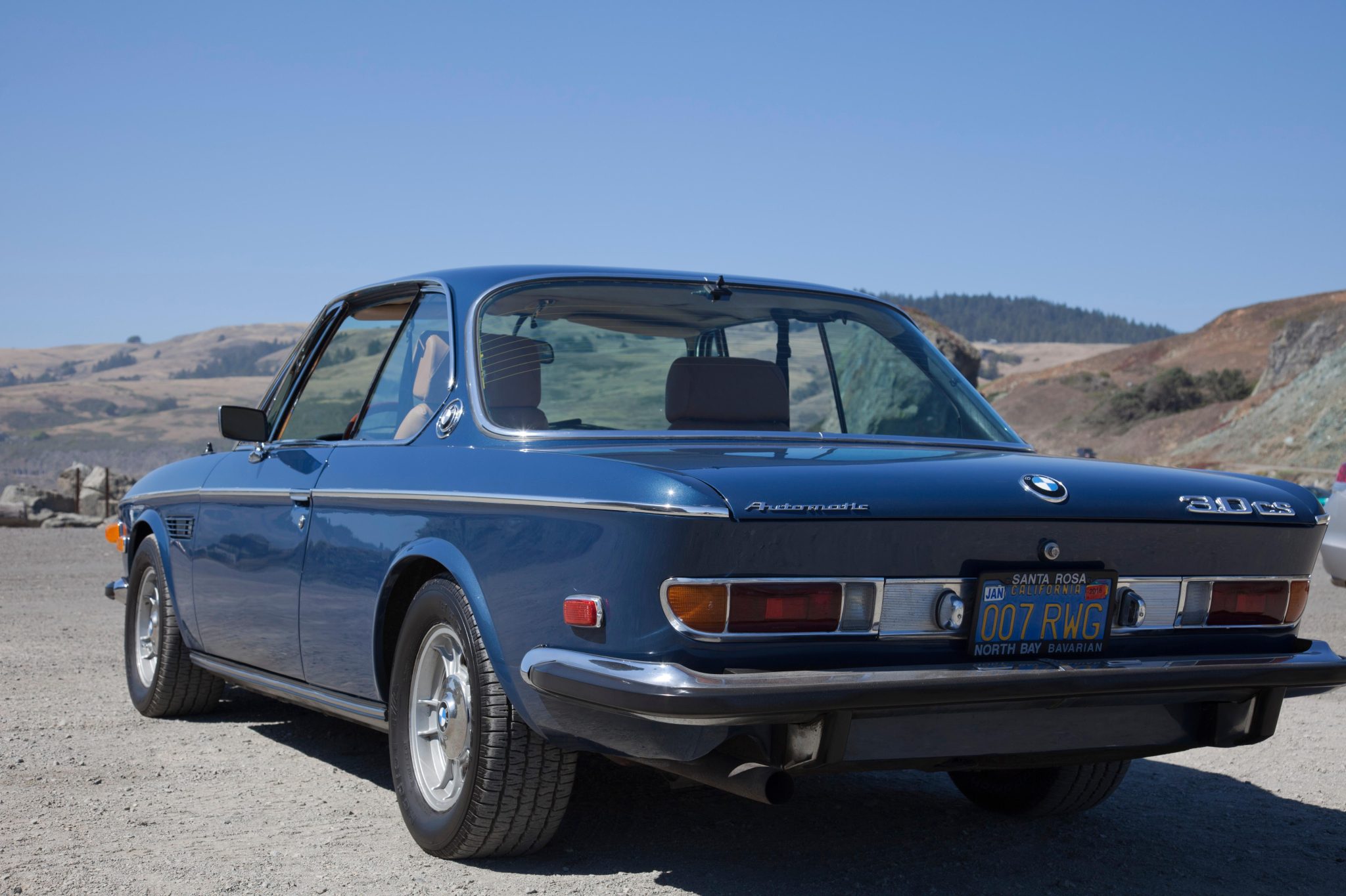 Silver-painted 14” wheels wear BMW logo hubcaps and are mounted with 215/60 BFGoodrich Radial tires that are in need of replacement due to age. The car is equipped with four-wheel disc brakes. A power-steering fluid leak is said to have been recently repaired. The seller notes that the passenger-side front strut screws have been slotted and a steel plate is being used as a washer.