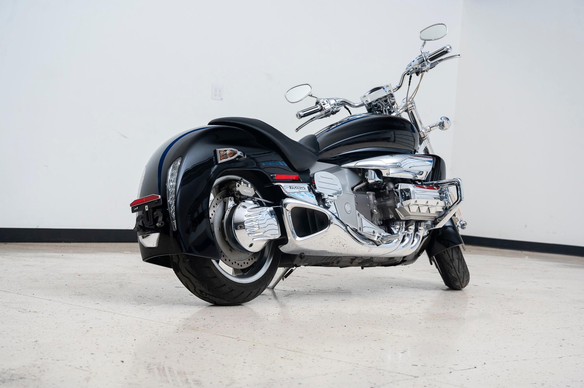 Five-spoke aluminum wheels wear older Dunlop D251 tires measuring 150/60-18″ front and 180/55-17″ rear. Suspension consists of a chrome leading-link front end and a single-sided Pro-Link swingarm that includes the driveshaft enclosure. Nissin disc brakes feature dual three-piston calipers up front and a single two-piston version at the rear.
