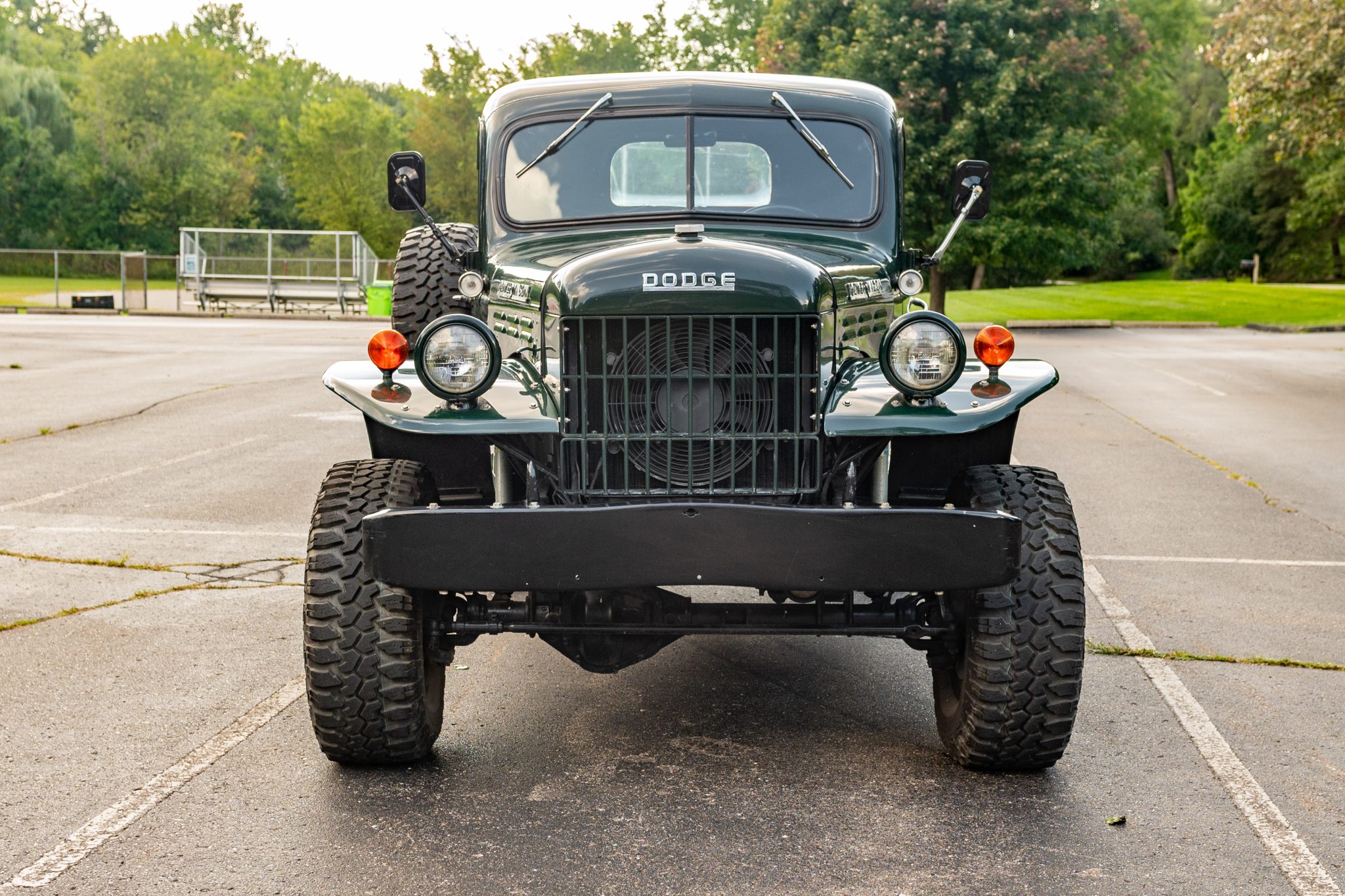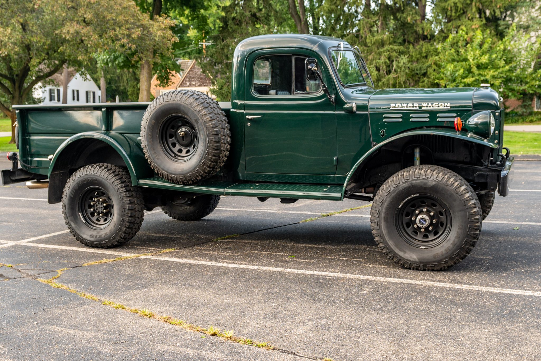 Black-finished 16″ steel wheels are mounted with 315/75 Maxxis Bighorn tires, and a matching spare is mounted on the side of the bed. The truck is equipped with Bilstein shocks, and the front axles are equipped with Superwinch manually locking front hubs. Stopping power is provided by front disc and rear drum brakes.