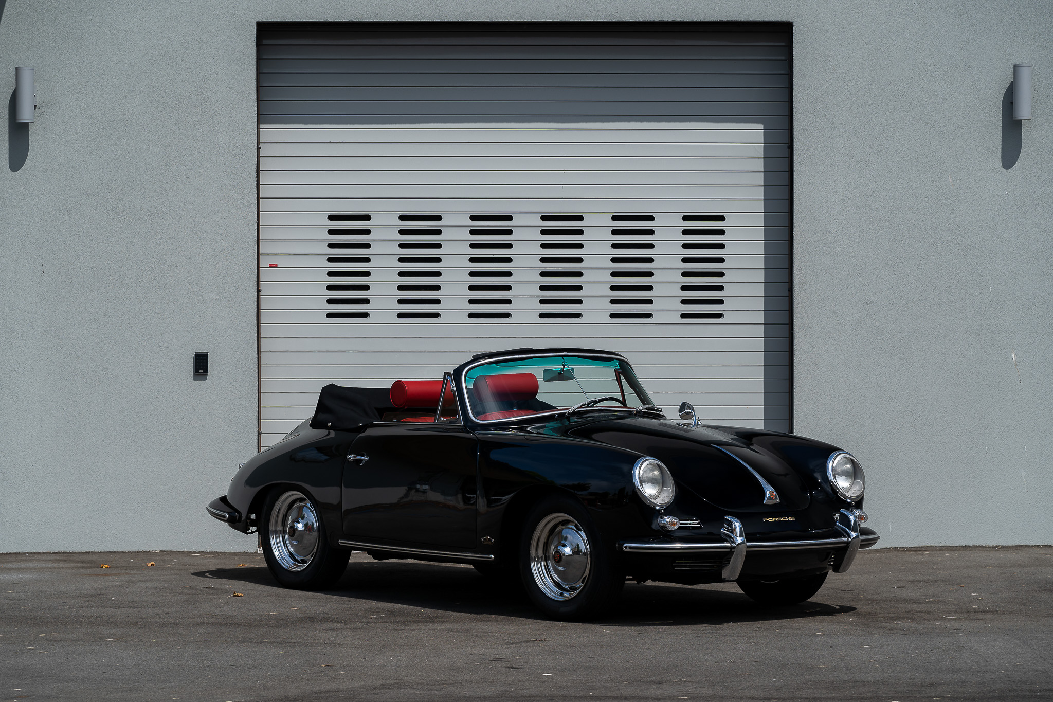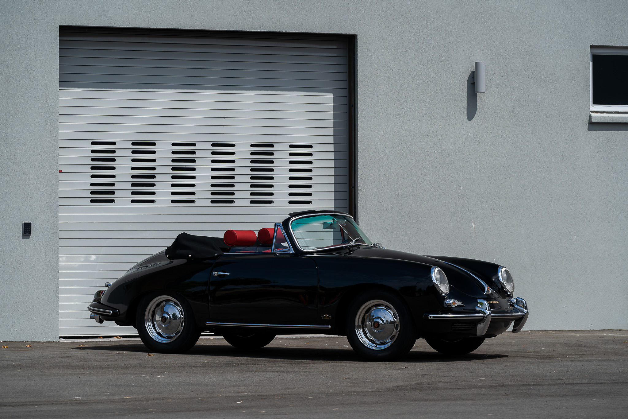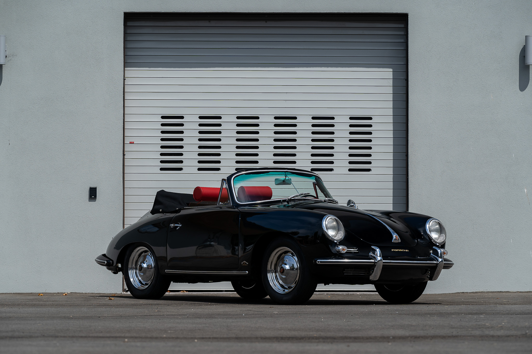 Ventilated 15″ chrome-finished wheels with Porsche-crest hubcaps are mounted with 165/80 Nankang CX-668 tires. Each corner is equipped with finned drum brakes, and a receipt from August 2022 indicates that the left-front brake line was replaced.
