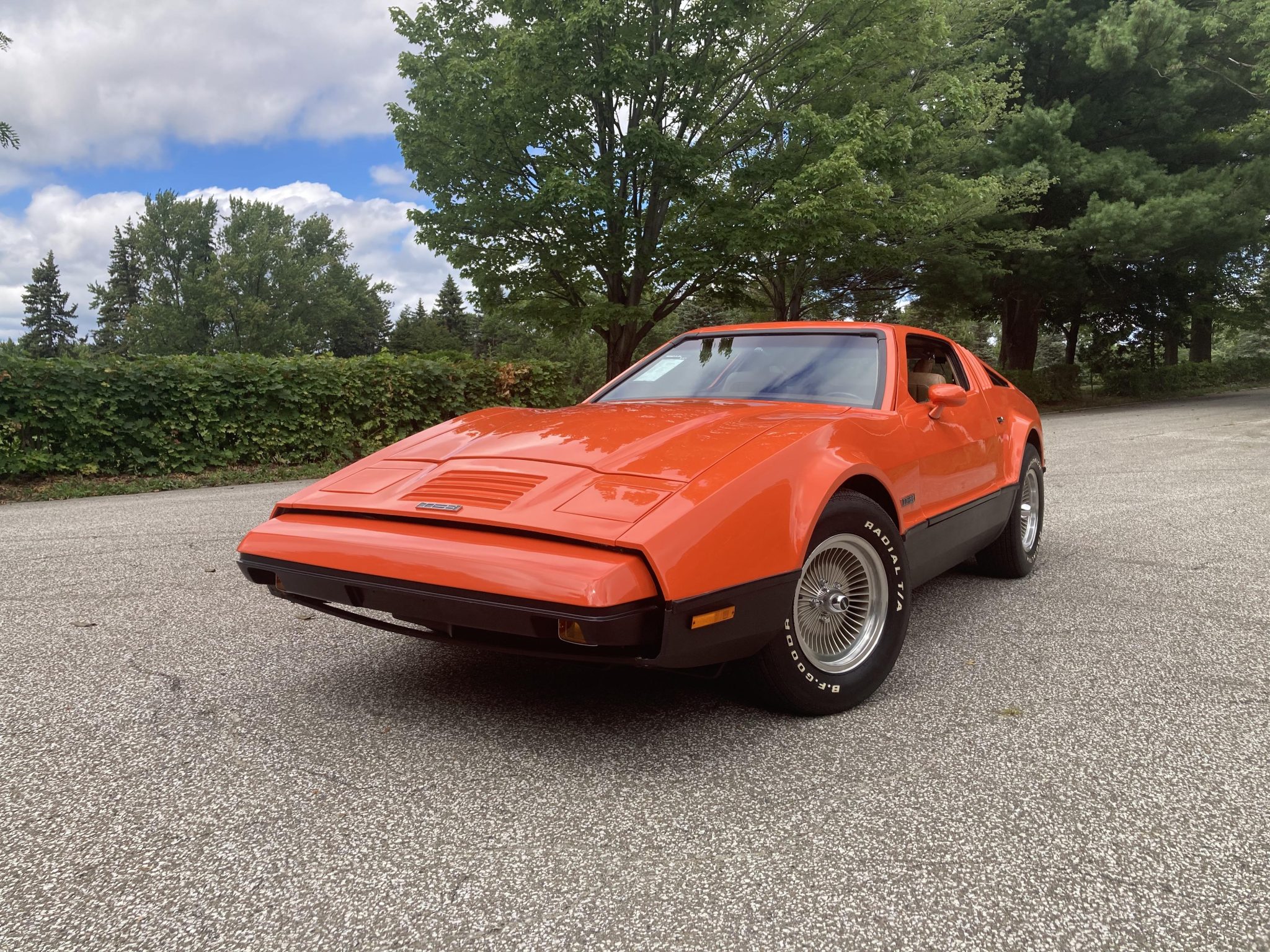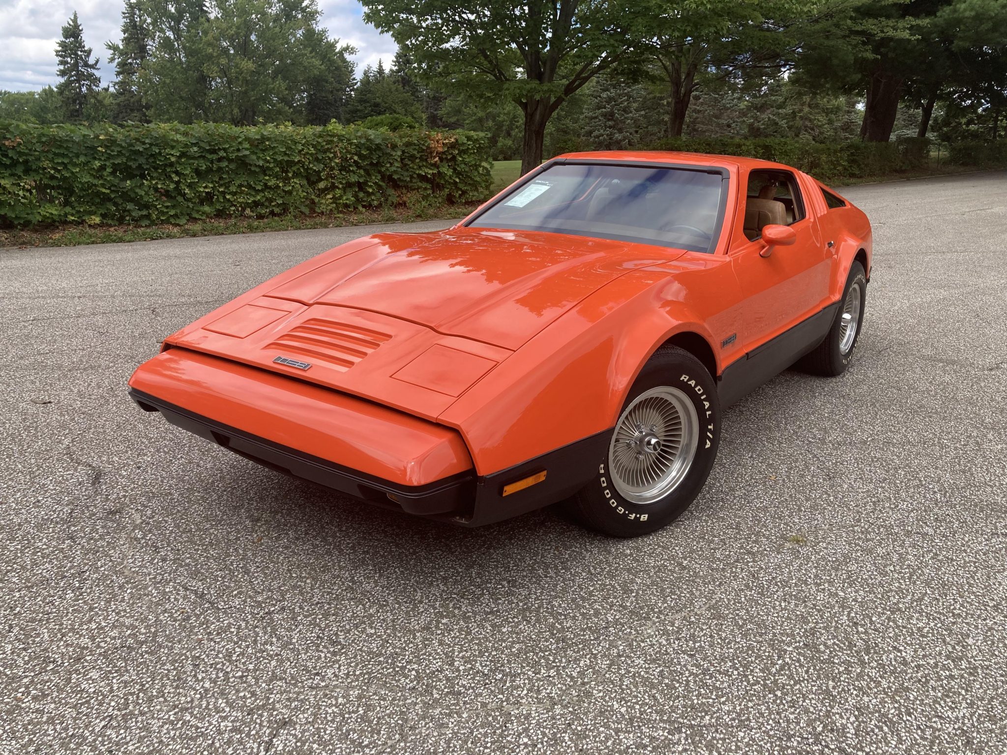 Factory 15″ Turbo Mag aluminum wheels wear BFGoodrich Radial T/A tires. The SV-1 used suspension, steering, and braking components sourced from the AMC Hornet, including power-assisted front disc brakes.