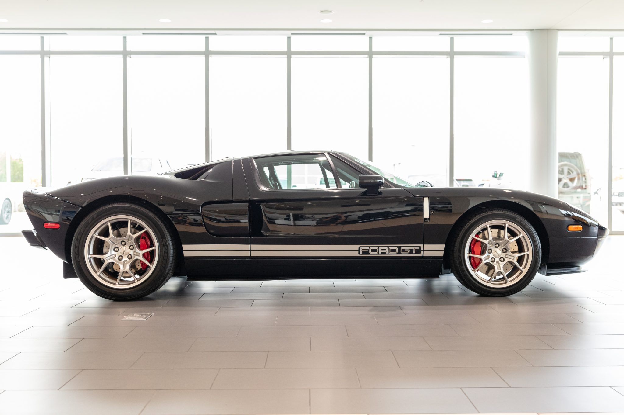Factory-optional BBS forged alloy wheels measure 18” in diameter up front and 19” out back and are mounted with 235/45 front and 315/40 rear Goodyear Eagle F1 Supercar tires. The Brembo braking system features optional red-painted four-piston monoblock calipers with cross-drilled and ventilated rotors that measure 14” up front and 13.2” out back.