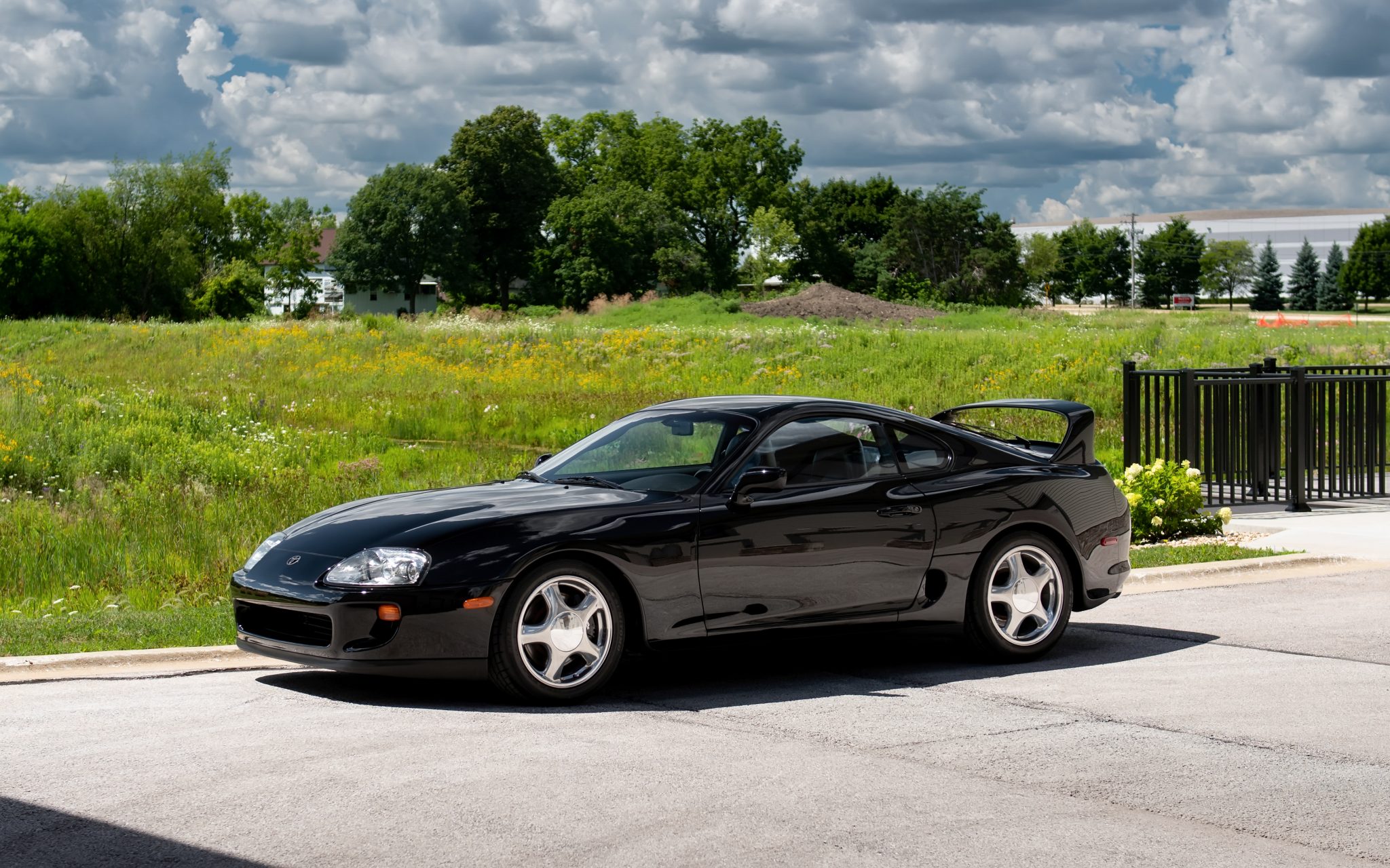 Chrome-finished 17″ alloy wheels are mounted with staggered-width Sumitomo HTR II tires. The car is equipped with Eibach springs as well as traction control, and stopping power is provided by Supra-branded calipers over vented discs at all four corners.