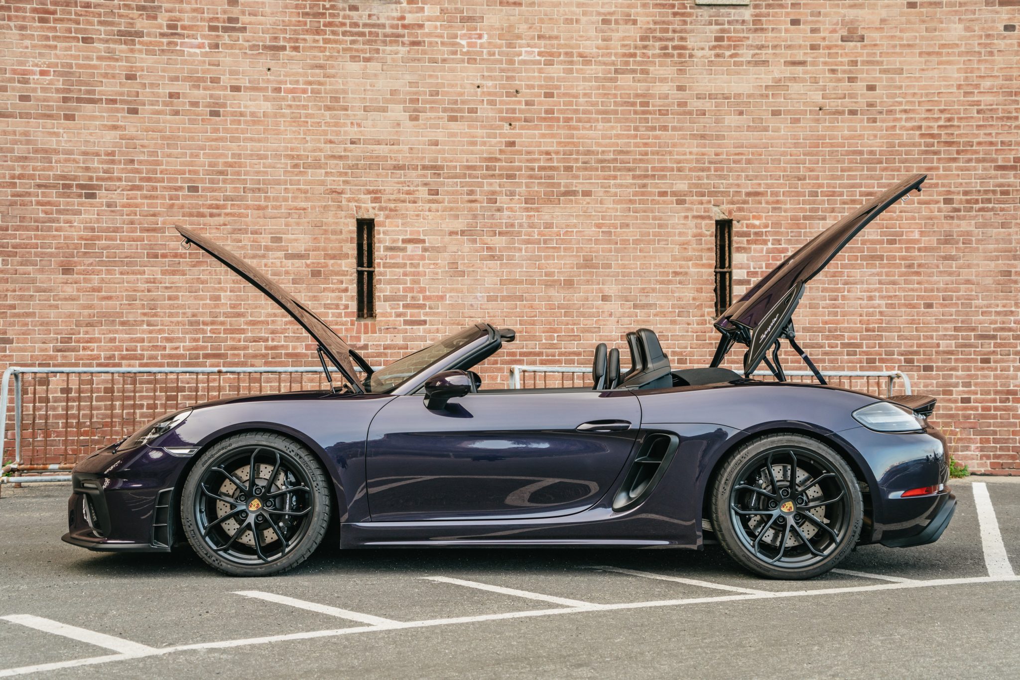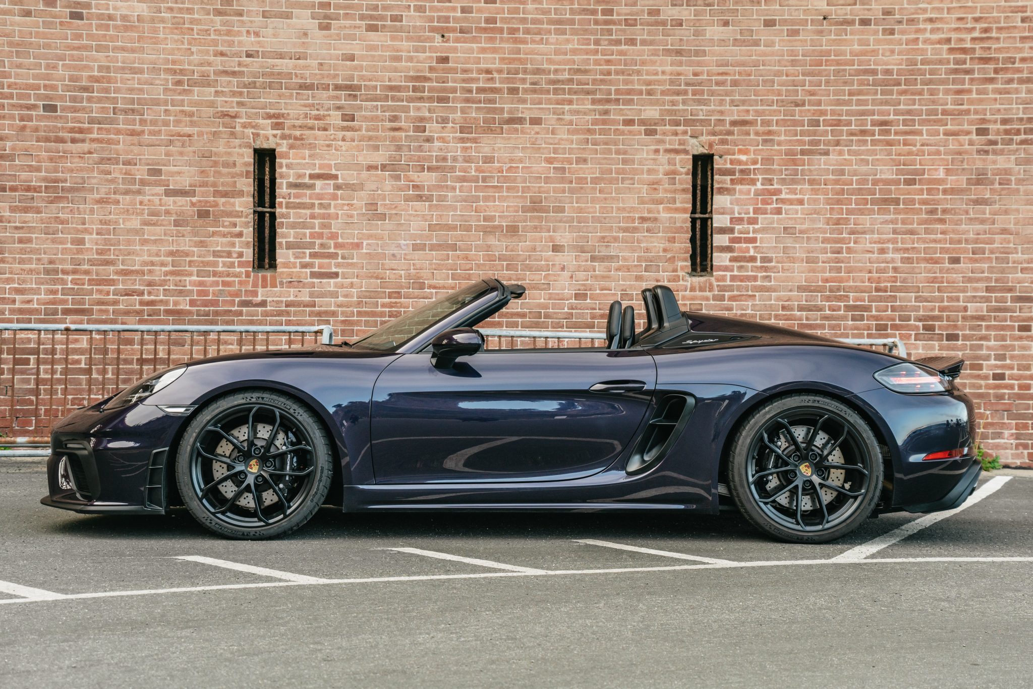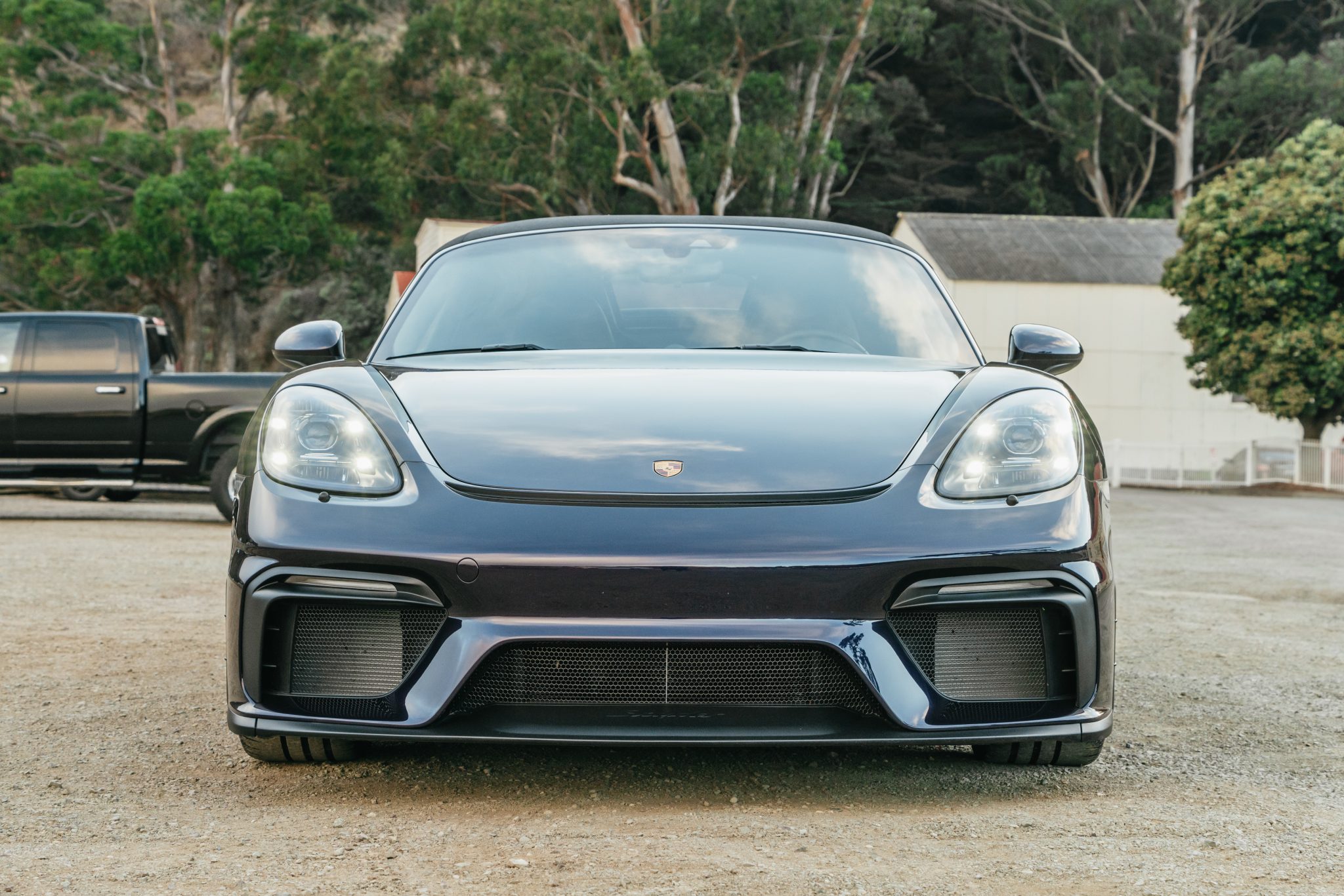Satin Black-finished 20″ alloy wheels are wrapped in 245/35 front and 295/30 rear Michelin Pilot Sport Cup 2 tires. Braking is handled by cross-drilled discs and optional high-gloss black calipers.